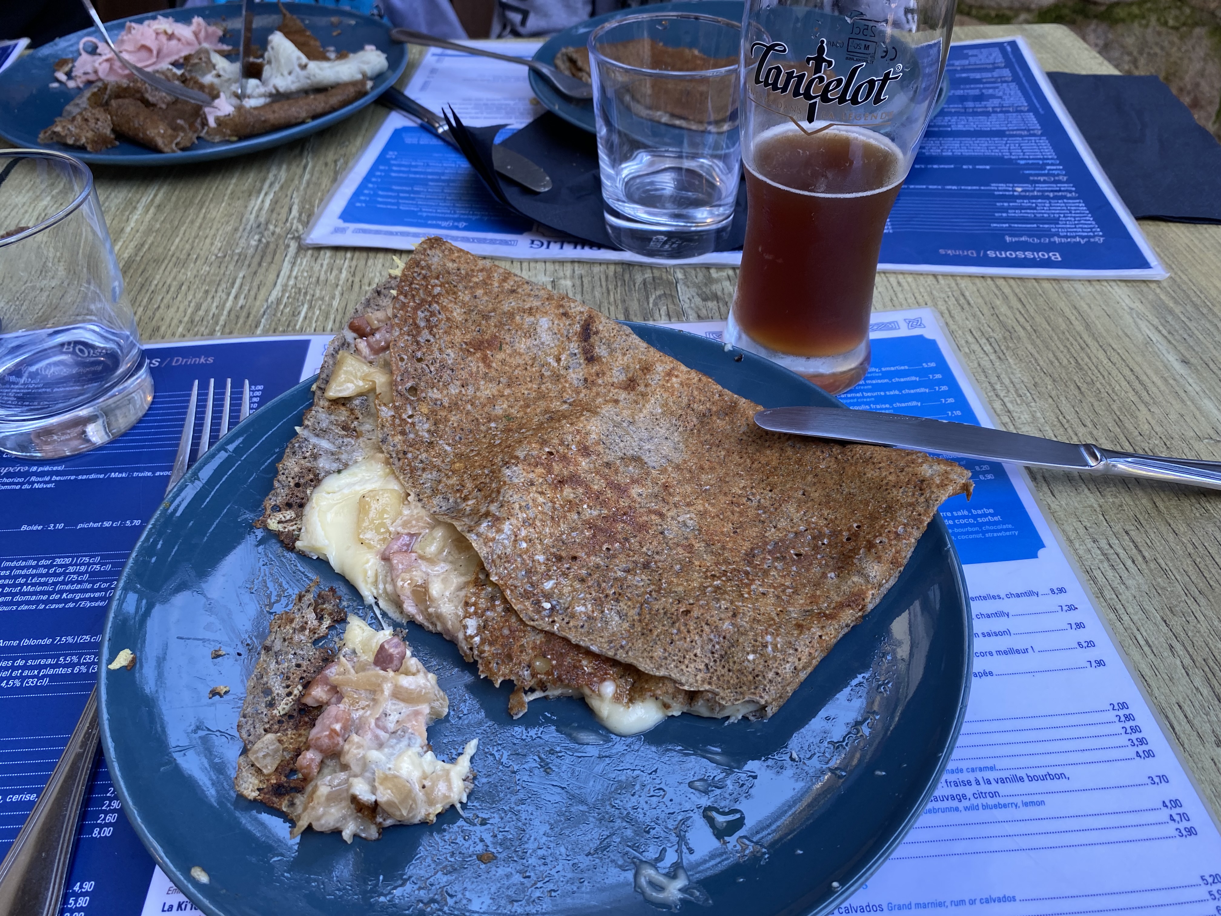 Après une balade dans ce somptueux petit village, un bon repas dans cette crêperie joliment décorée. Les galettes sont copieuses et succulentes, mention spéciale pour la Guéménoise à l'andouille pommes et oignons confits. Un bon moment!