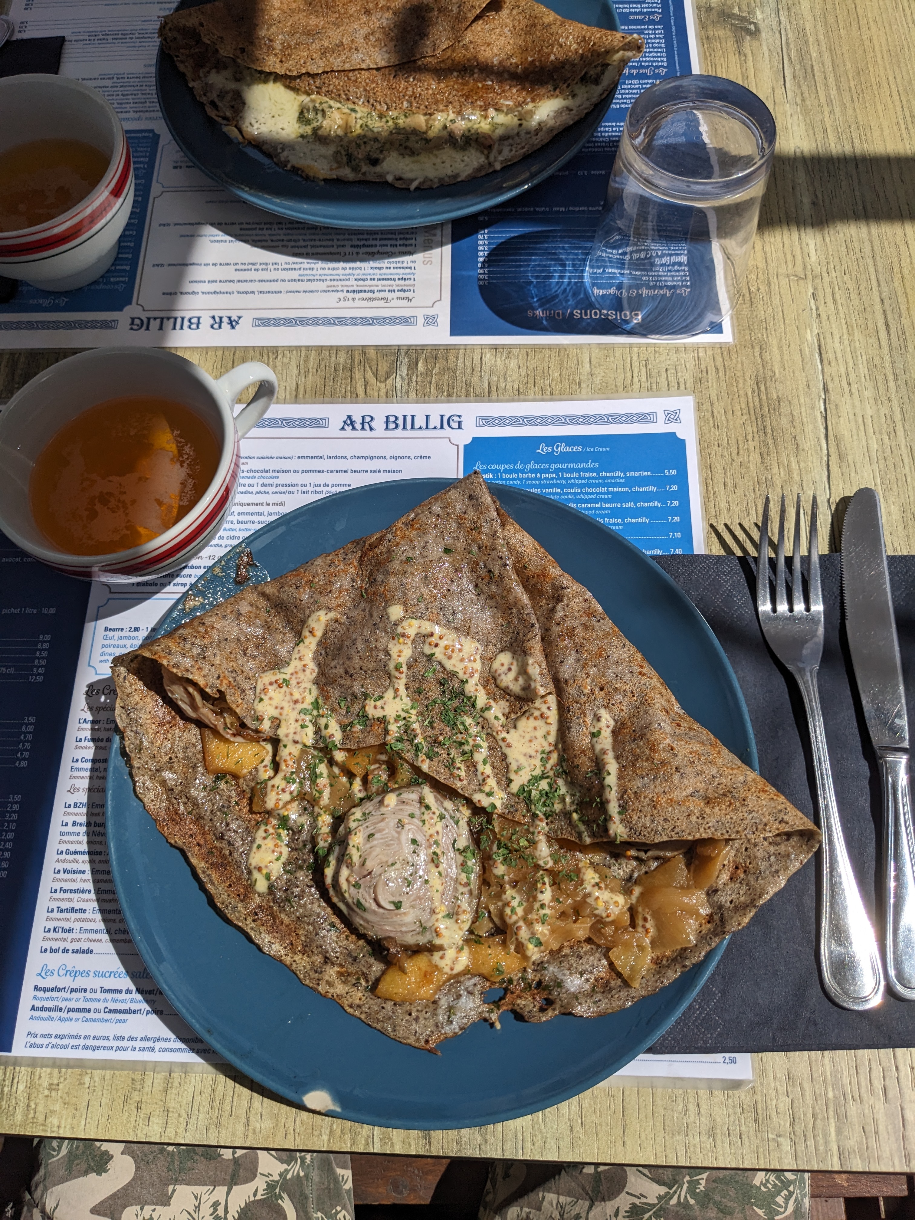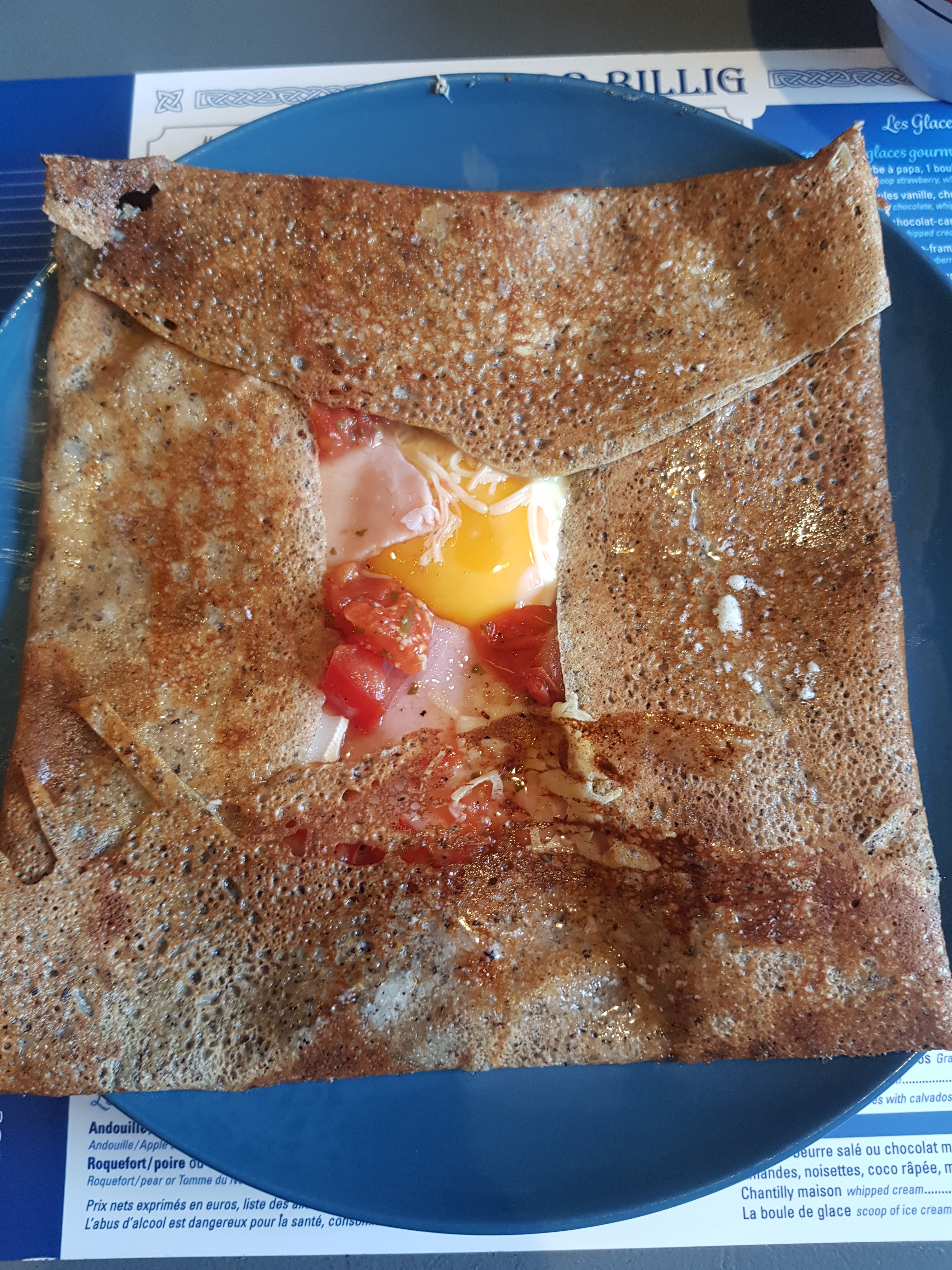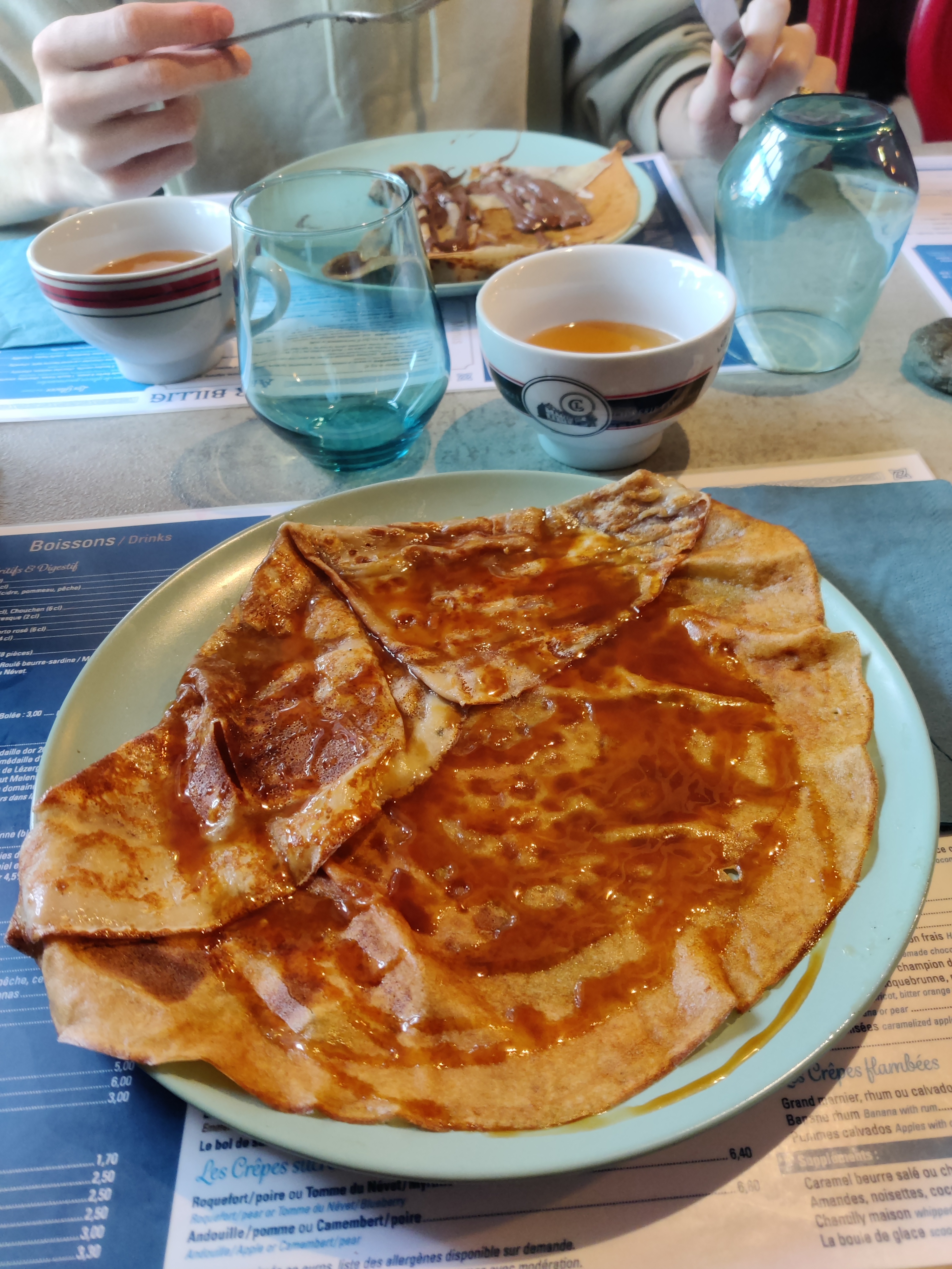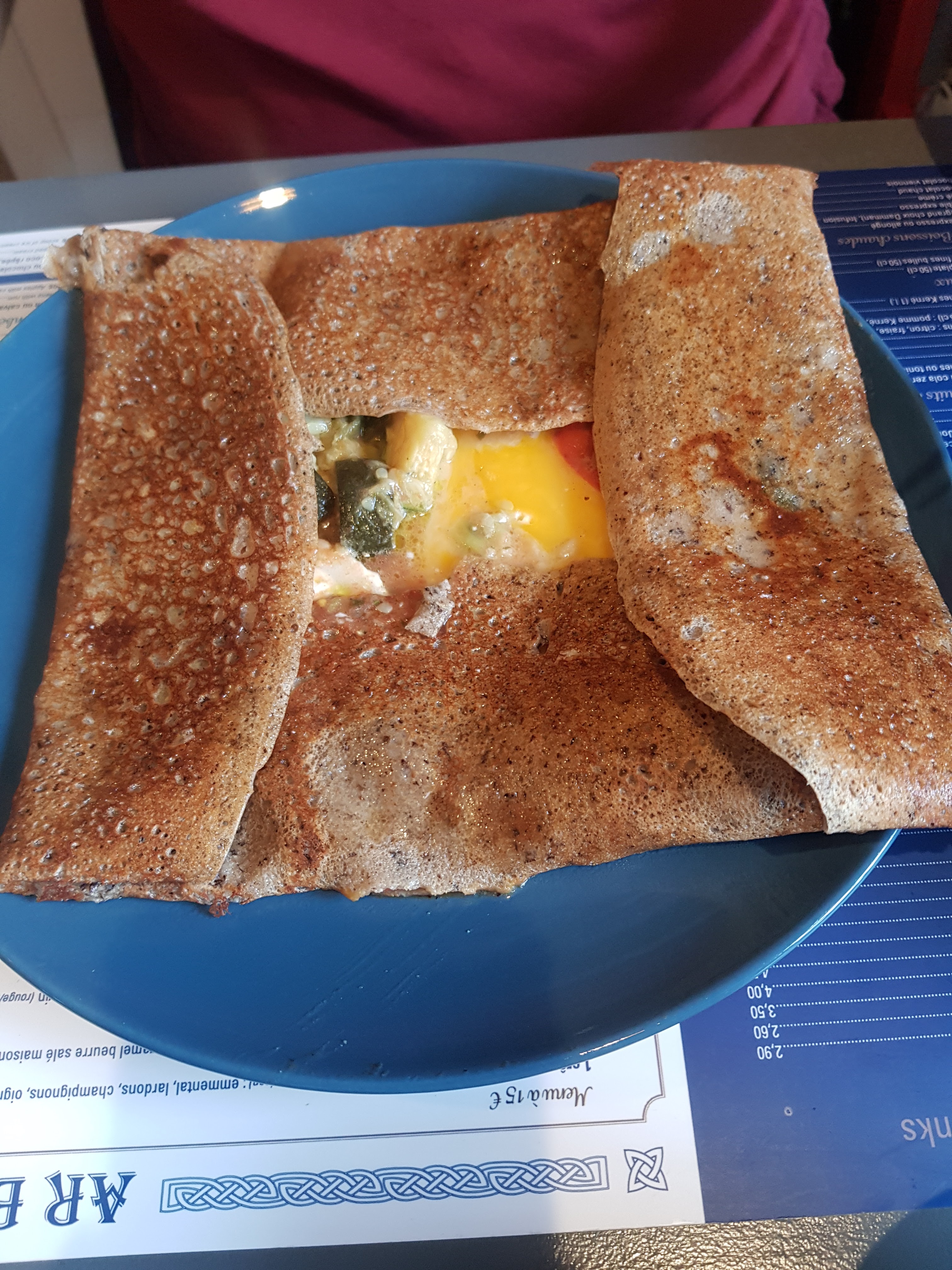 Nous sortons à l'instant de la crêperie, elles sont majestueuse les crêpes aux blé noir, comme les crêpes en dessert. On s'est régalés. Je vous recommande fortement cette adresse.