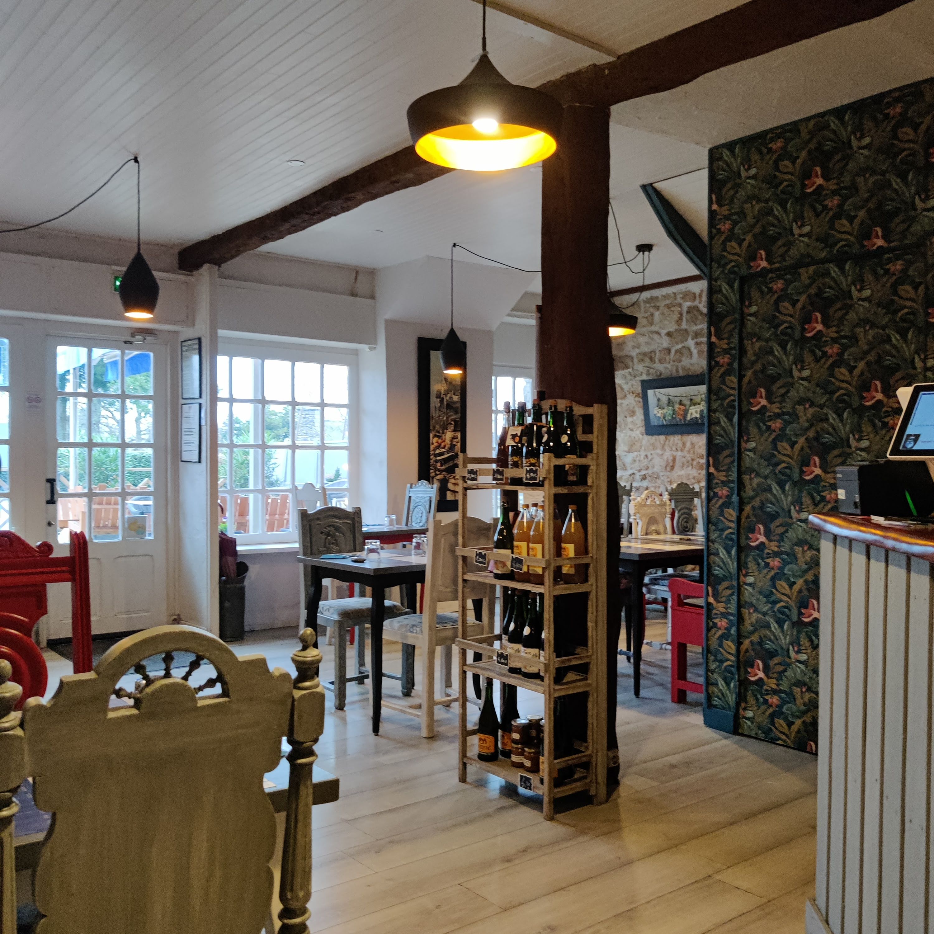 Venus le 16 août au service du midi Très bon accueil et personnel qui sait se rendre disponible. Le jour J le temps n'était pas très bon (averses) donc le restaurant avait fermé sa terrasse, il n'y avait que la petite salle intérieure (15 tables grand maximum je dirai) qui s'est remplie entièrement en 10-15 minutes car c'est un village touristique, pensez donc à réserver si le temps prévoit d'être mauvais, ou bien essayez d'arriver devant le restaurant avant son ouverture pour être les premiers à rentrer comme nous l'avons fait. La carte est relativement petite niveau choix, mais l'avantage du restaurant est qu'ils proposent de composer soi-même sa propre crêpe (2, 3, 4, 5 ingrédients) parmi une liste d'ingrédients déjà sélectionnée (choix assez large et complet). Il y a aussi un supplément bol de salade. La pâte des galettes était bonne et la garniture aussi (quantité de garniture très bien), et il en est de même pour les crêpes dessert qui sont tout aussi bonnes.