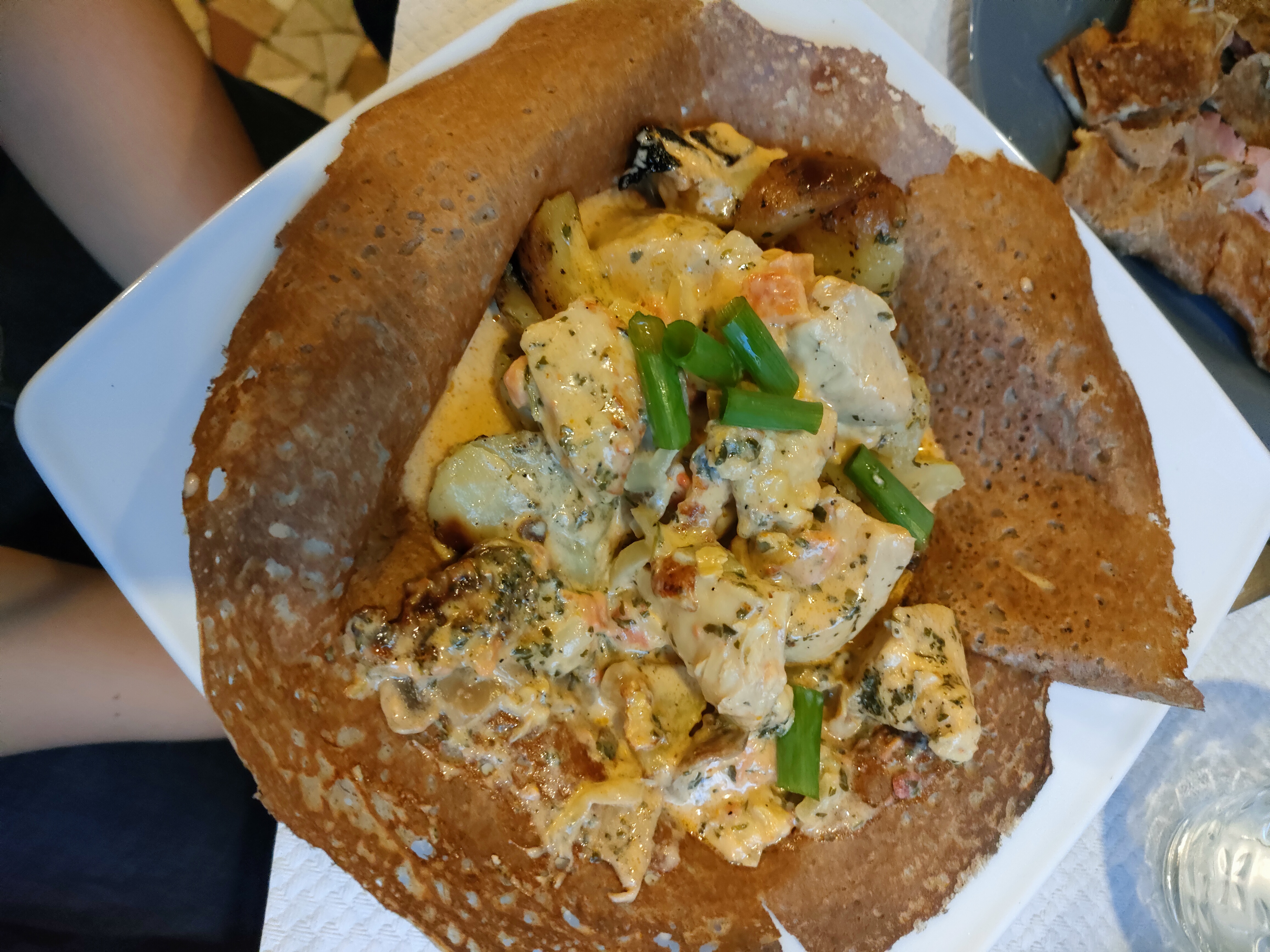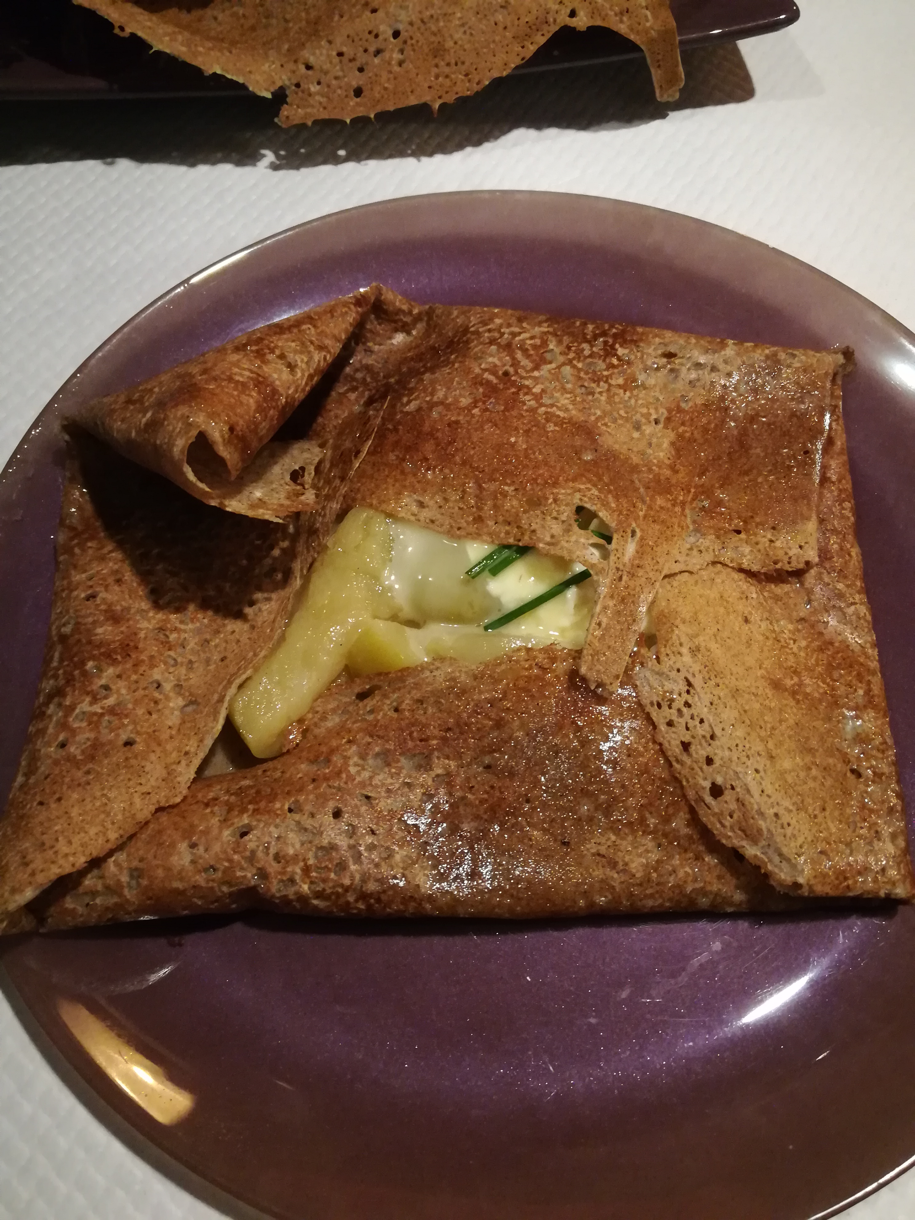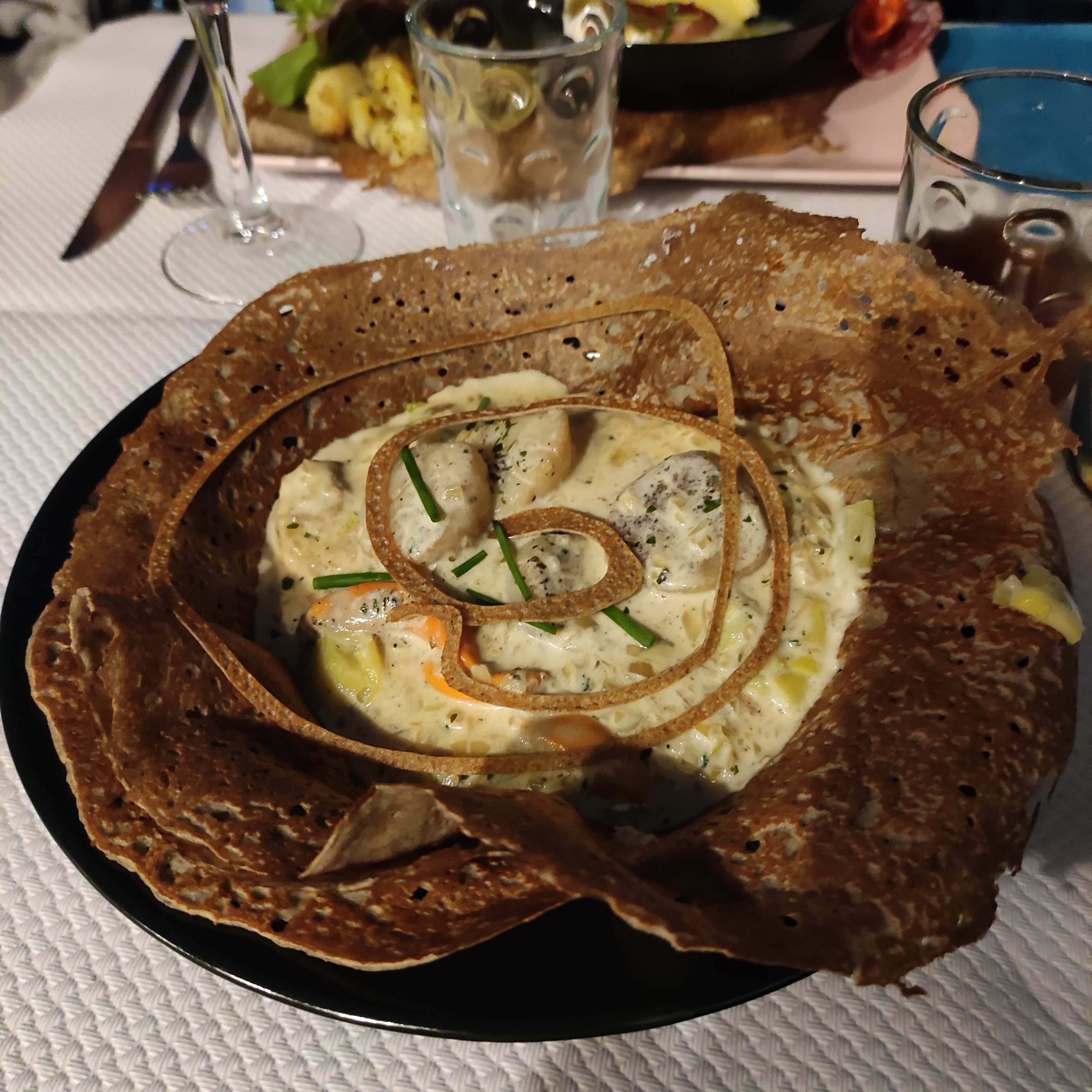 Merveilleux moment hier soir une crêpe cabillaud pdt lit de poireaux crème un pur délice service au top à renouveler très vite