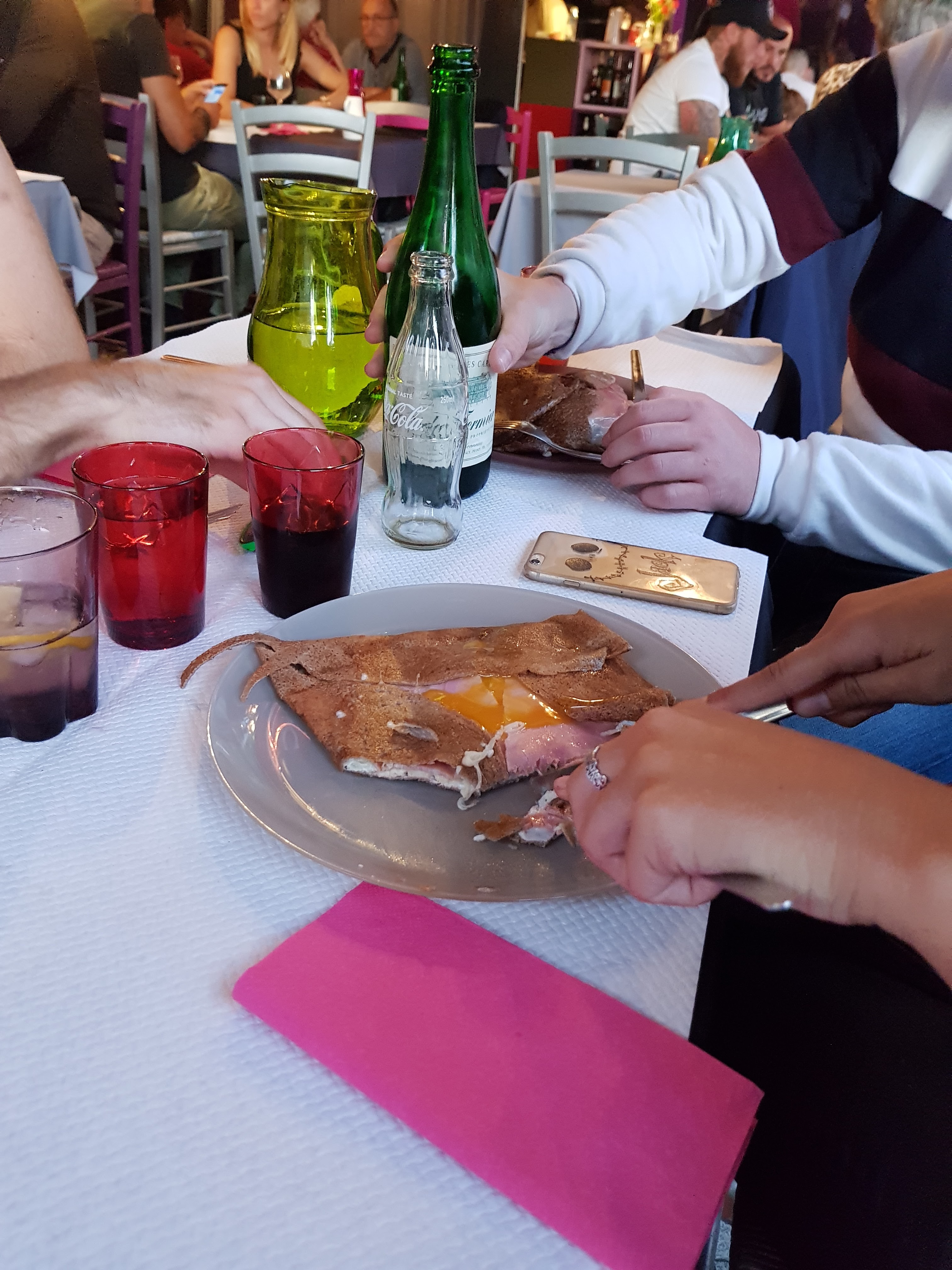 Nous avons passé un très bon moment, les crêpes étaient délicieuses, sans compter sur la bonne humeur de l'équipe, petit clin d'oeil au serveur qui nous a fait bien rire, j'espère que vous avez pu récupérer la nappe avec le vin rouge renversé 😂. Vous pouvez y aller sans problème vous passerez un bon moment.