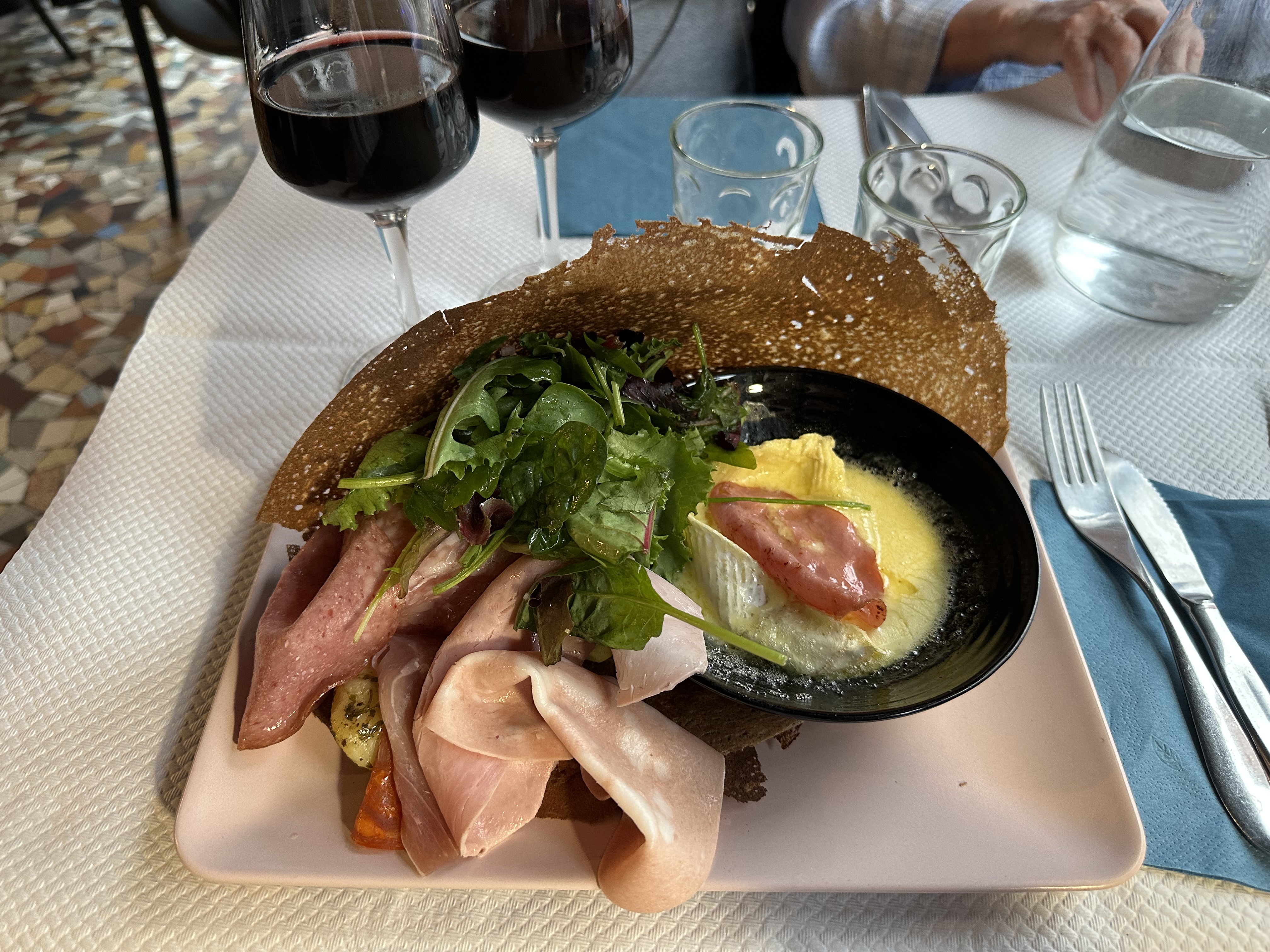 Service très pro et efficace, les galettes étaient généreuses et de très bonne qualités. Petit bémol la salade pourrait être servi avec la galette sans supplément.