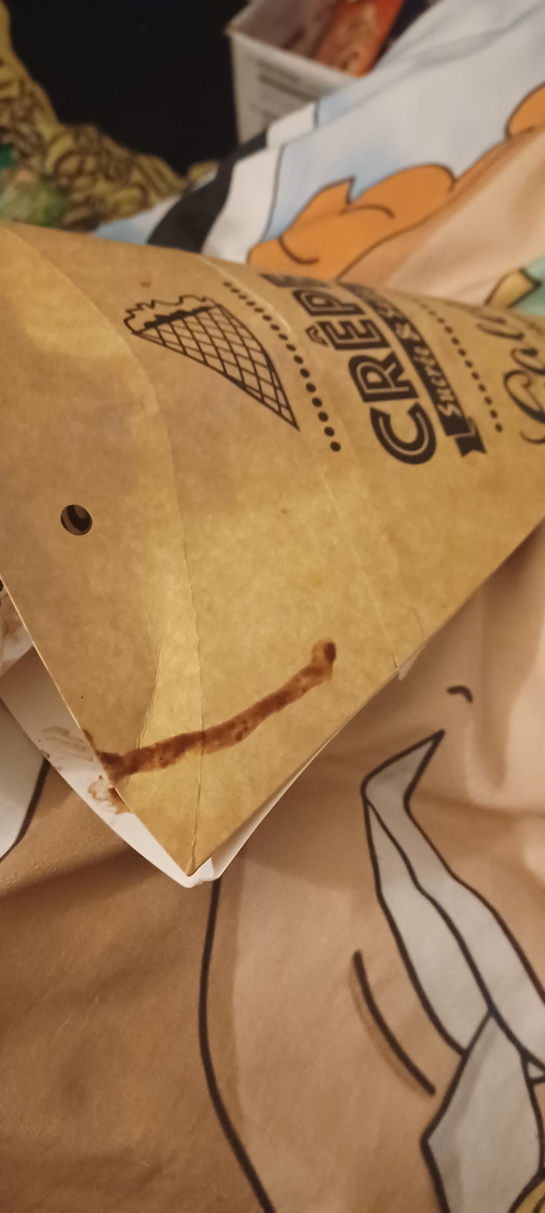 Crepe(sucré) vraiment sec et plate et il y a souvent des oublie dans mes commandes je n y retourne plus