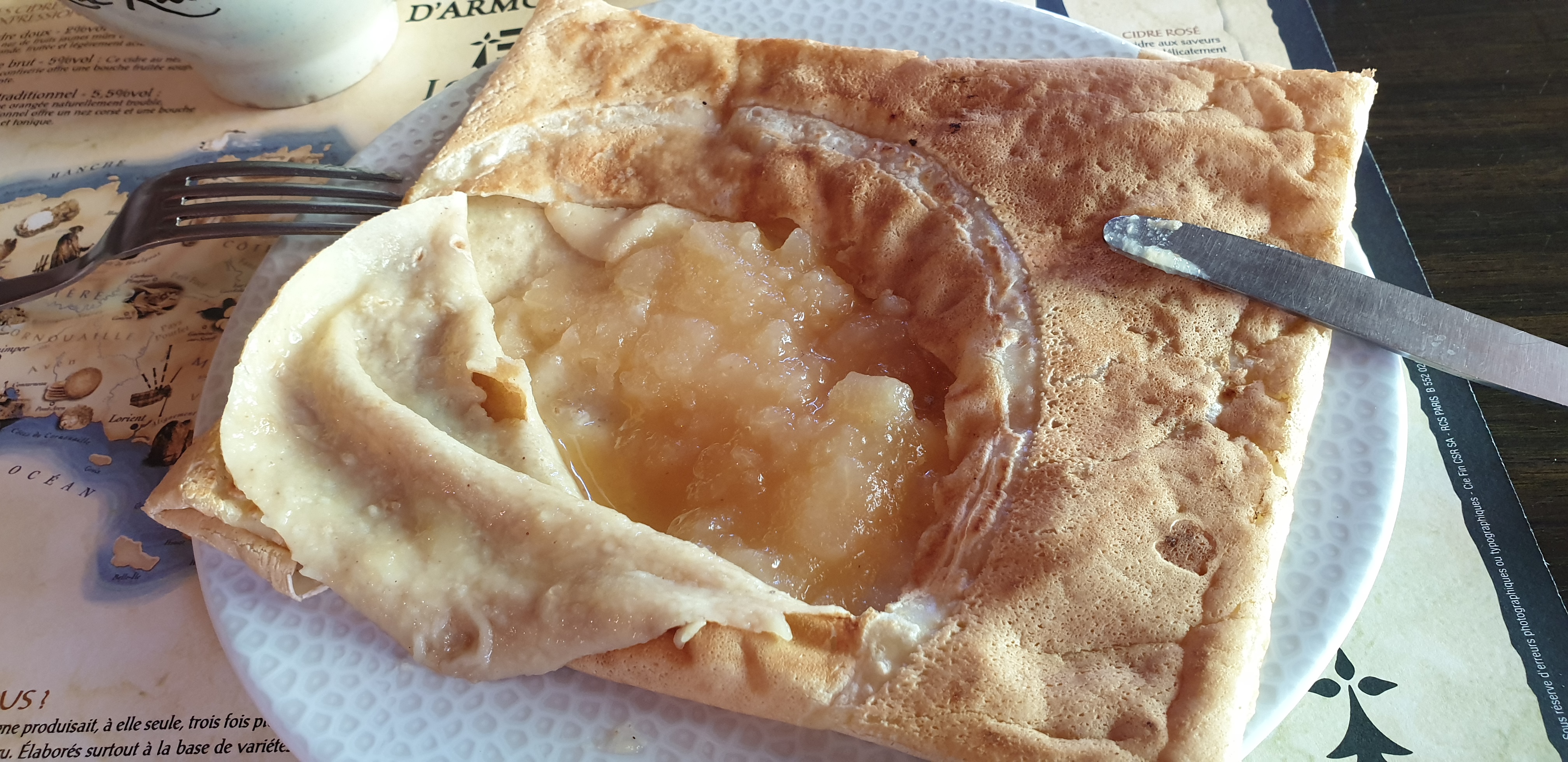 A fuir ! Accueil sans sourire Crêpes sèches, trop cuites, beaucoup trop salées, fourrés aux crevettes surgelés La crêpe aux pommes « flambée aux Calvados » sèche également, fourrée à la compote et …pas du tout flambée Vaut mieux acheter un sandwich dans une boulangerie