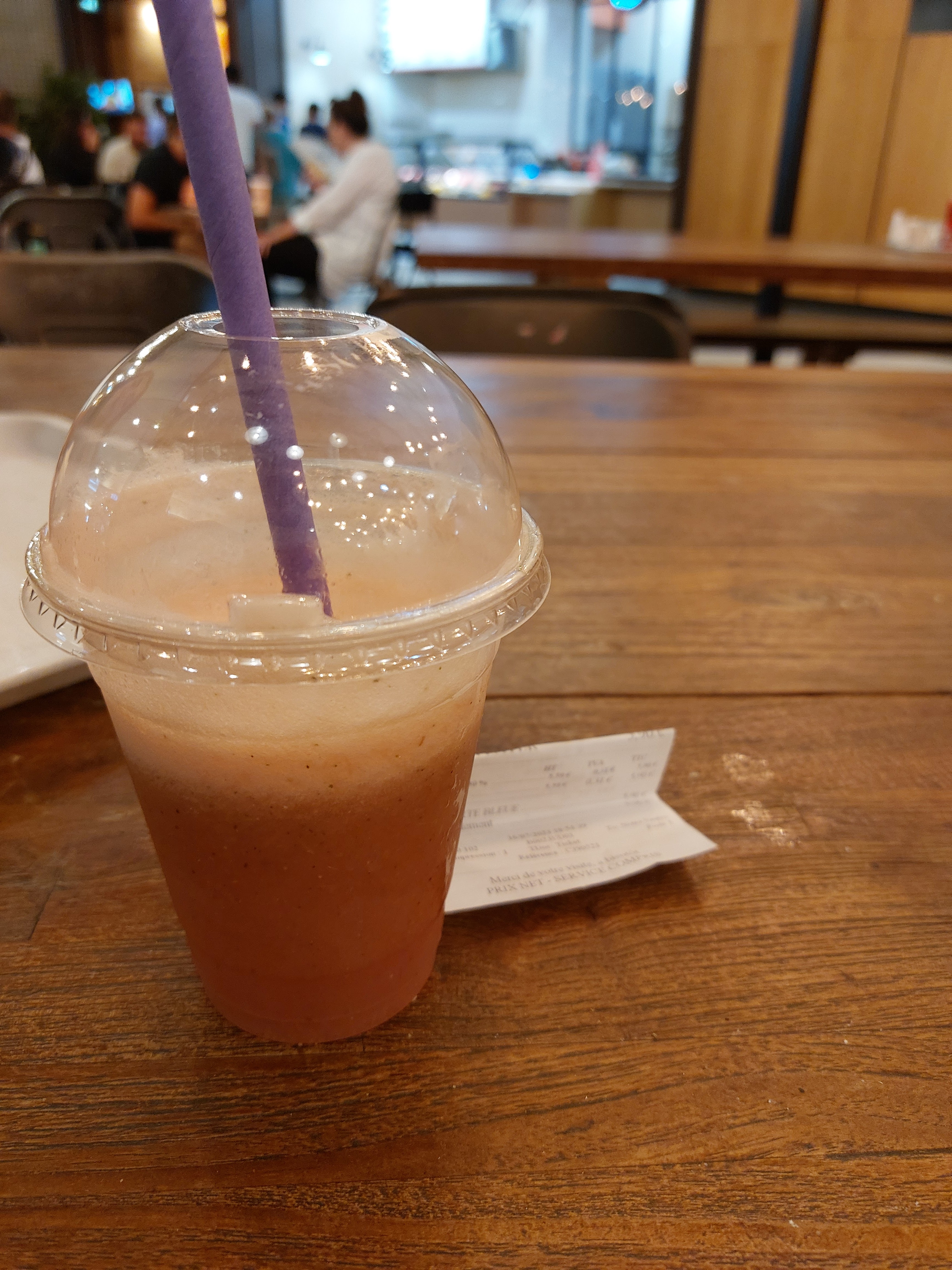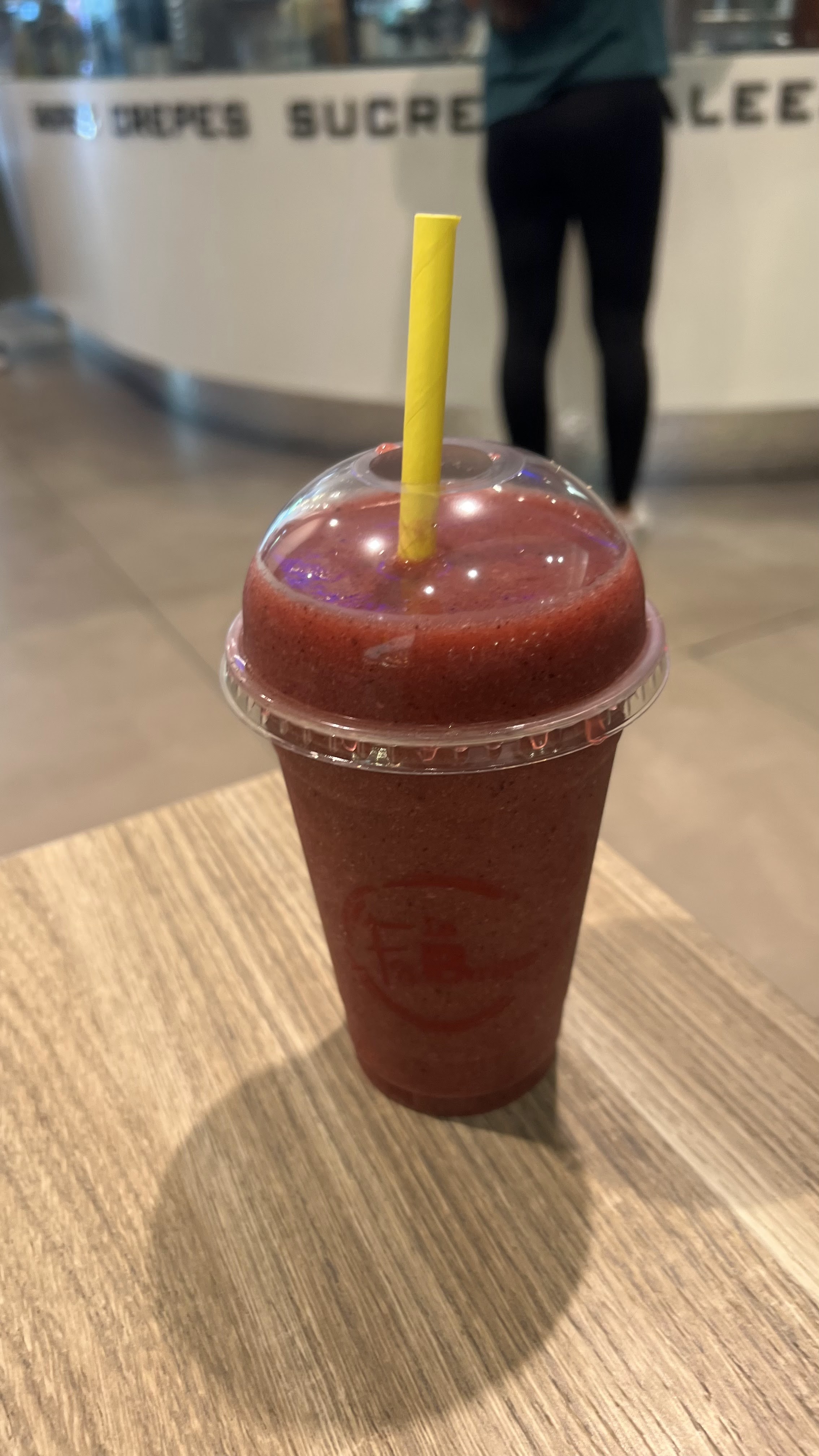 Très déçue ! J'ai commandé un smoothie fraise banane et j'ai été étonnée de voir la préparation. 5e pour quelques malheureux fruits et beaucoup d'eau et de glaçons. Ce qui donne plus le goût d'eau aromatisée qu'autre chose. C'est cher payer pour ce que c'est. Je ne recommande pas pour ce type de produit.