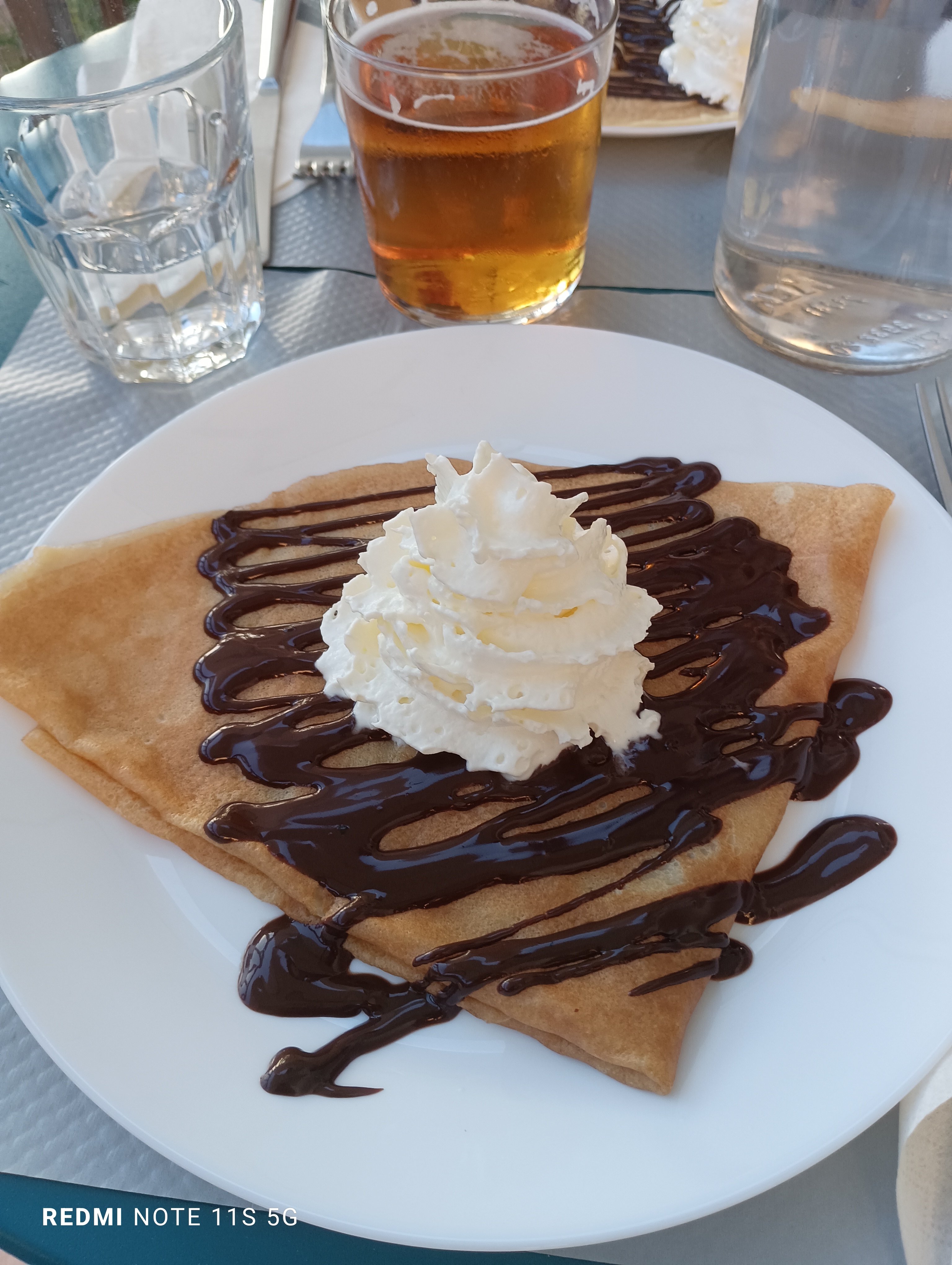 Crêpe très bonne un délice nous nous sommes régalés. Et le Vin rouge excellent.