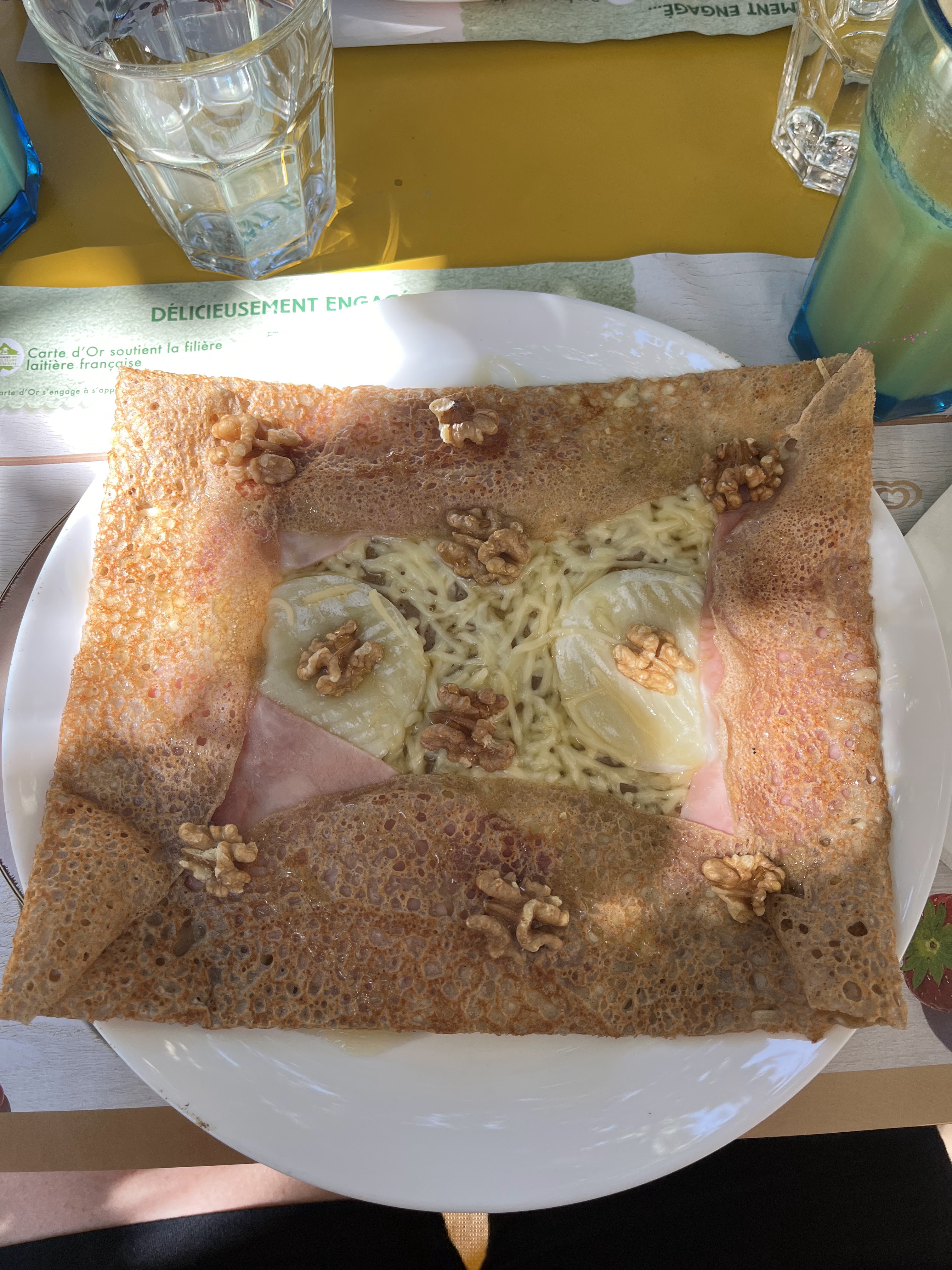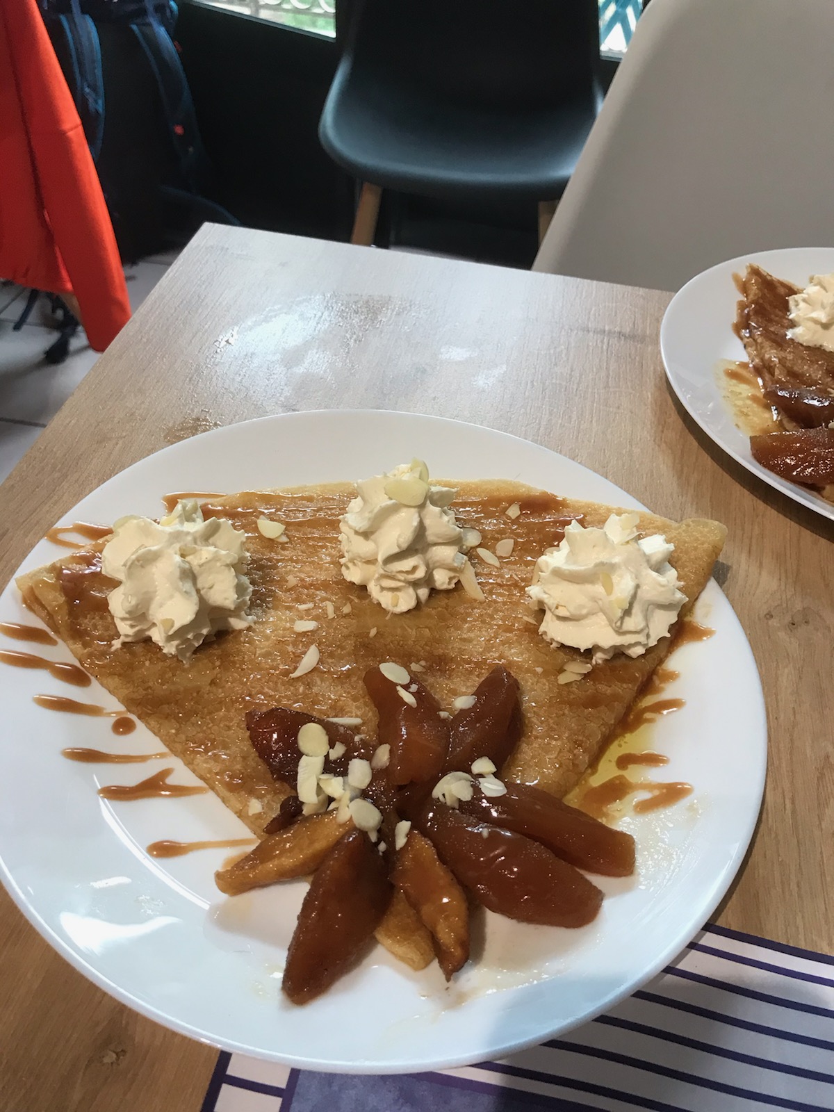 Supers gentils, super vue depuis le mini balcon ! Bonnes crêpes même si trop d’emmental à mon goût, et crêpe chocolat avec si peu de chocolat que ce n’était pas gourmand.