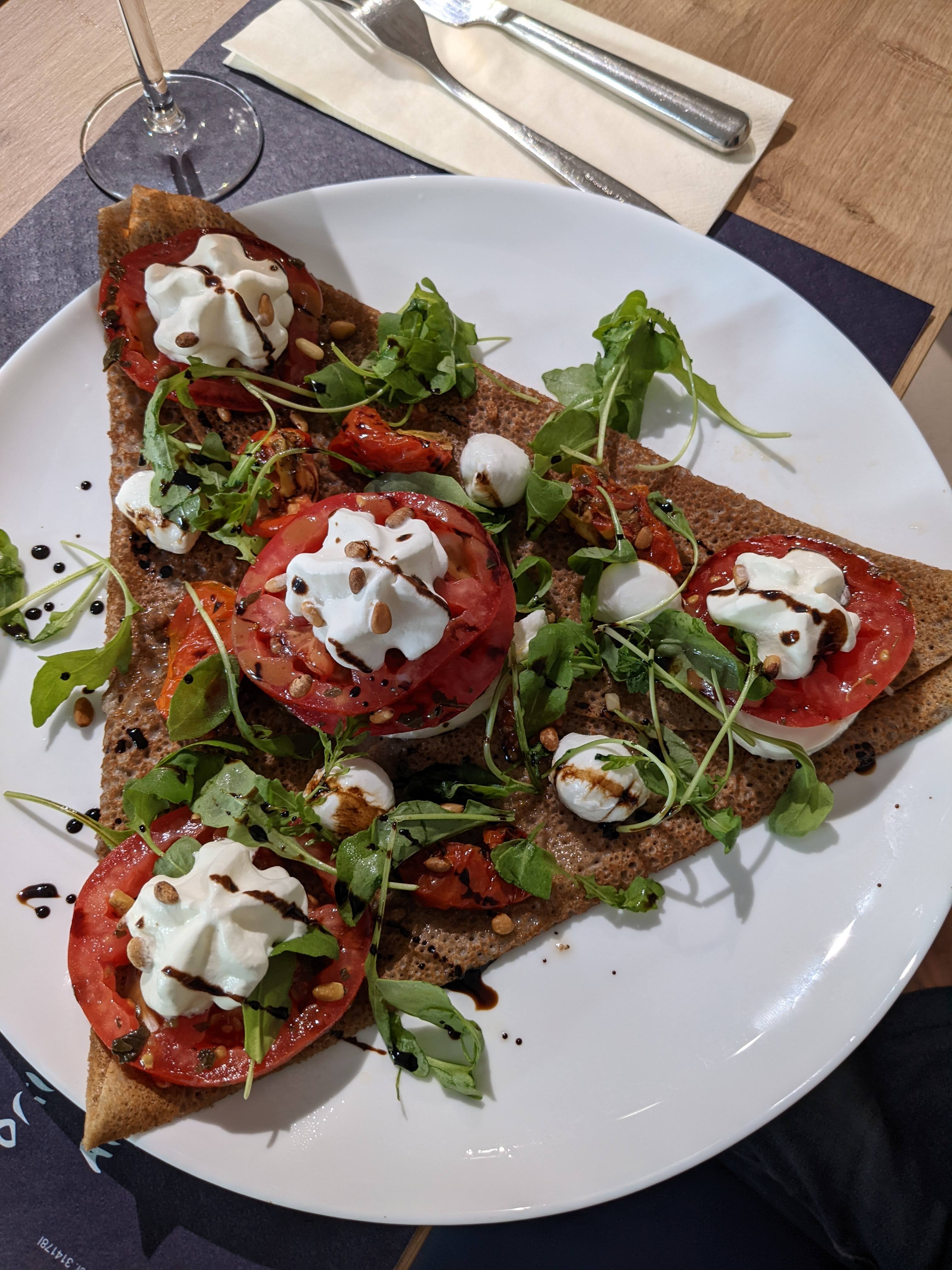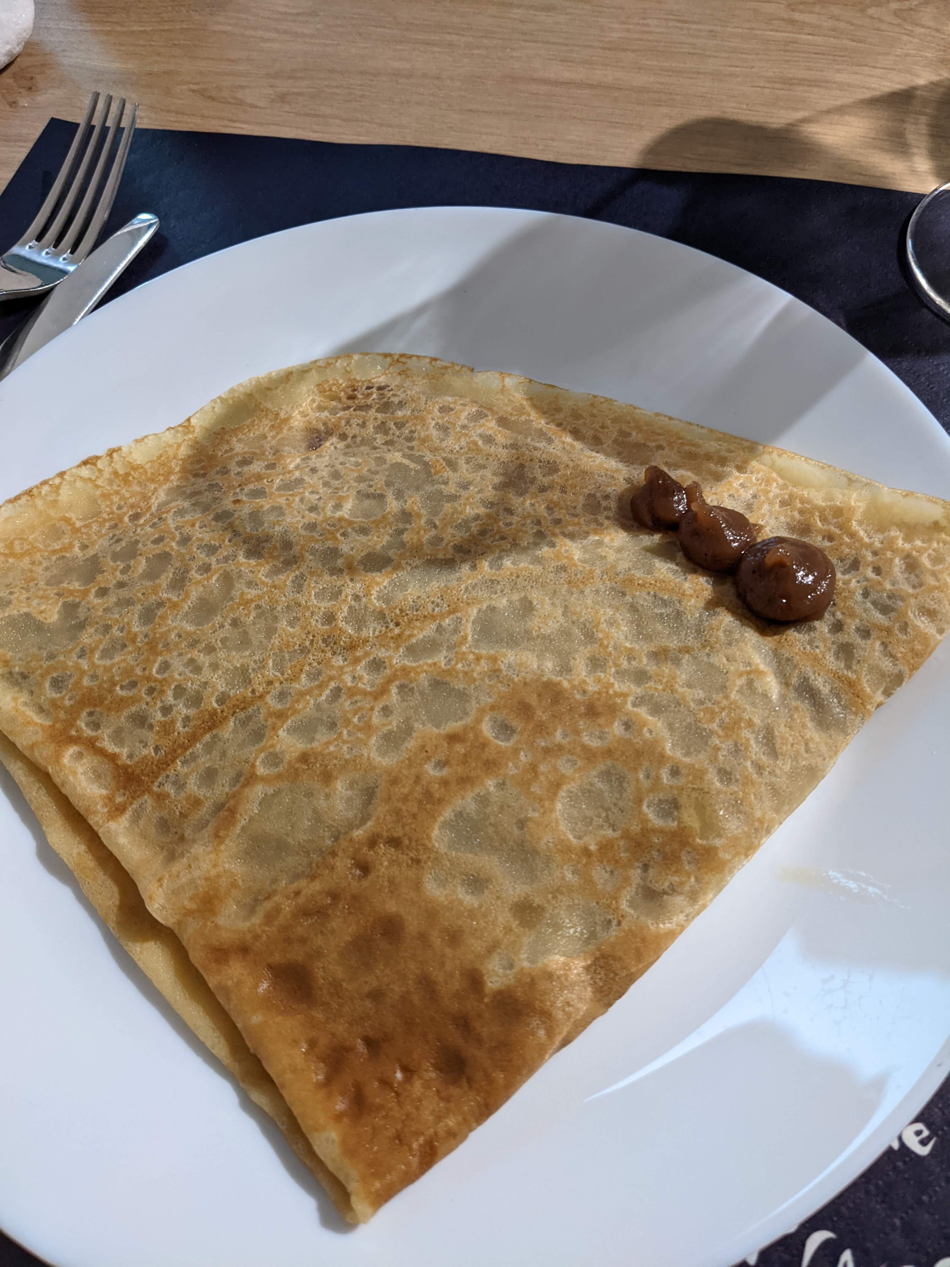 Crêperie super savoureuse ! Dommage, seulement une chaise haute ! Donc notre fille doit sortir chercher de la nourriture en poussette