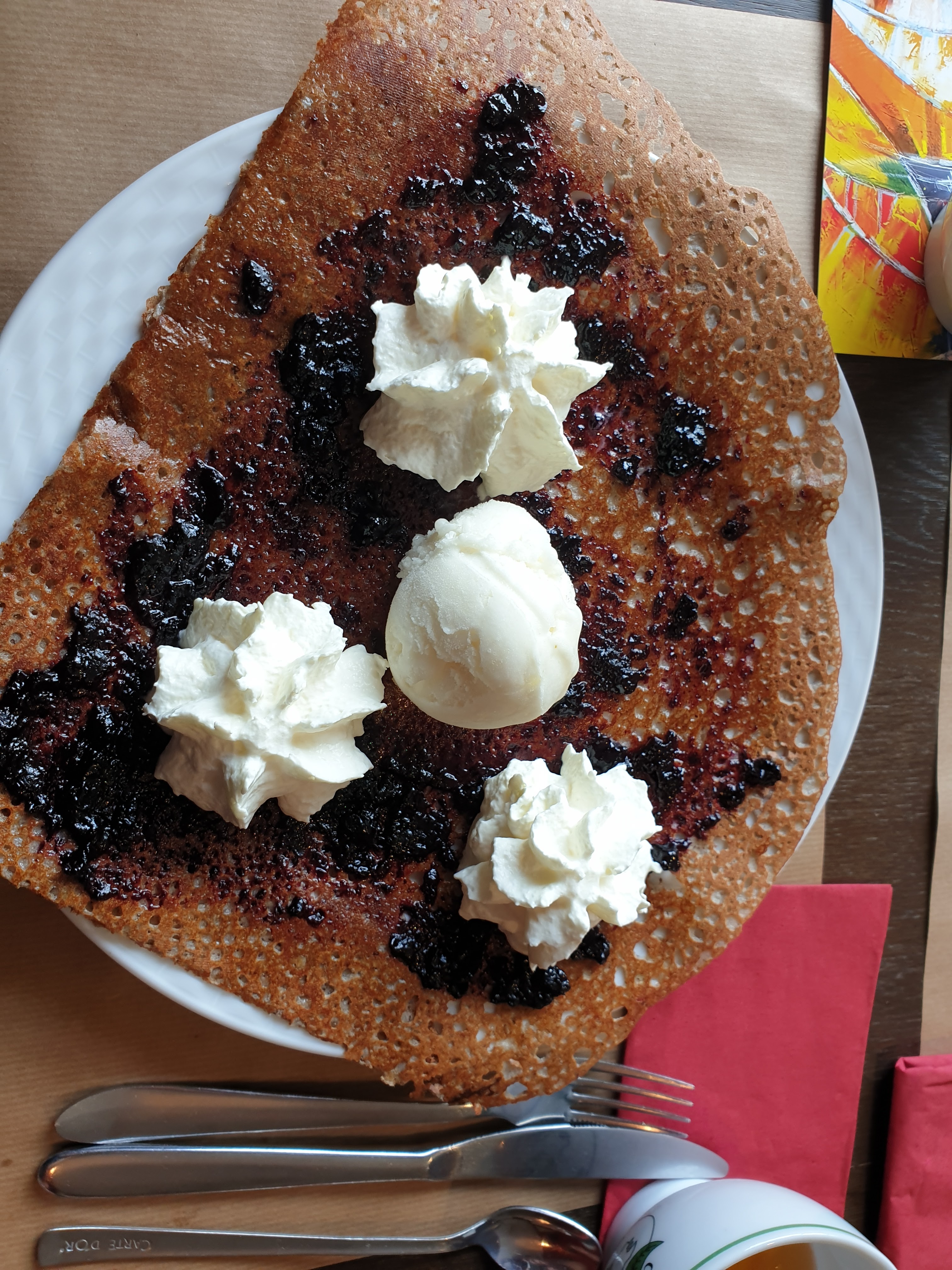 Véritables crêpes bretonnes au blé noir, accompagnements bien pensés et équilibrés, bonnes crêpes au froment, service au top, familiale et bienveillant, je recommande !