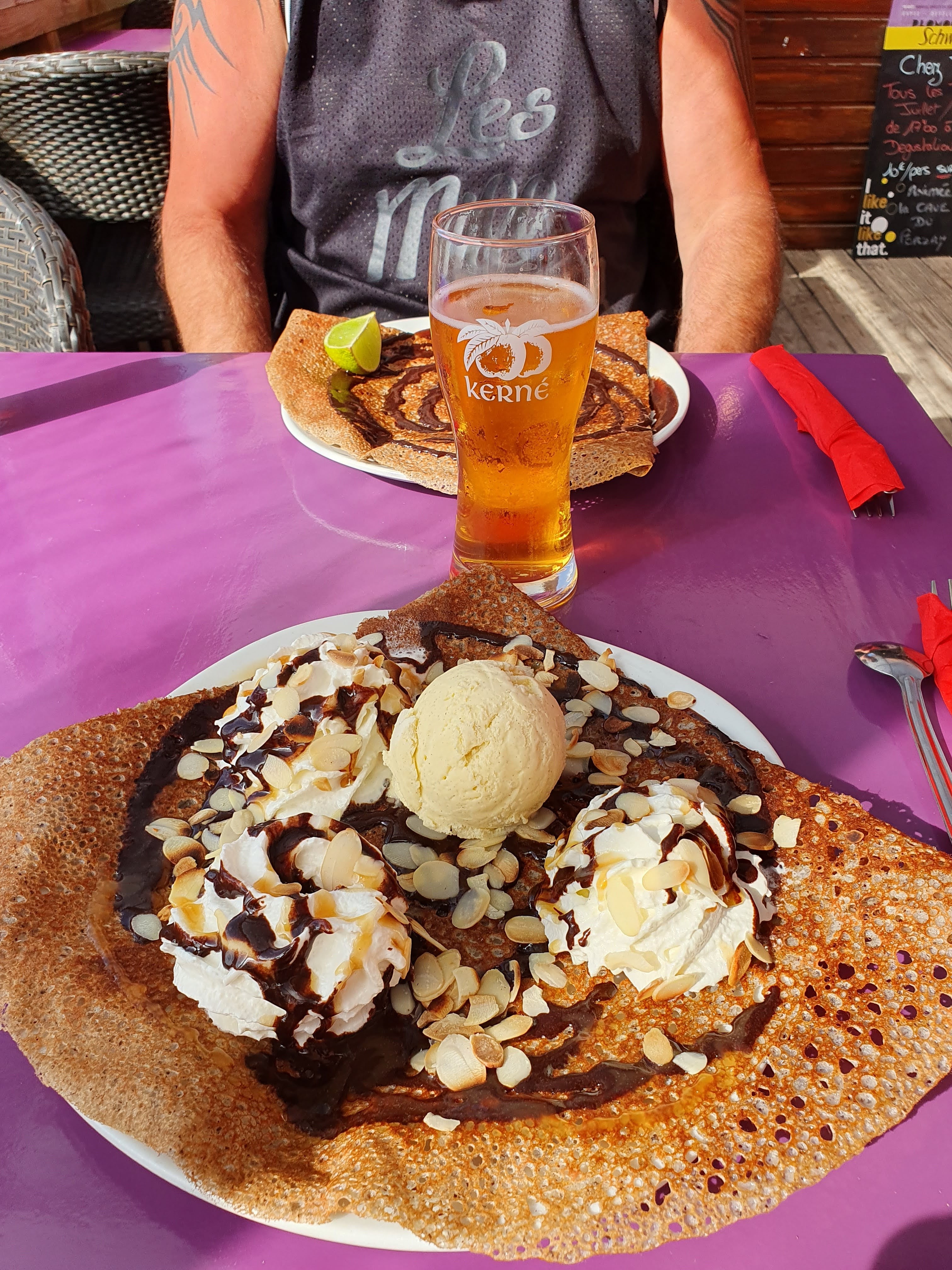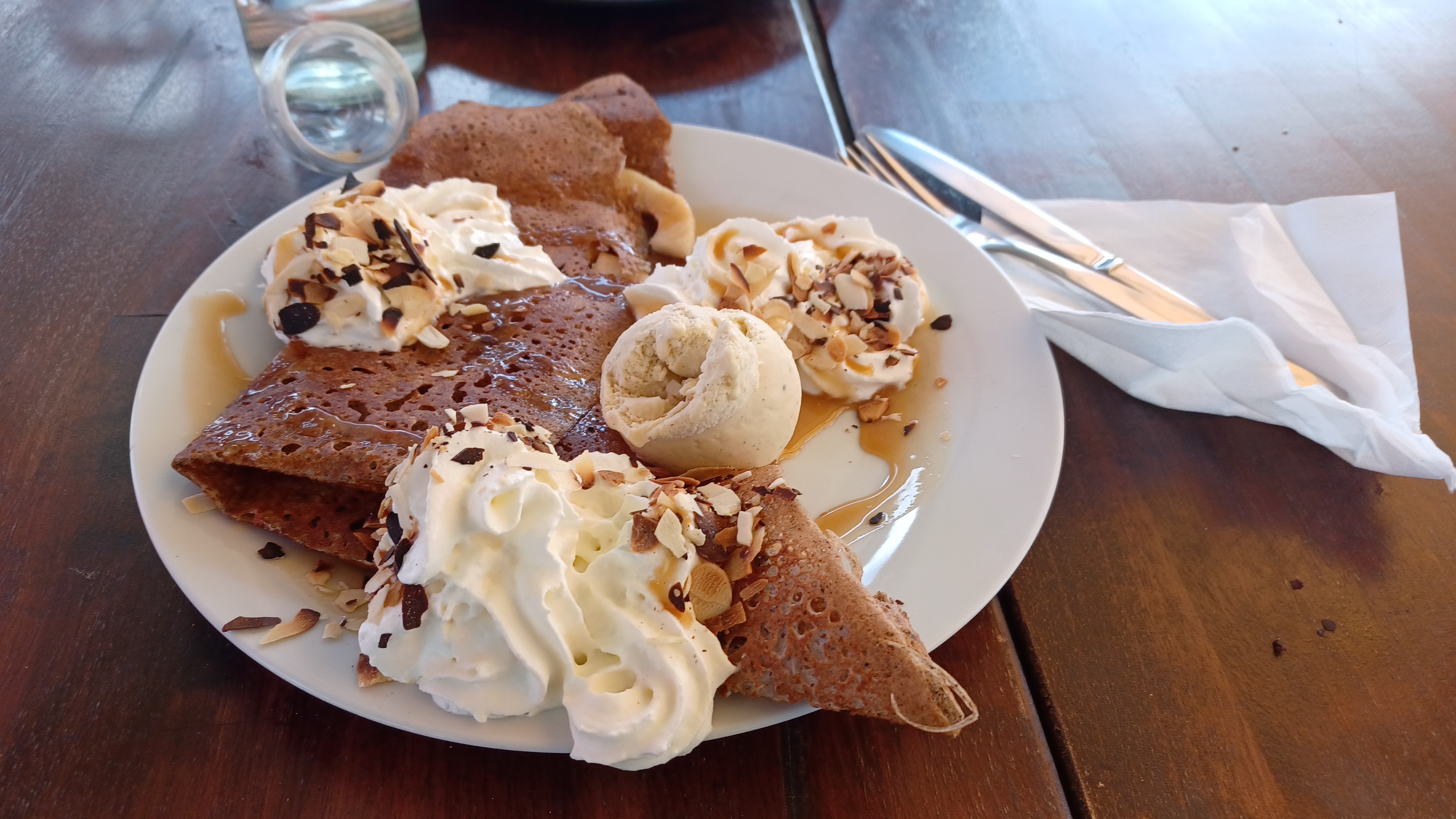 Serveur impeccable, bon accueil, crêpes très bonnes et généreuse