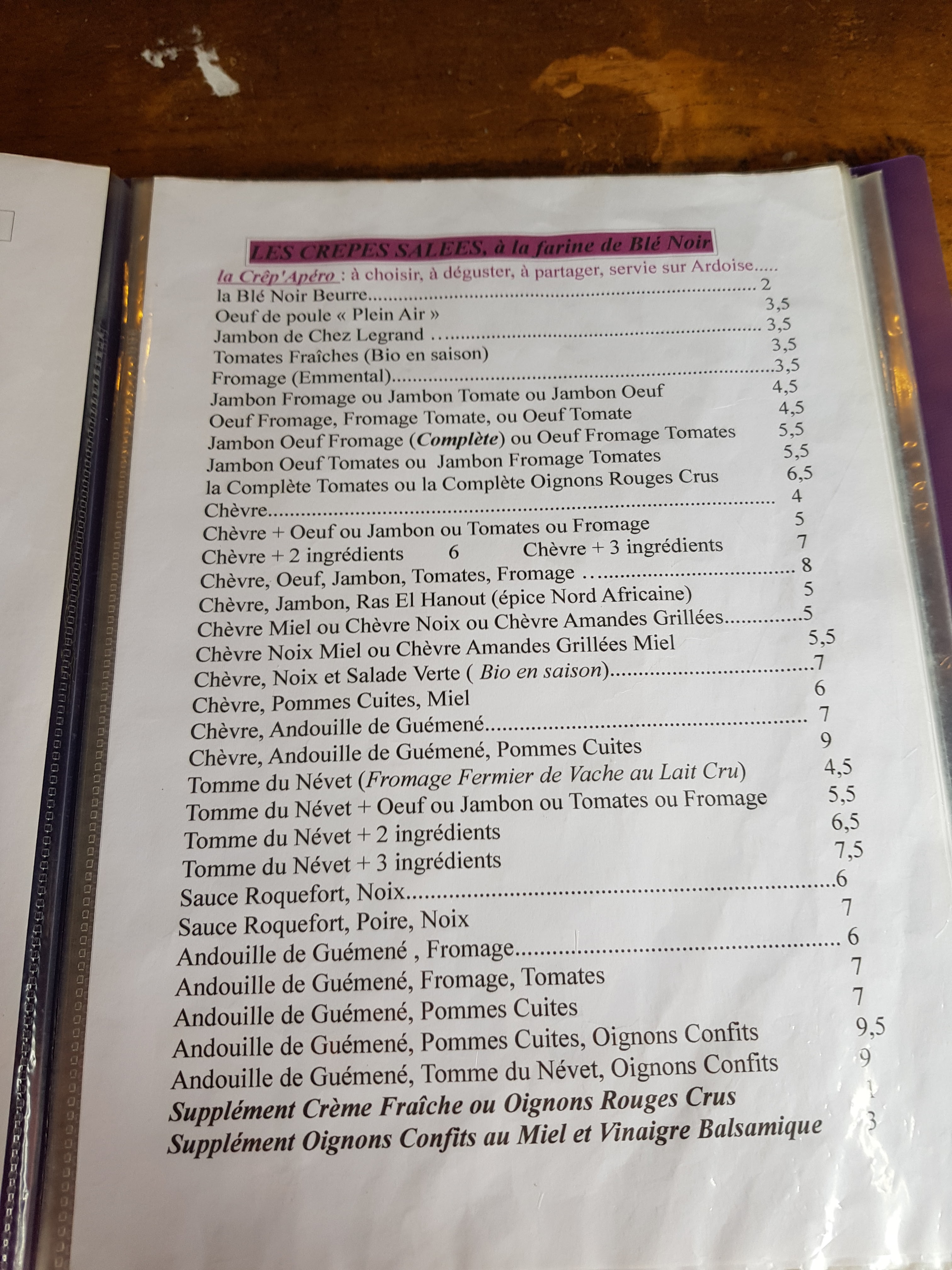 Nous sommes venus nous restaurer pour le goûter très déçu par l accueil de la seveuse (la courtoisie n'est plus présente), erreur de commande, les crêpes étaient brûlées, la commande de boissons incomplète. Et en prime erreur sur l addition. Je ne recommande pas