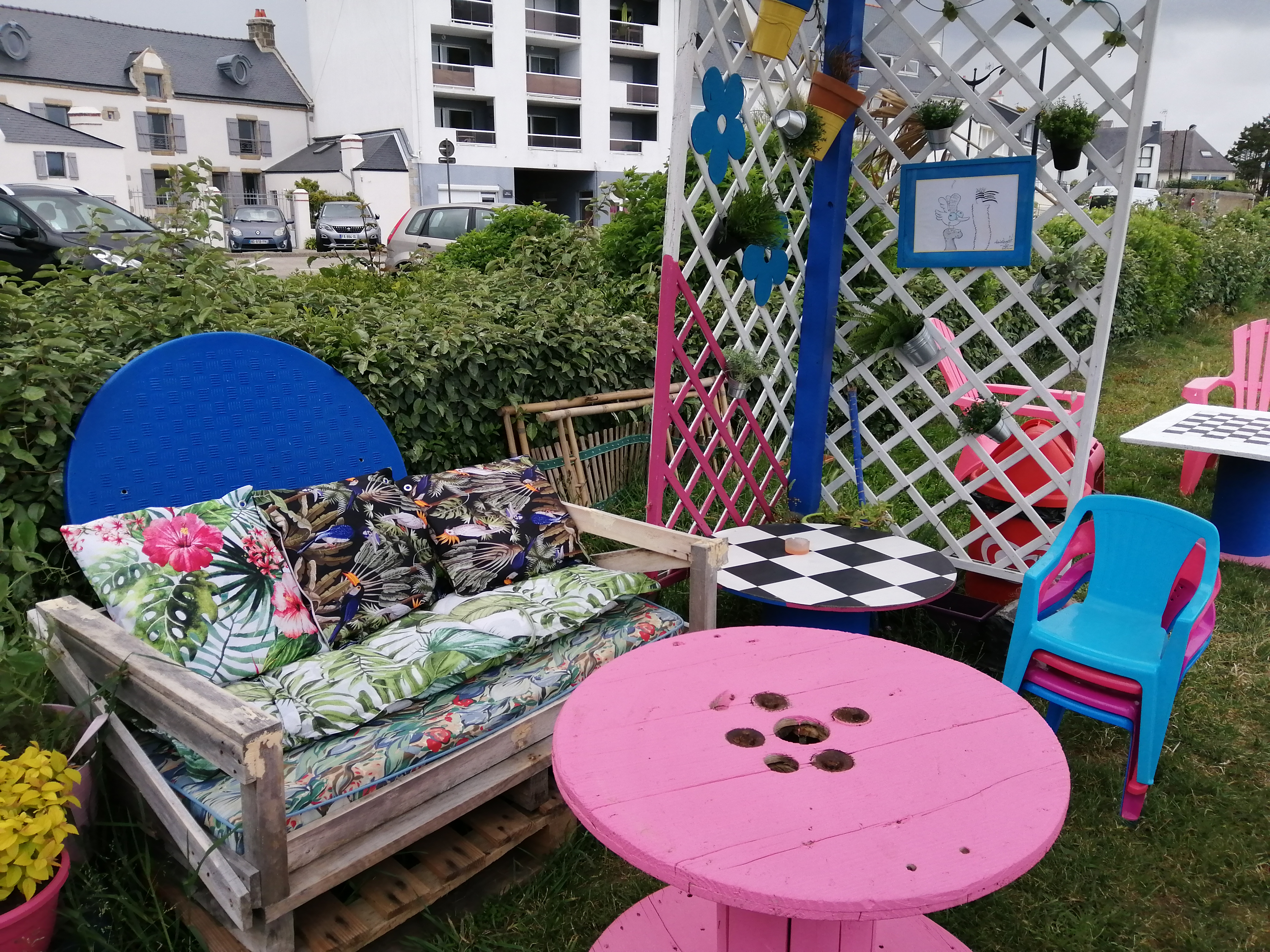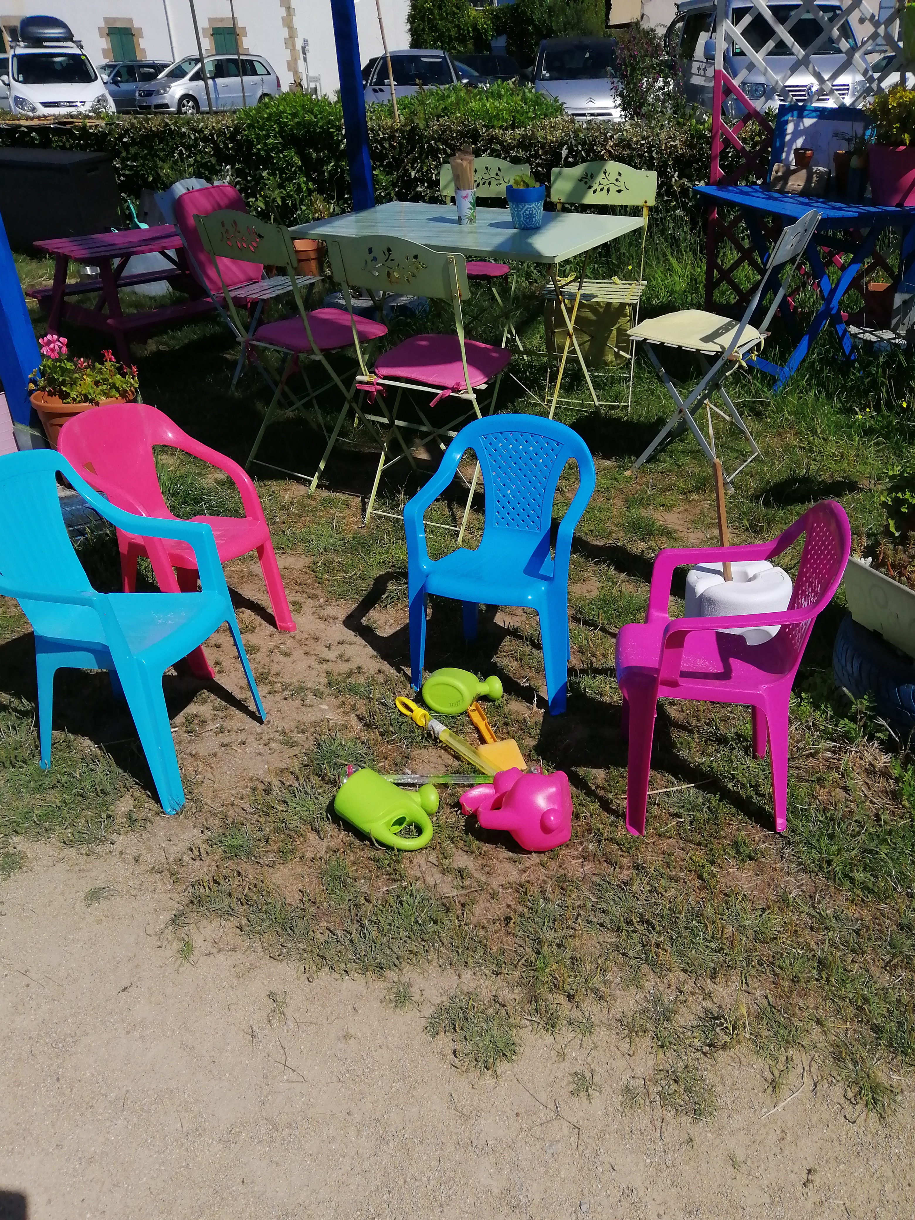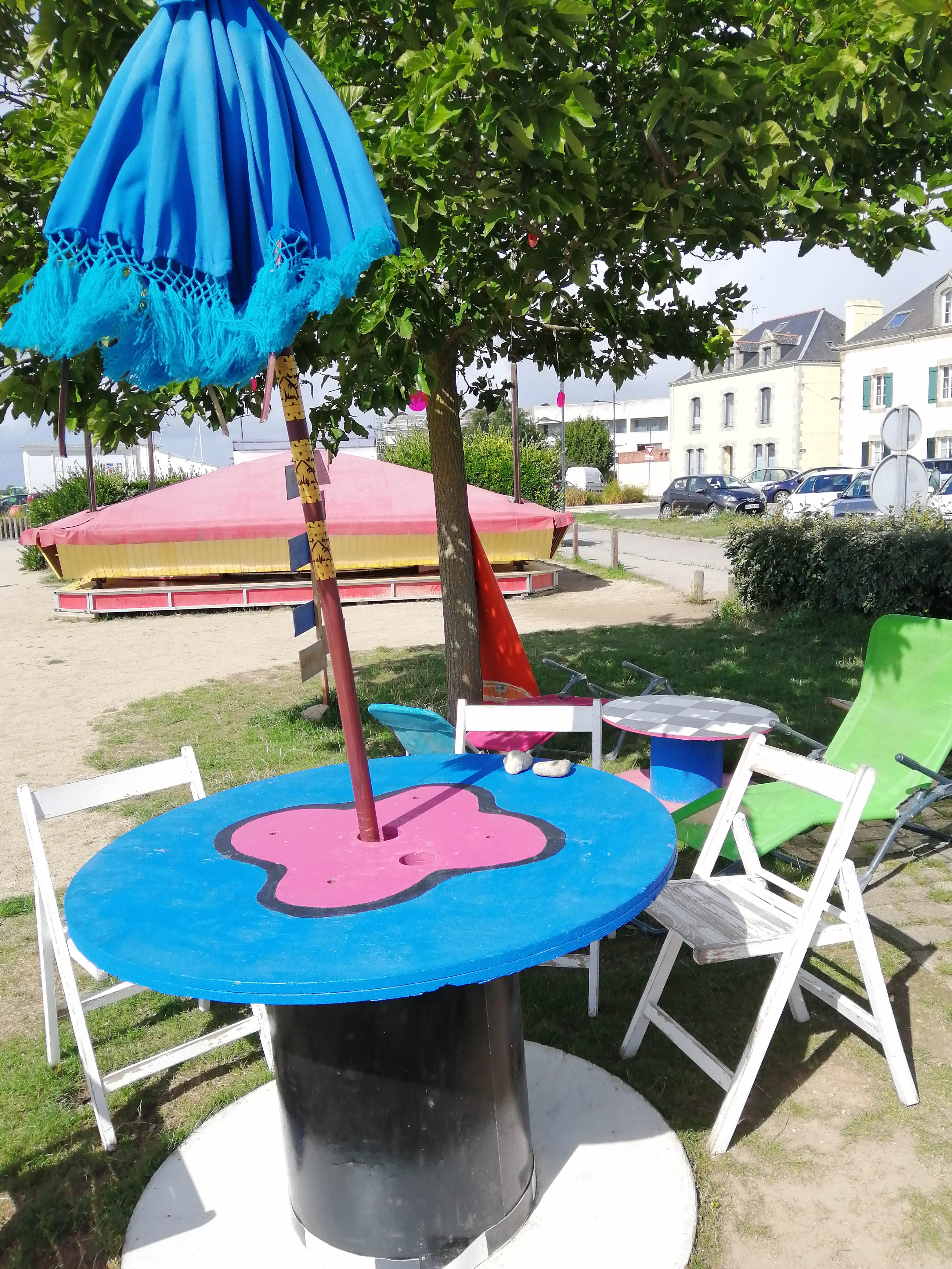 Super petit coin avec quelques tables à l'ombre pour déguster votre galette.