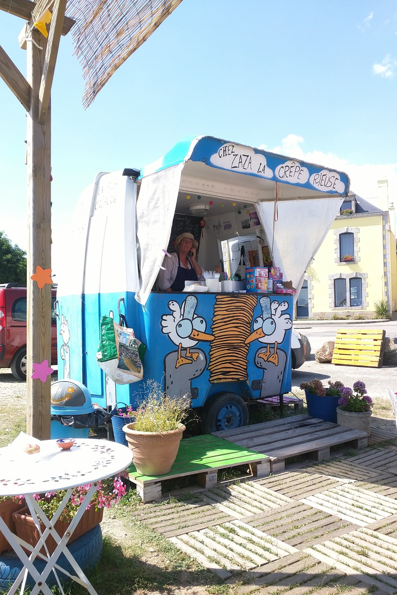 Une pause gourmande chez zaza face à la mer..commerçante accueillante qui vous prépare d excellentes galettes et crêpes. On reviendra..