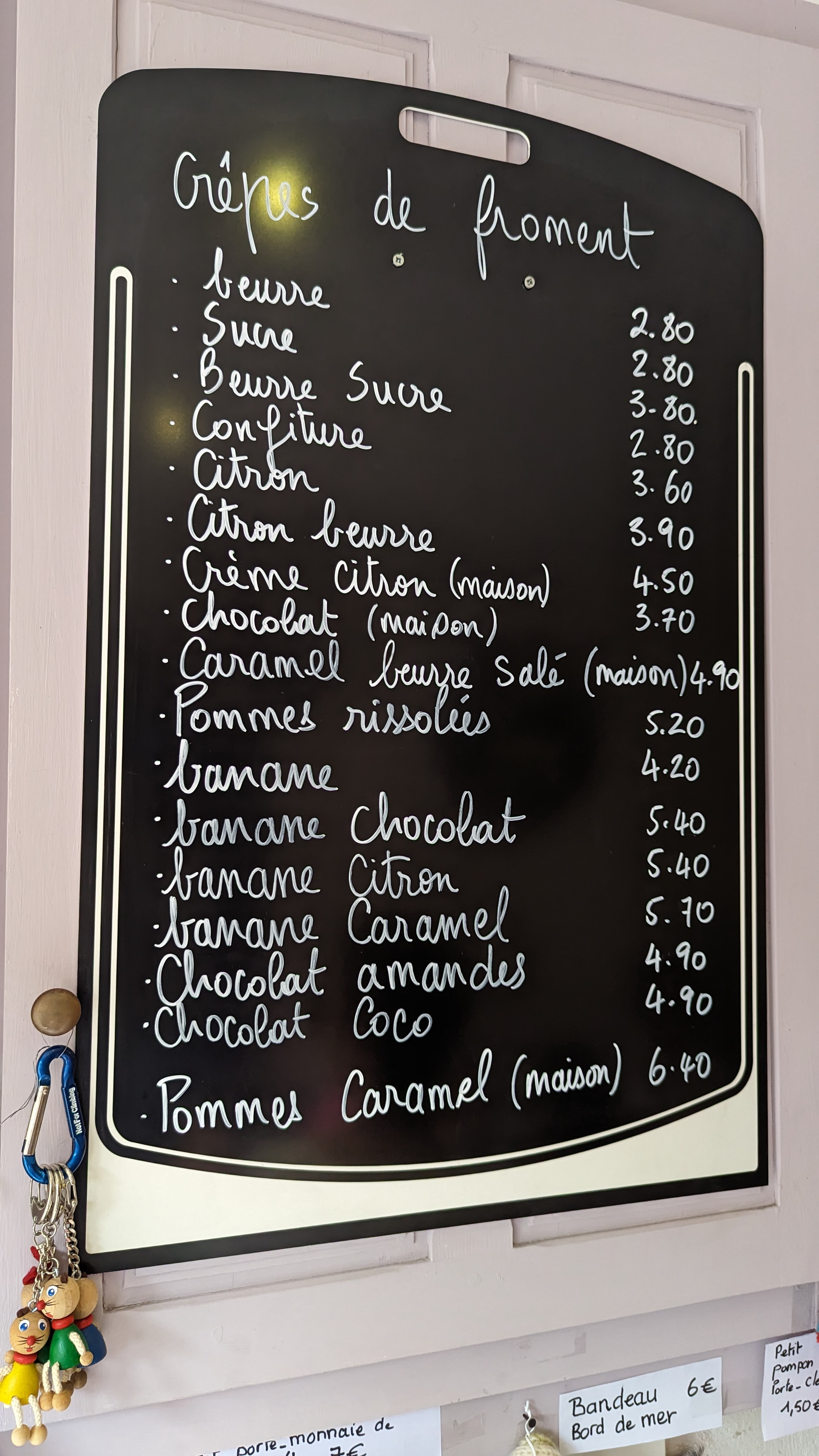 Bonjour, Mr Mike Awa, je pense que vous faites erreur sur la crêperie, la crêpe chocolat maison n'est pas à plus de 4€ Loll !!!, comme vous l'annoncez. La carte est affichée...