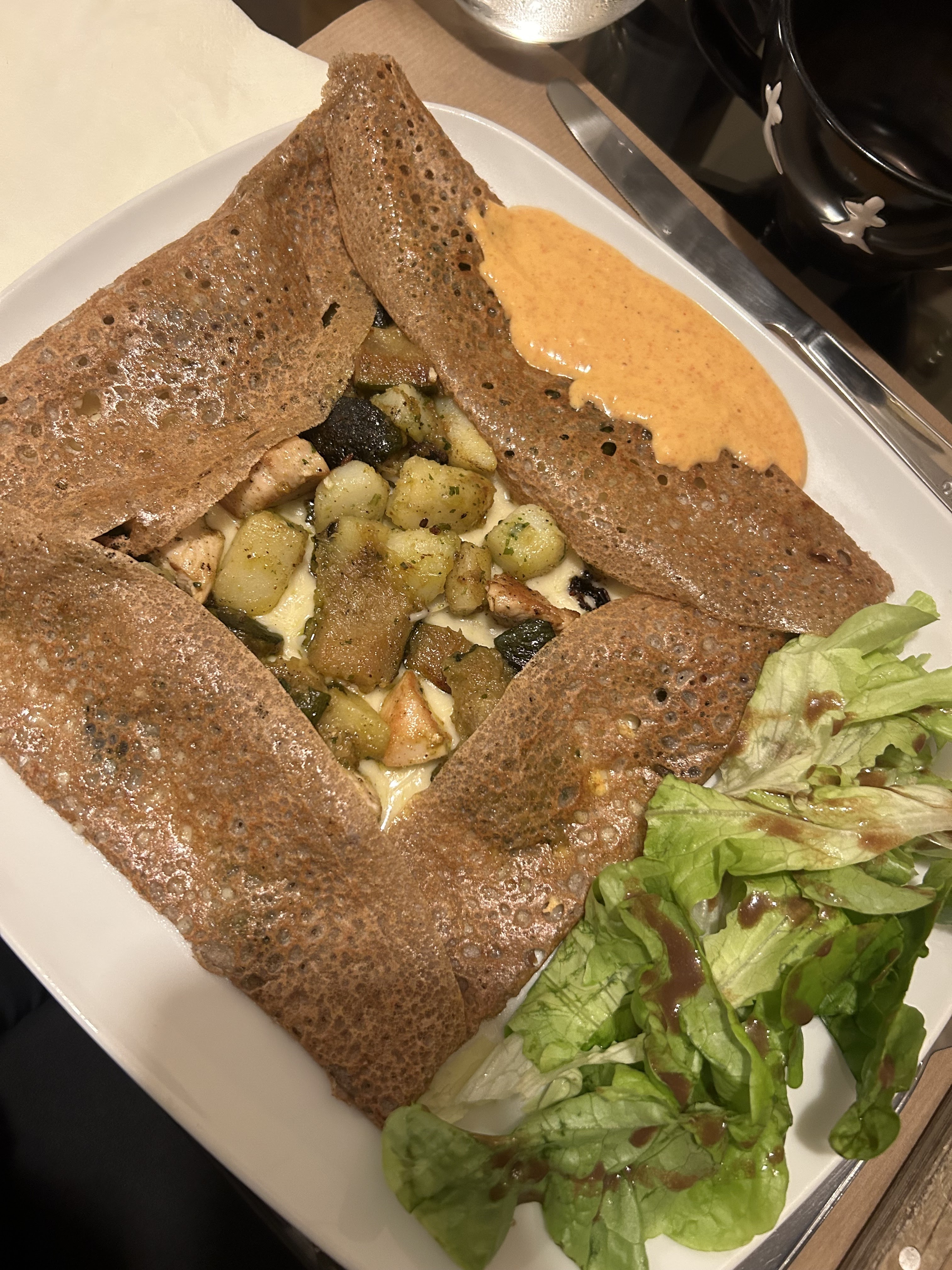 De très très bonnes crêpes et une formule complète a 15 euros qui vous cale direct 😅. Je vous conseil c'est une très bonne adresse.