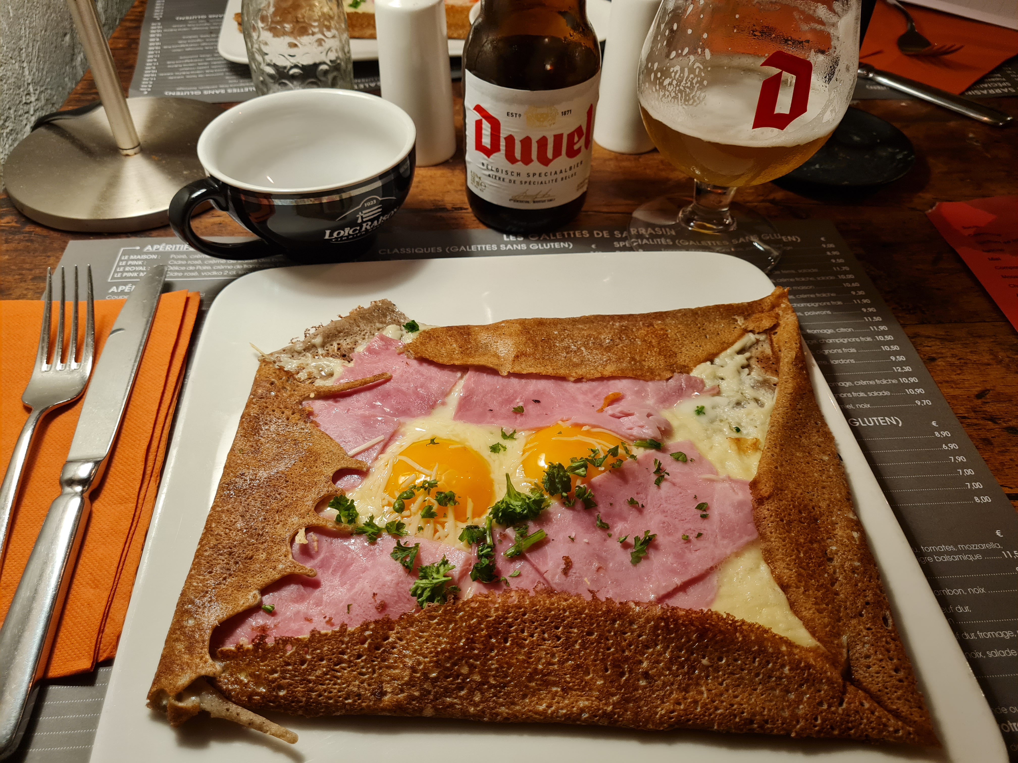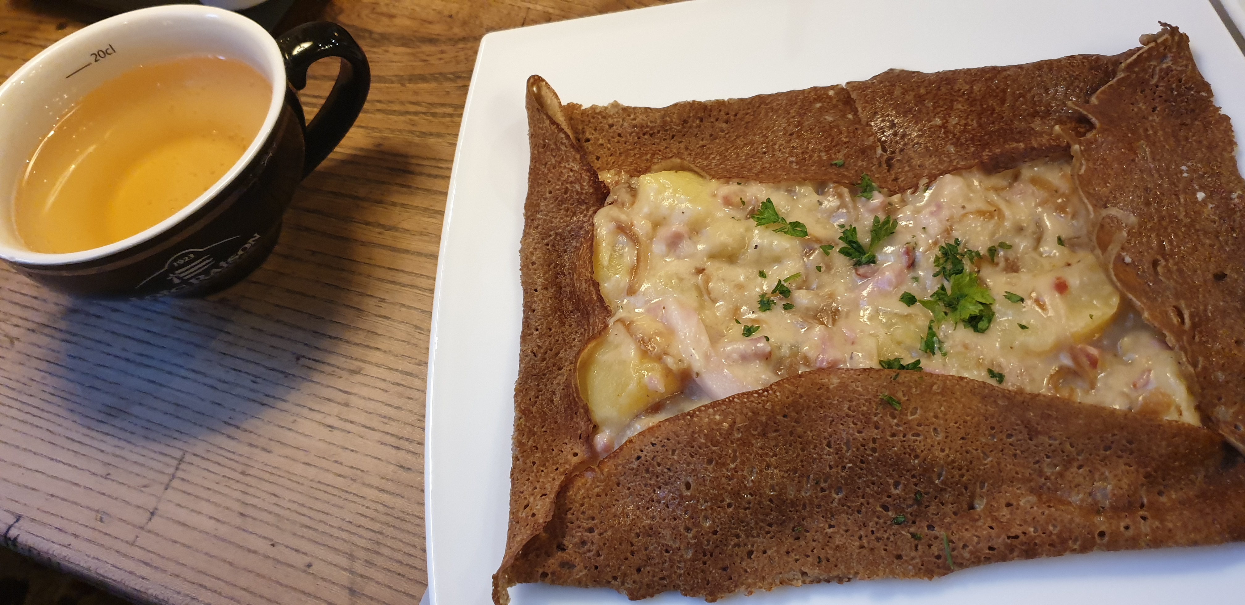 Le lieu est sympa, près de la grand place, avec son ambiance cosy, et un personnel accueillant. Les galettes sont vraiment excellentes, cuisson parfaite ( moelleuses et croustillantes à la fois), avec des ingrédients de bonne qualité ( légumes et oeufs pour nous), du choix sur la carte. Nous avons également apprécié les desserts, bien que nous ayons trouvé la pâte à crêpe sucrée un peu fade. Très bonne adresse pour une envie de crêpes !