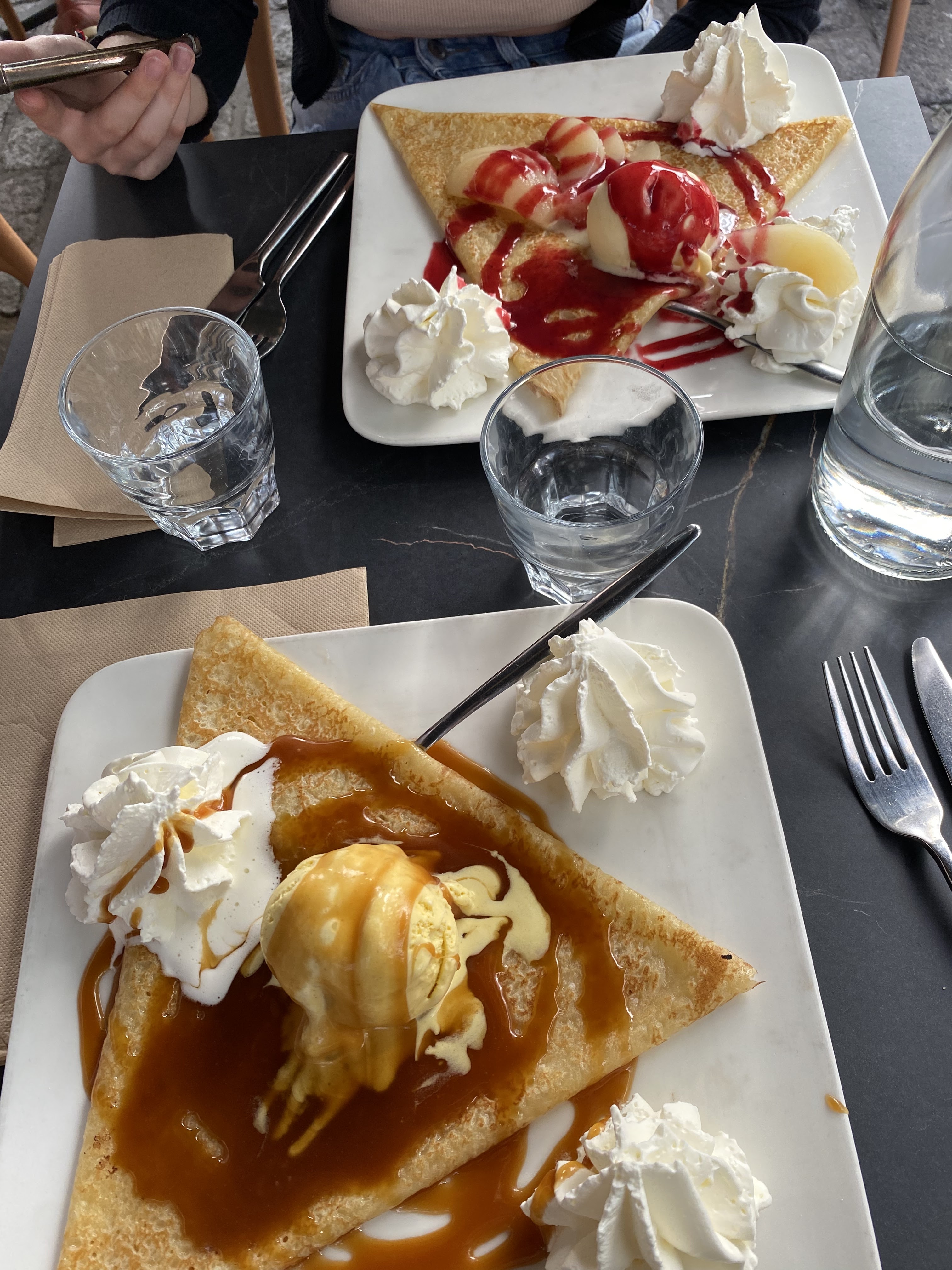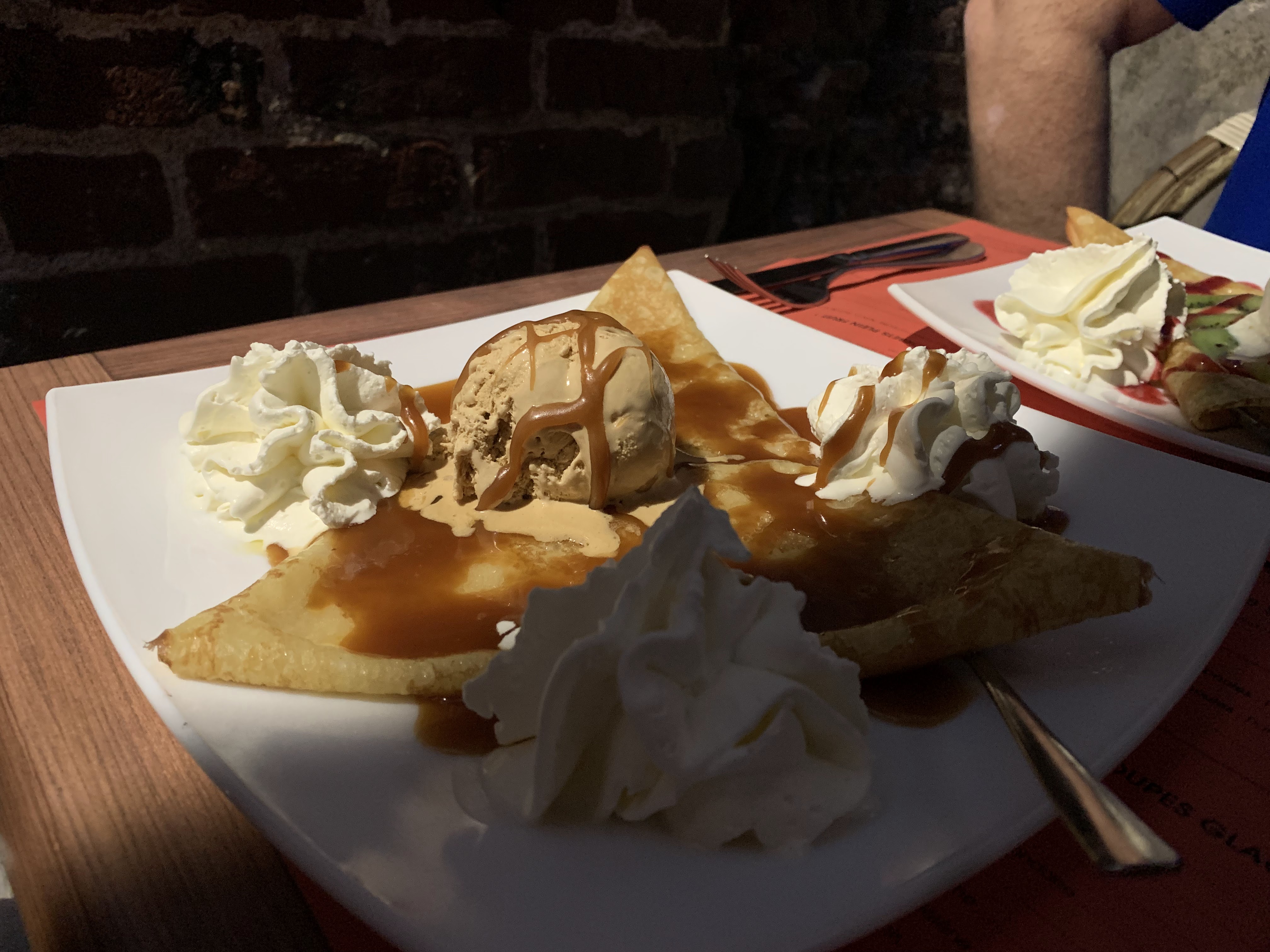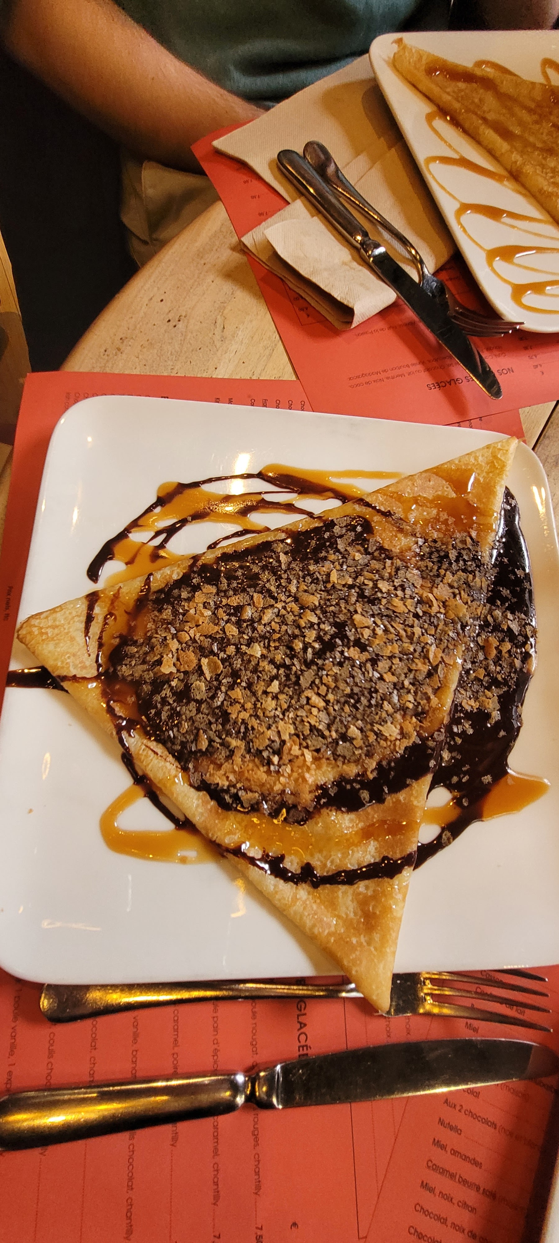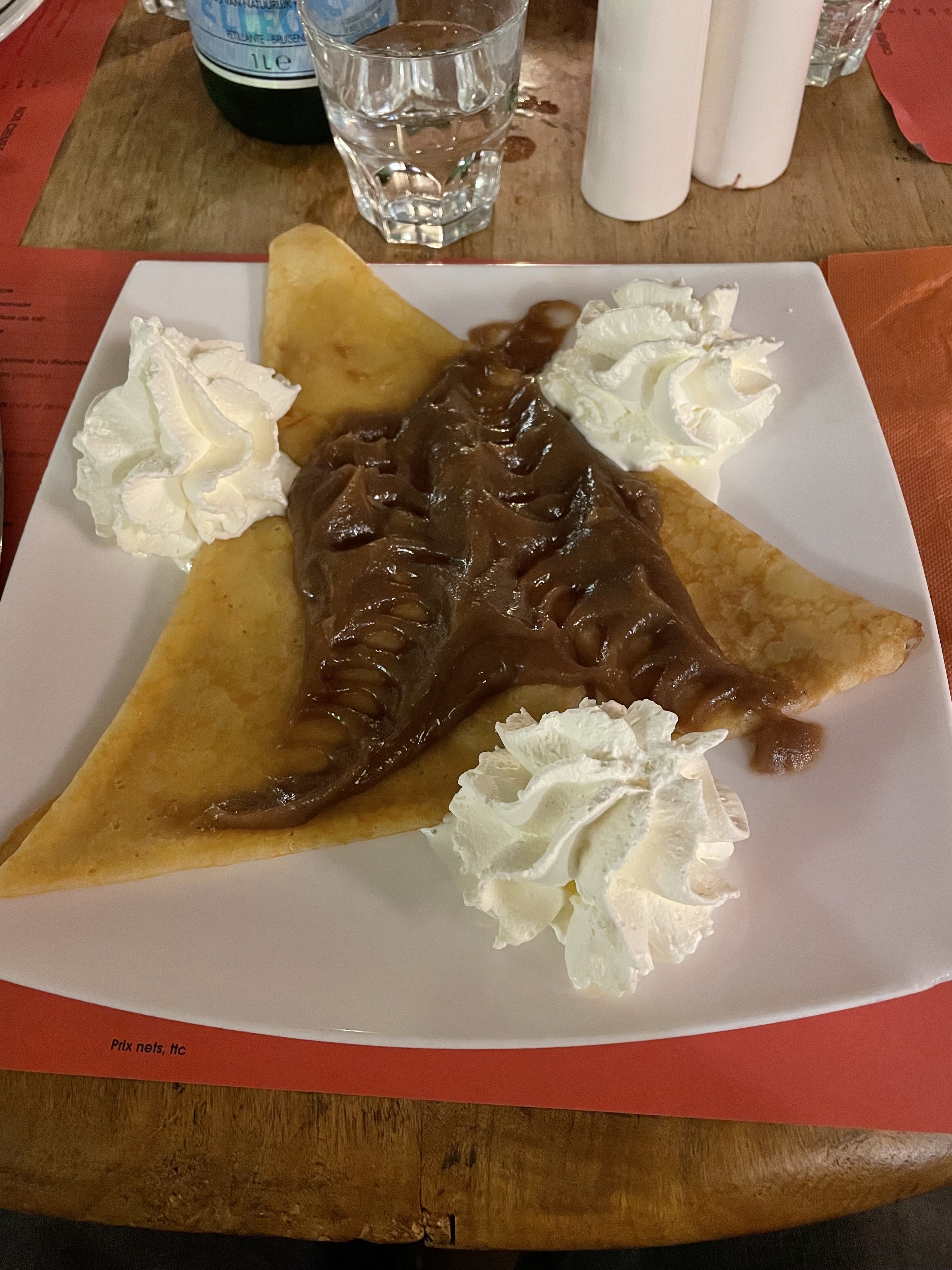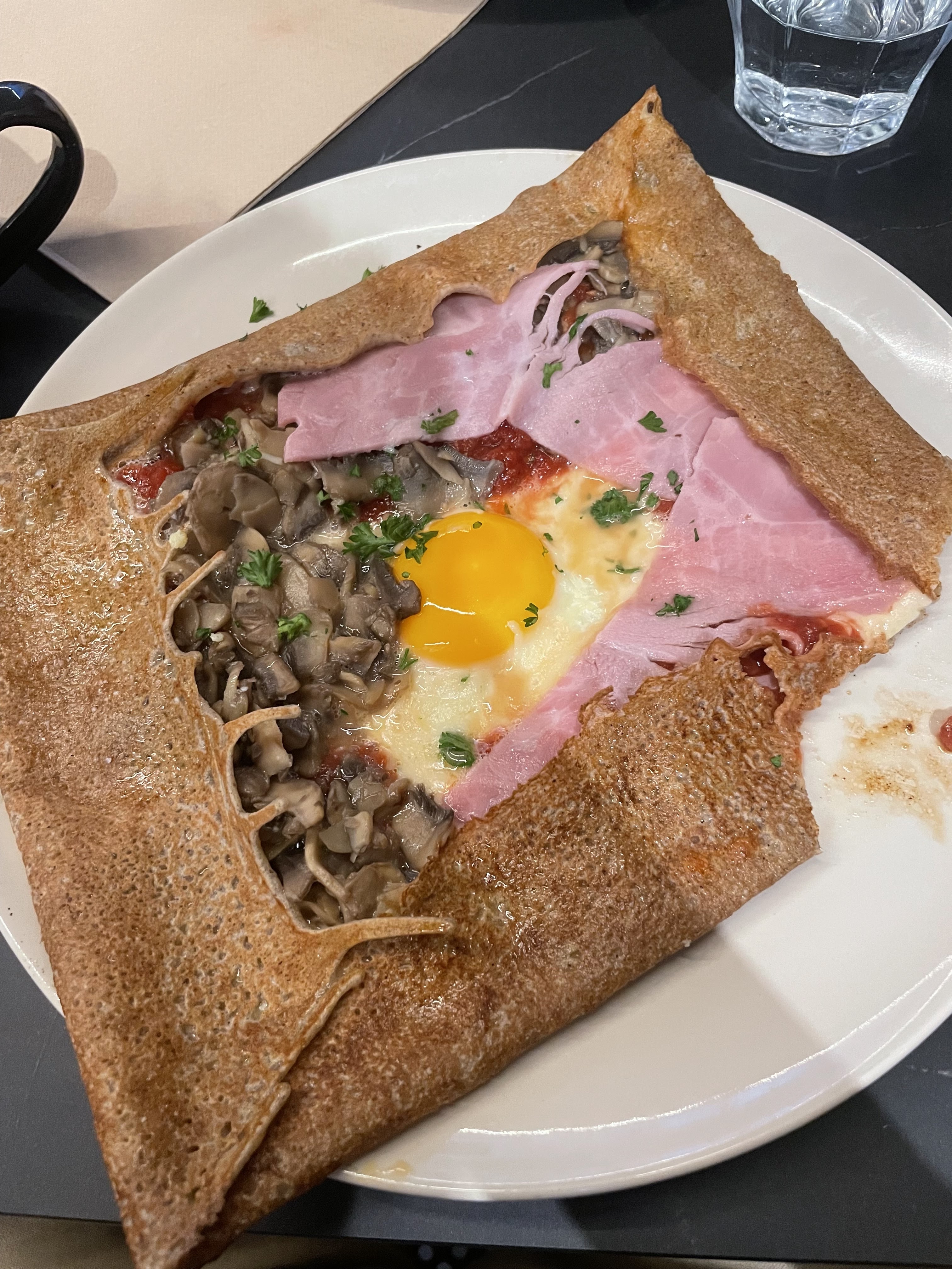 Nous sommes arrivées 30 mins avant la fermeture de la cuisine et nous avons été super bien accueillies. Crêpe au roquefort délicieuse et généreuse et possibilité de faire une dame noire à la place d’une dame blanche alors que pas à la carte donc j’étais ravie !