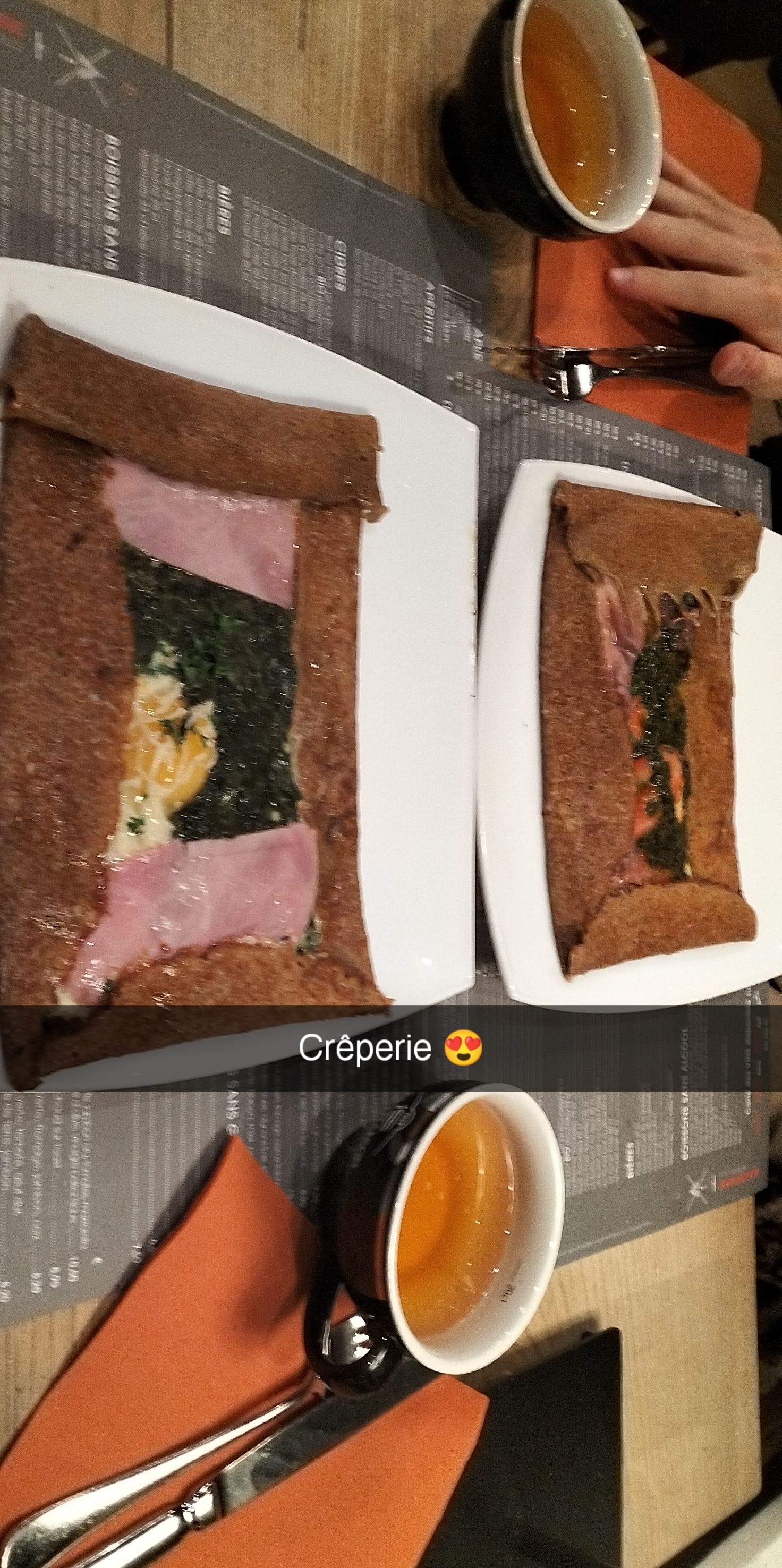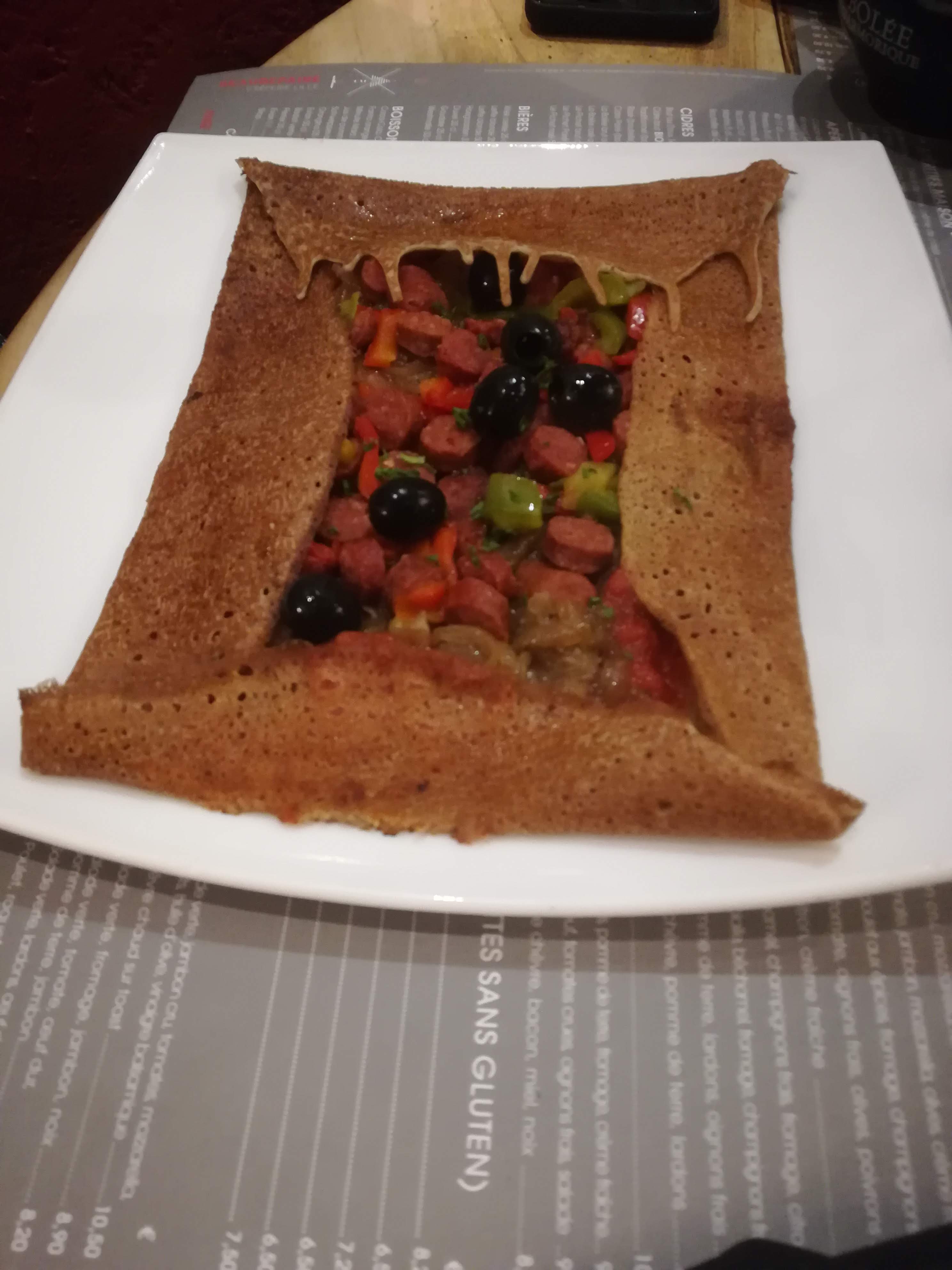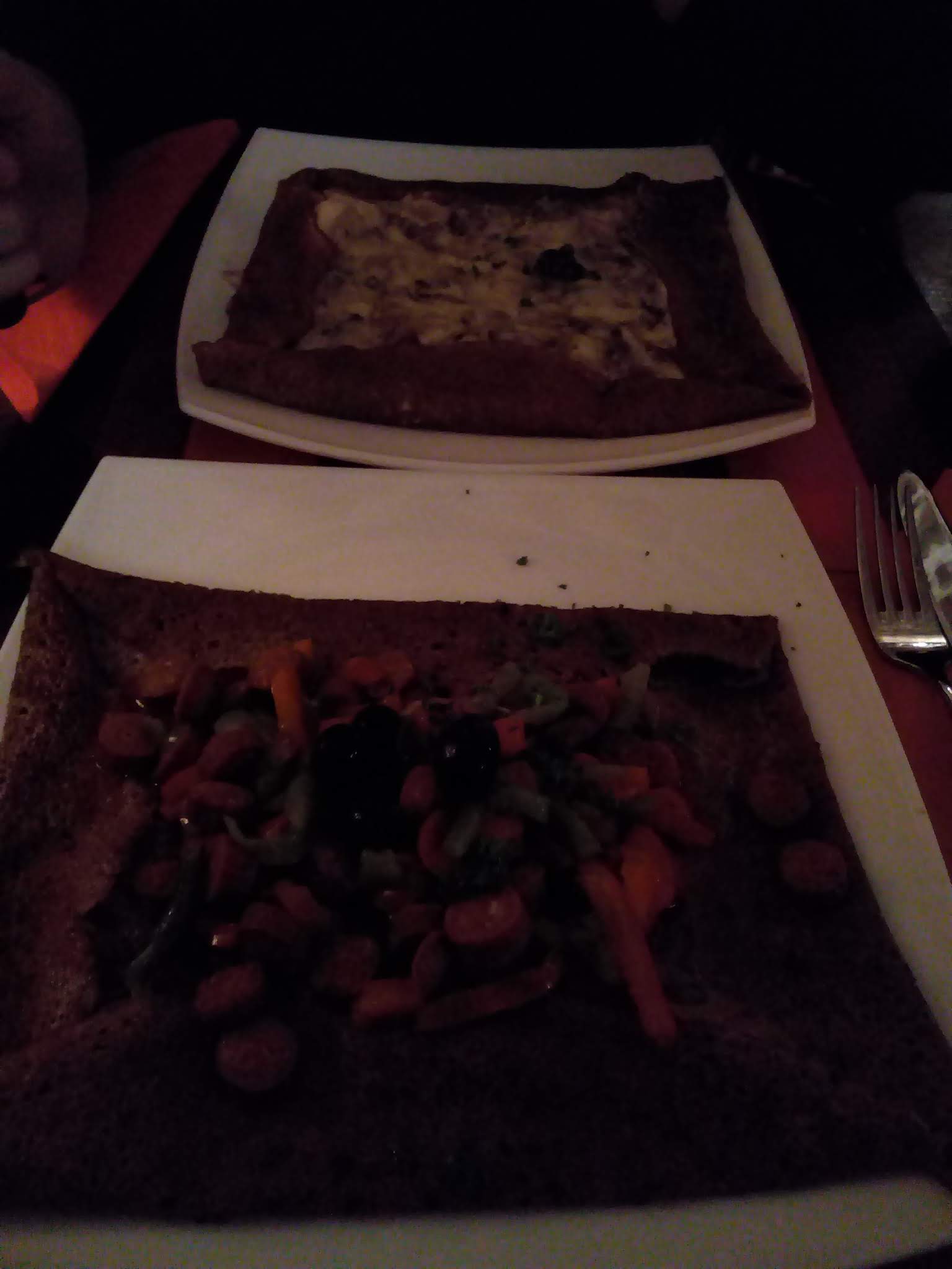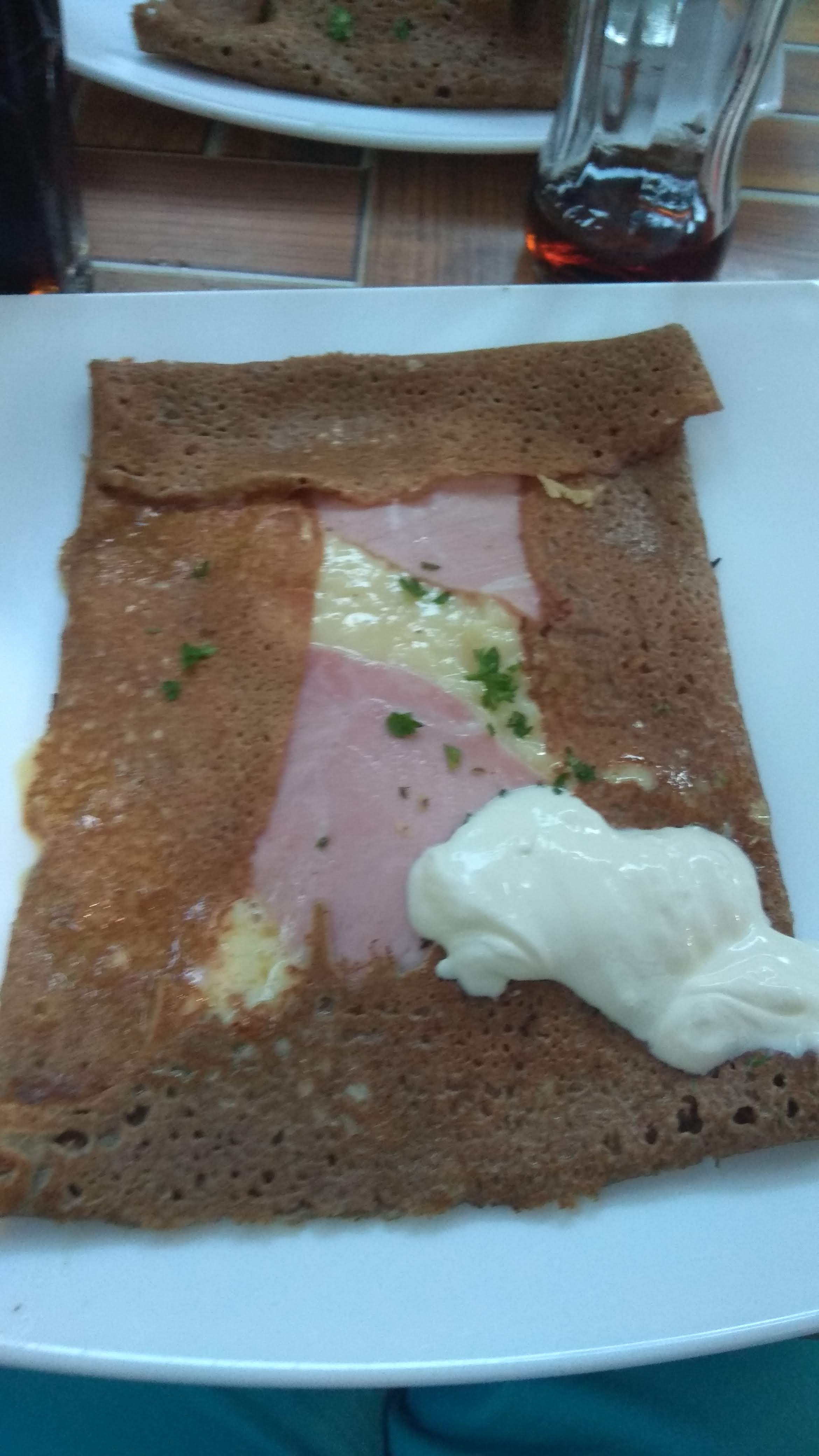 Une crêperie ne peut prétendre à s’appeler ainsi, si les galettes, et non les crêpes, ne sont pas faites uniquement de sarrasin. Seul les bretons comprendrons, et visiblement cette crêperie ne leur fait point honneur. Jugez-en par vous même, le cliché parle de lui même. Nous avons mangé ce soir des crêpes salées et non point des galettes. Bye.