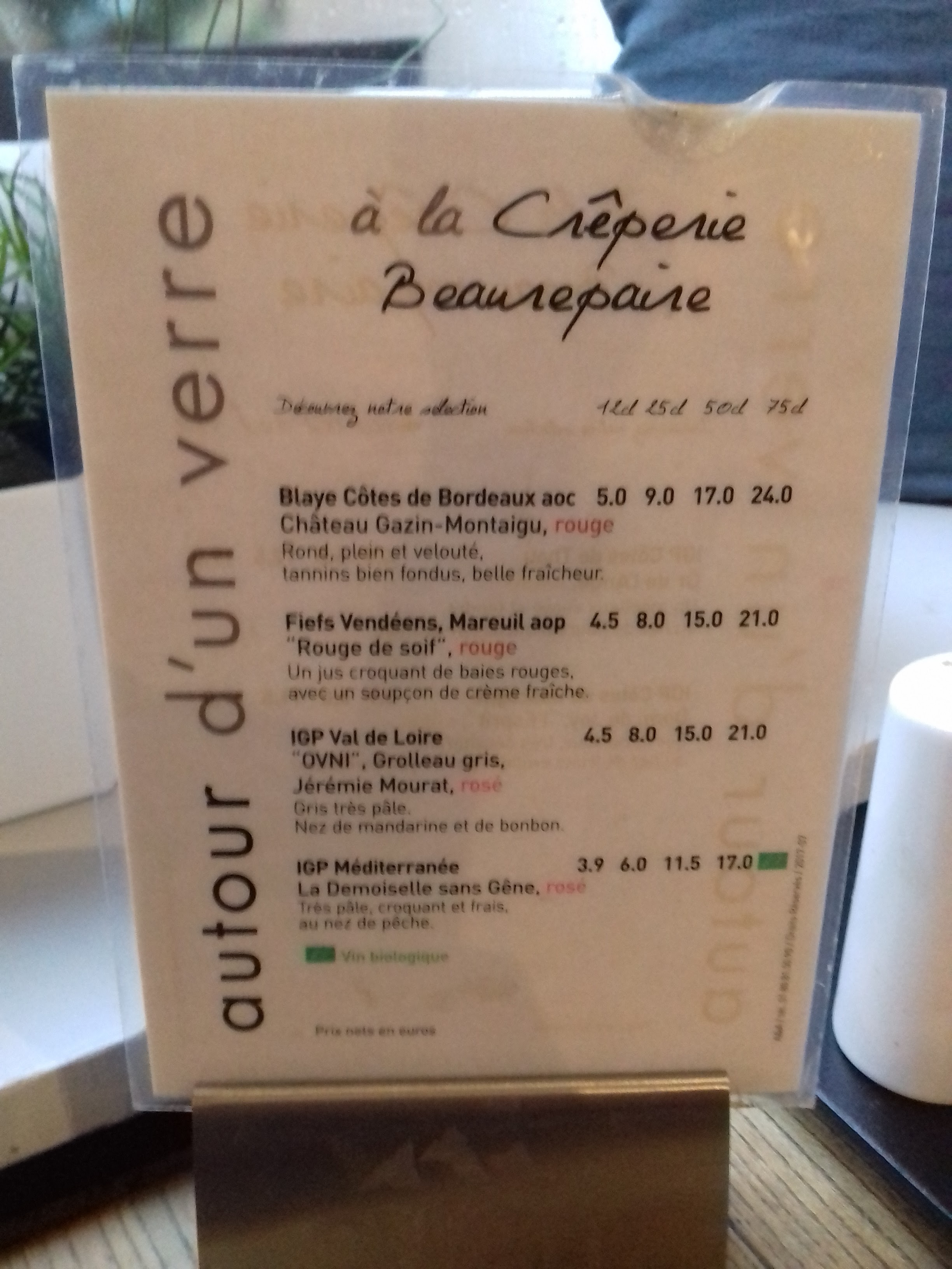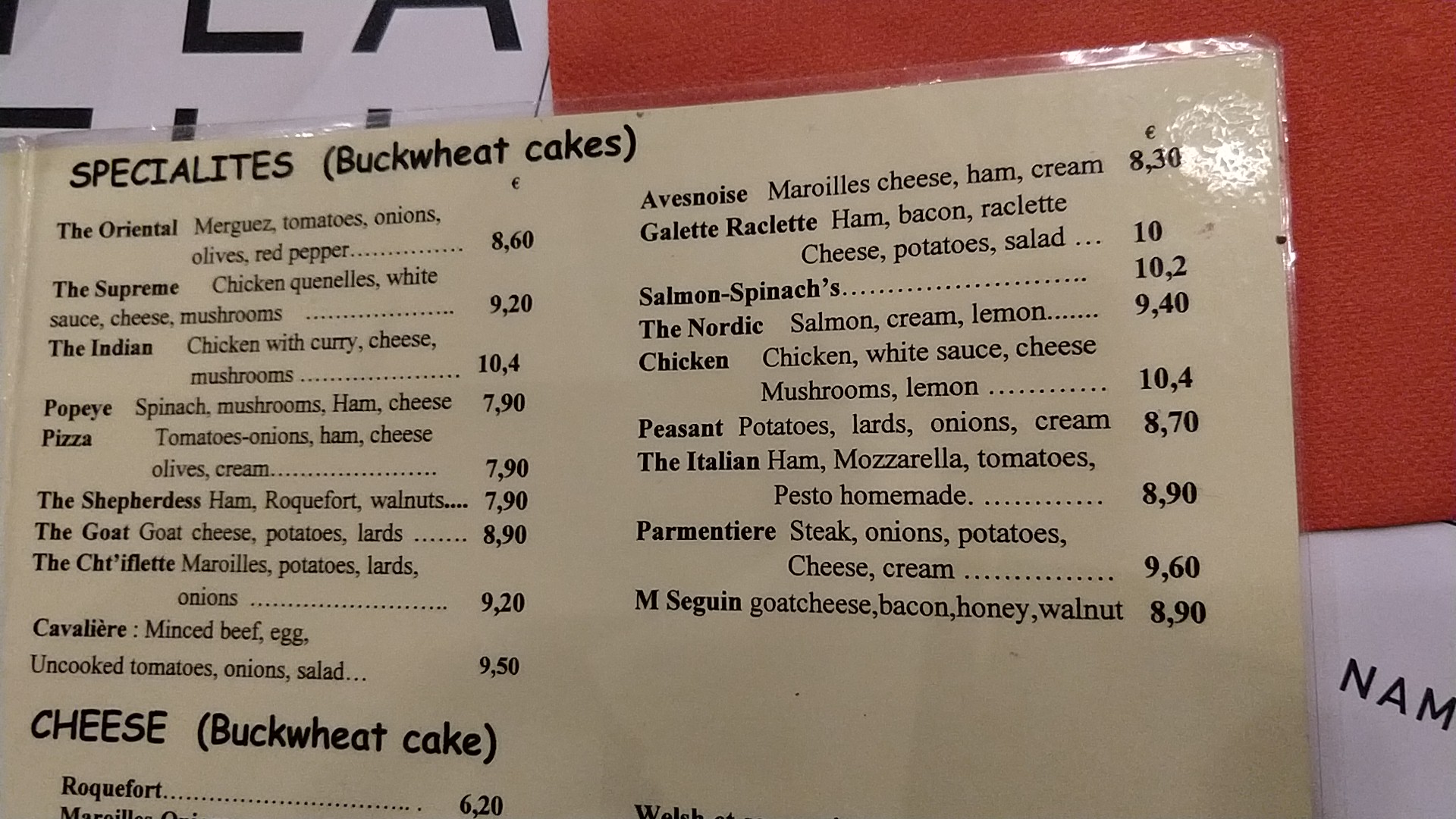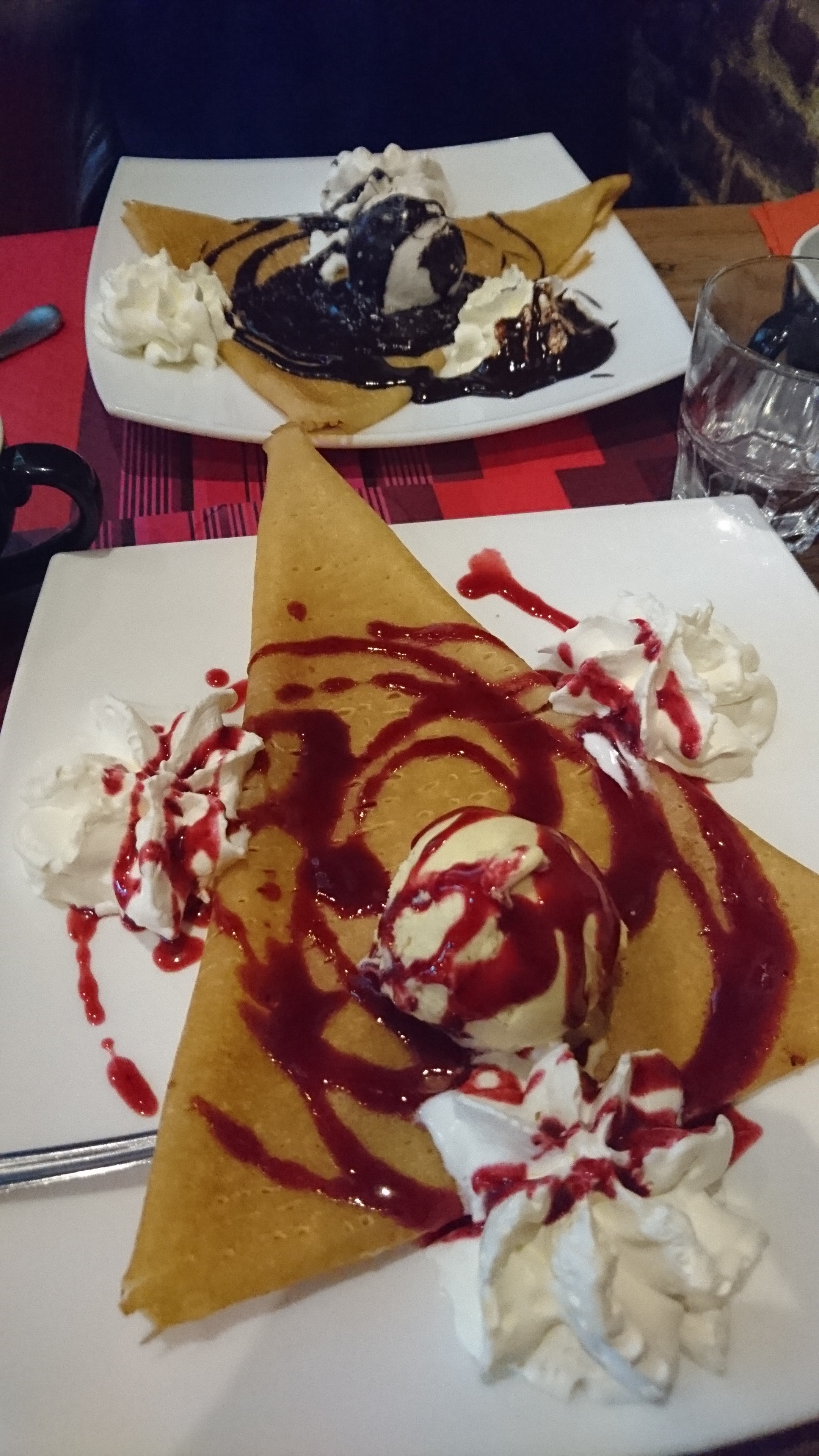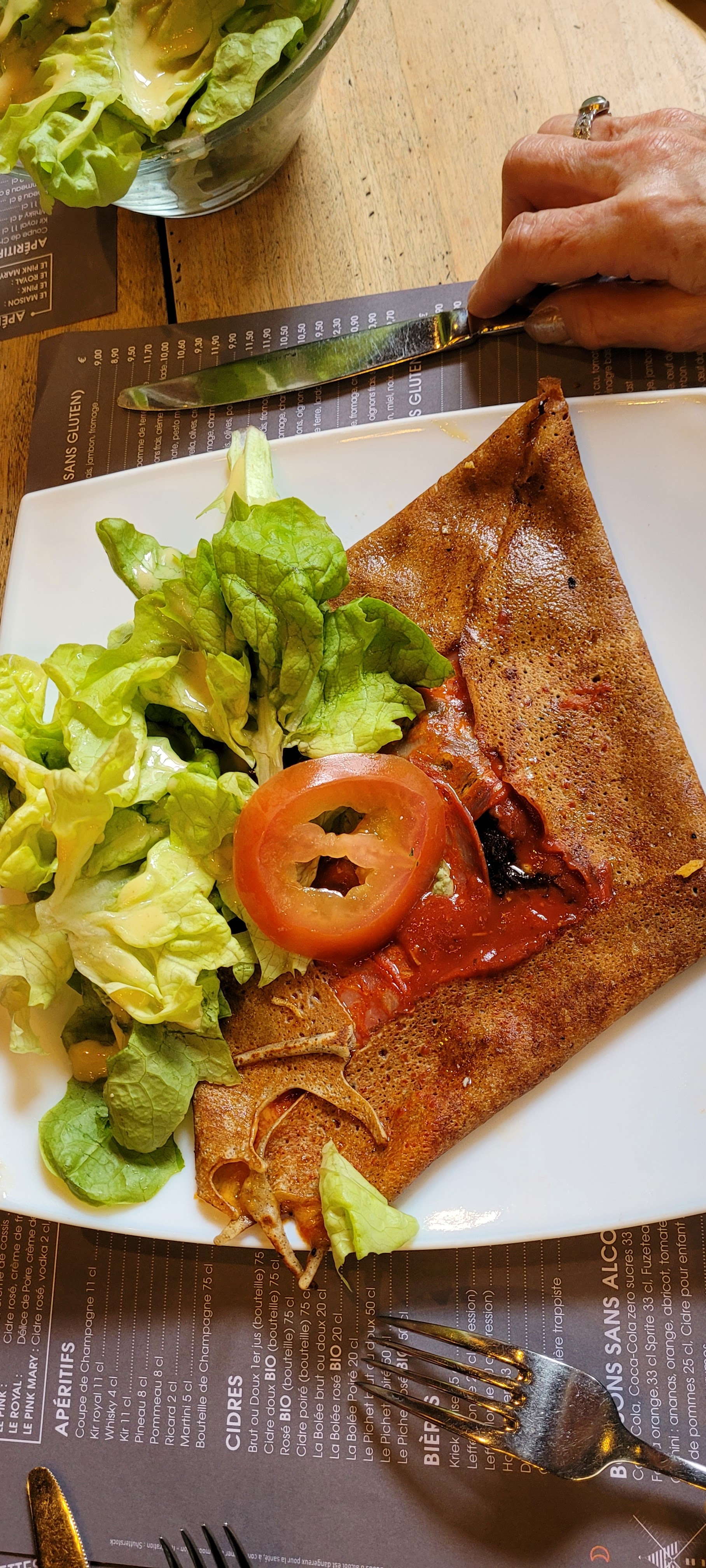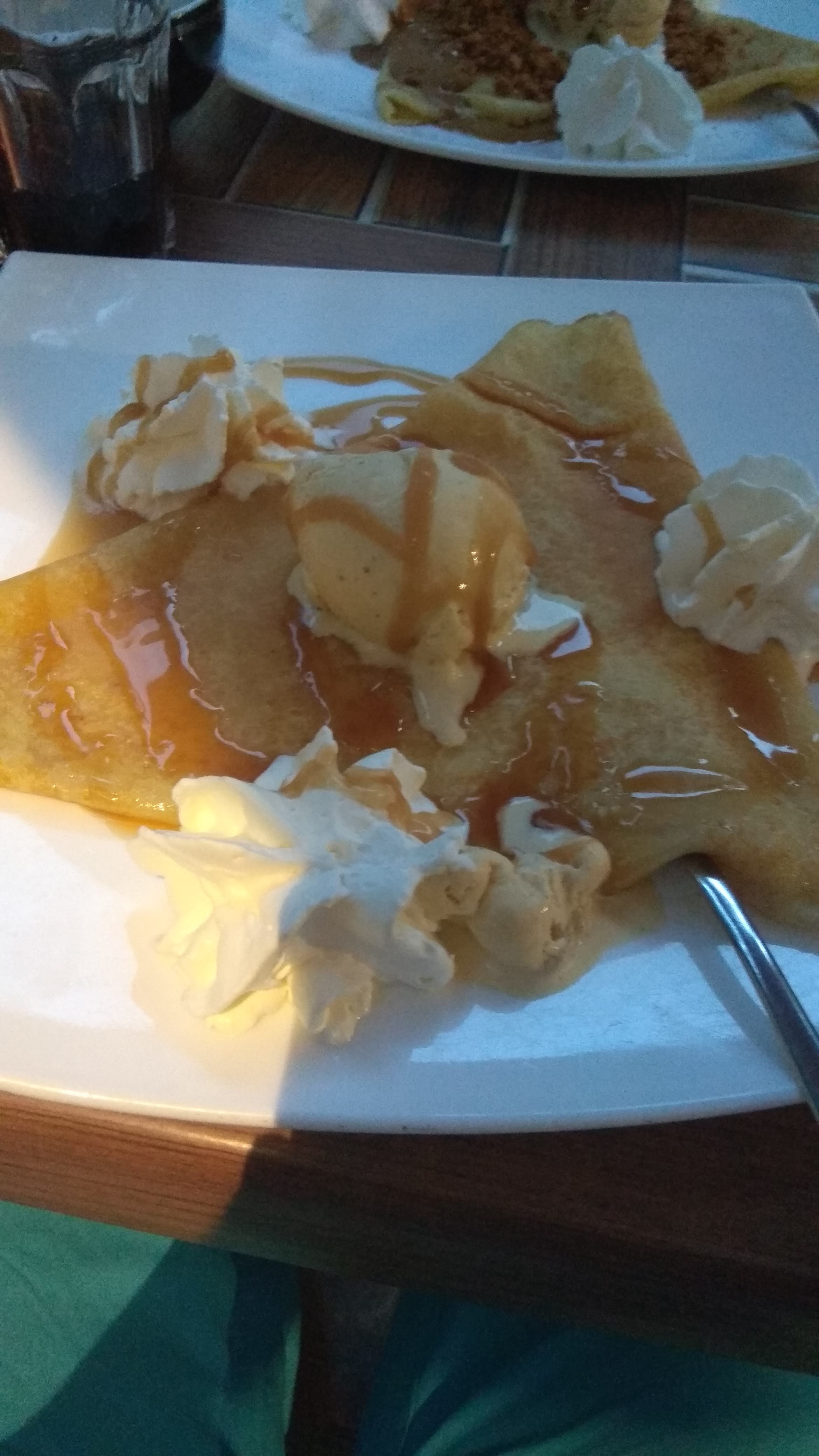 Une crêperie ne peut prétendre à s’appeler ainsi, si les galettes, et non les crêpes, ne sont pas faites uniquement de sarrasin. Seul les bretons comprendrons, et visiblement cette crêperie ne leur fait point honneur. Jugez-en par vous même, le cliché parle de lui même. Nous avons mangé ce soir des crêpes salées et non point des galettes. Bye.