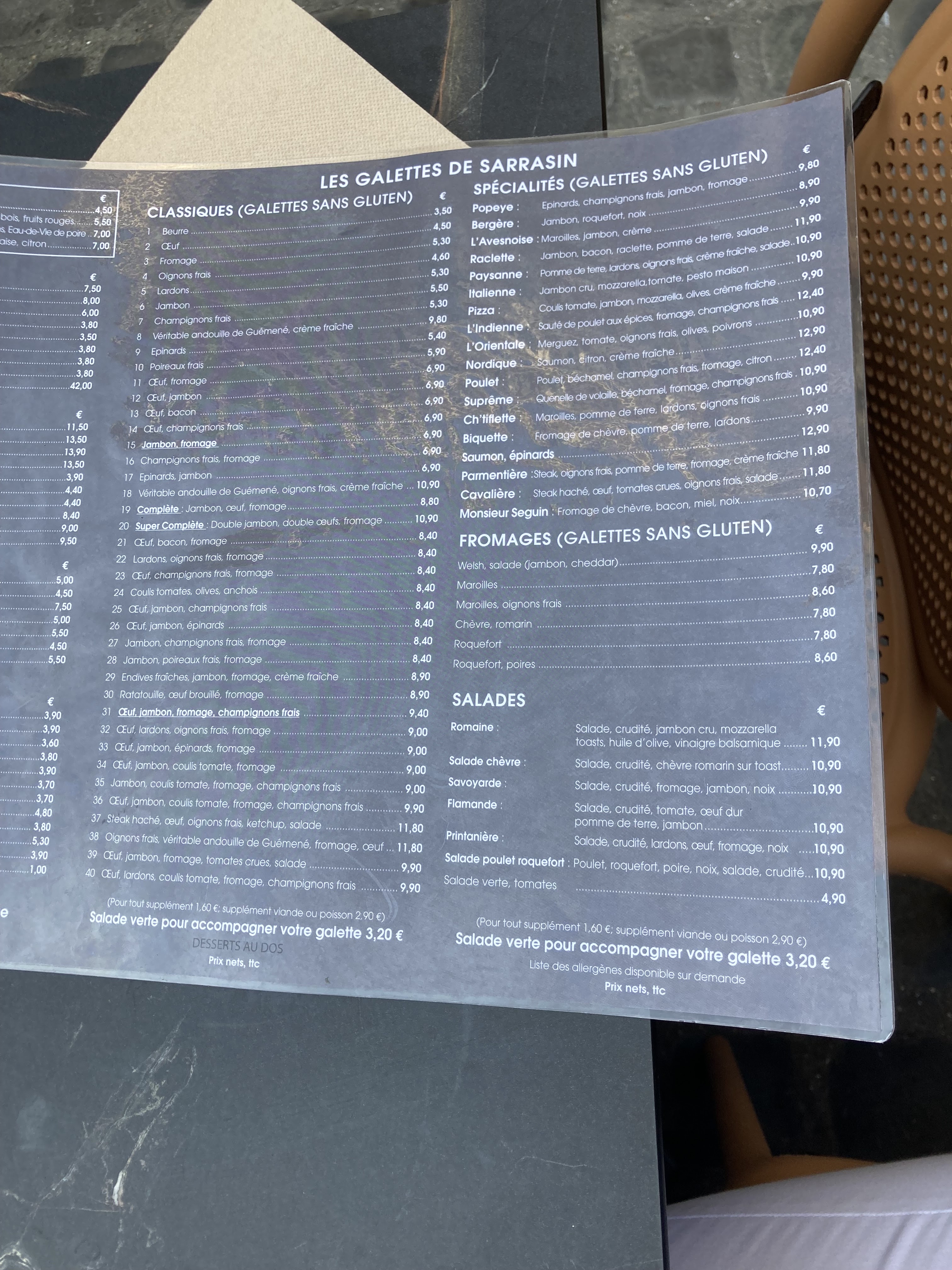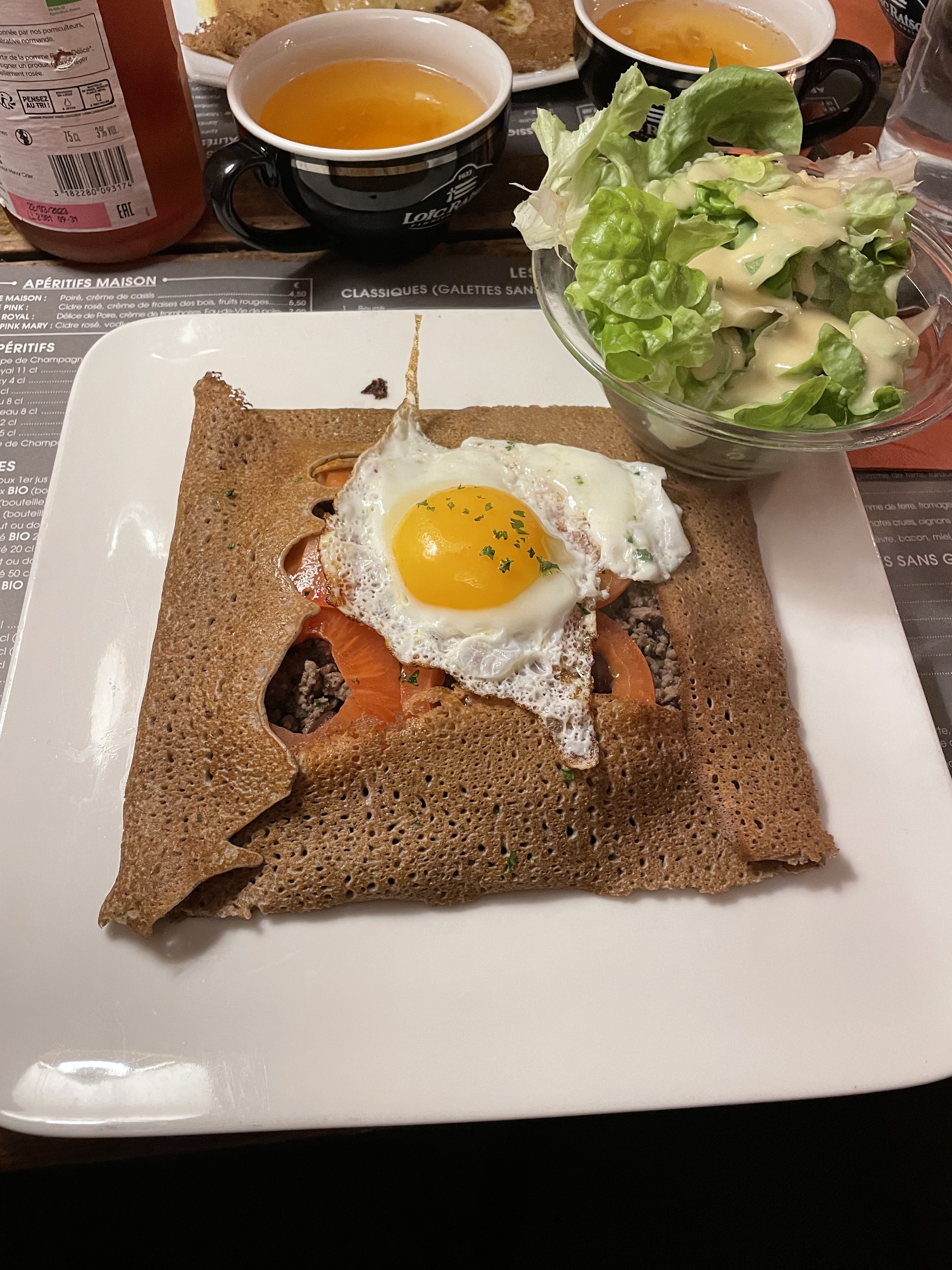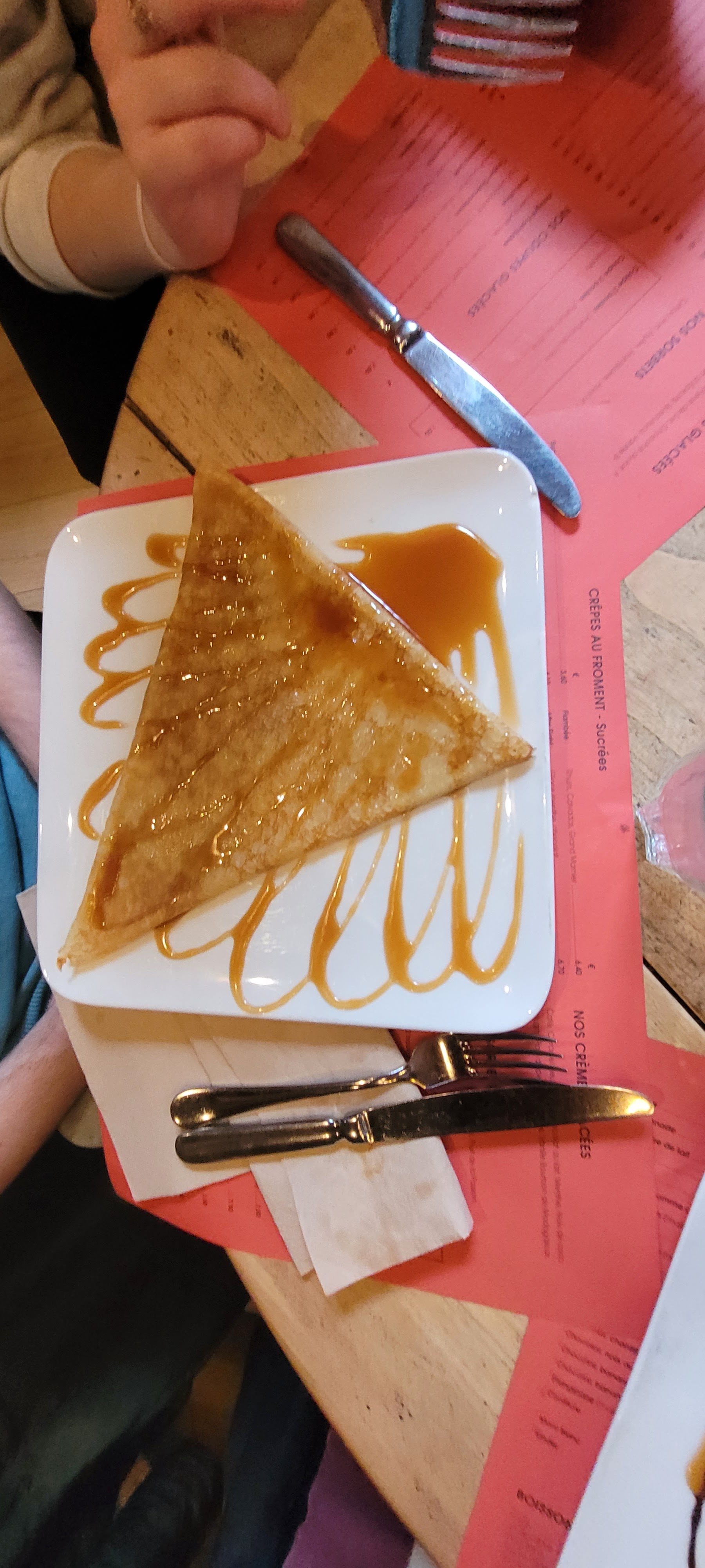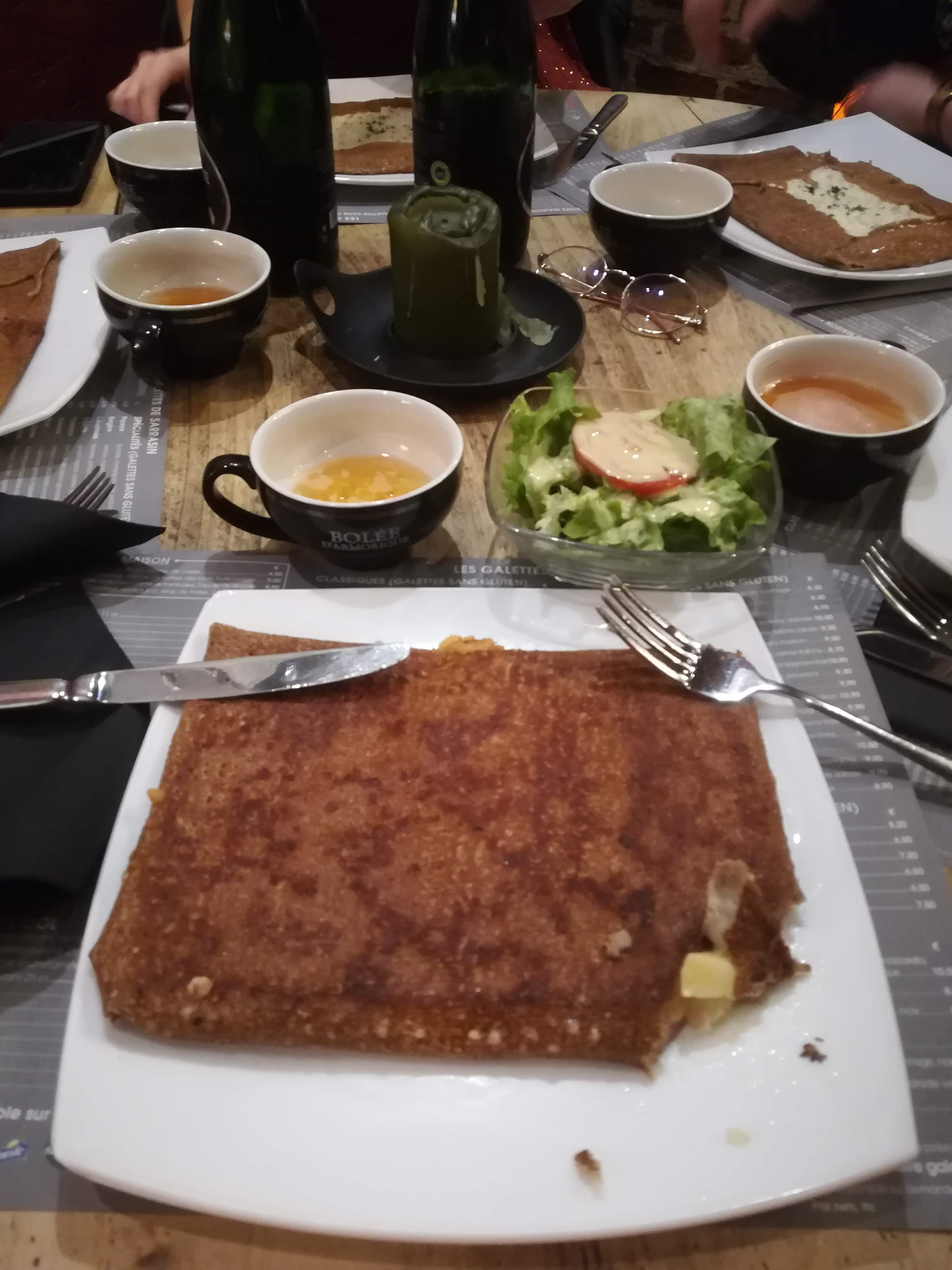 Nous avons mangé un samedi midi à ce restaurant avec mon mari et ma fille. Nous avons passé un bon moment. Je vous conseille de faire comme nous et de réserver une table si vous voulez être sûr d' en avoir une. Le service était attentionné. Les crêpes étaient bonnes. Les tables un peu trop proches les unes des autres.