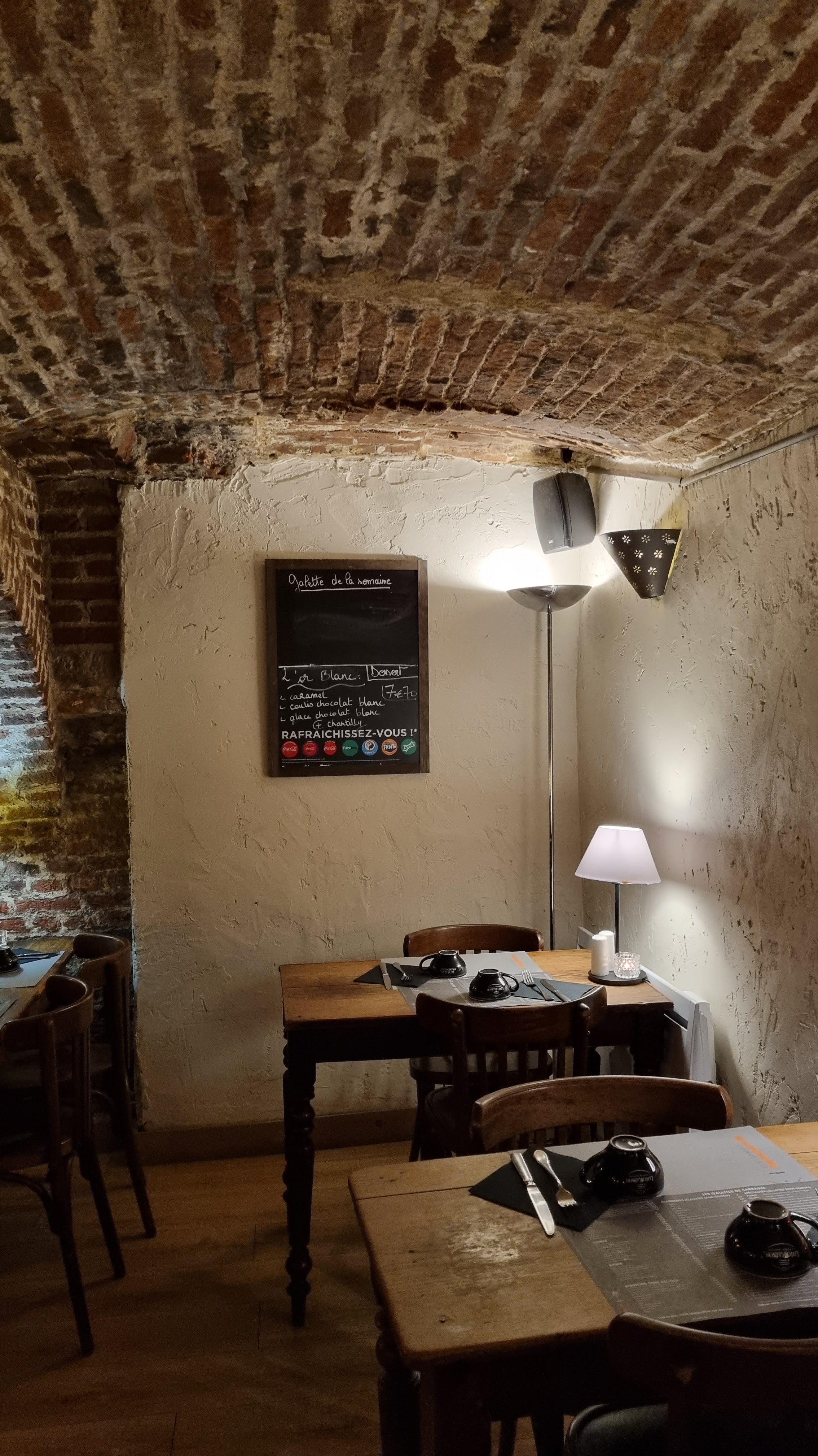 Un régal ! Une magnifique salle sous-sol avec des voûtes en pierre, c'est très typique Une ambiance sympathique et tout de même chic Le personnel est très aimable et serviable La nourriture est vraiment délicieuse !!! Des produits de qualité et frais, nous nous sommes régalés aussi bien en salé qu'en sucré !