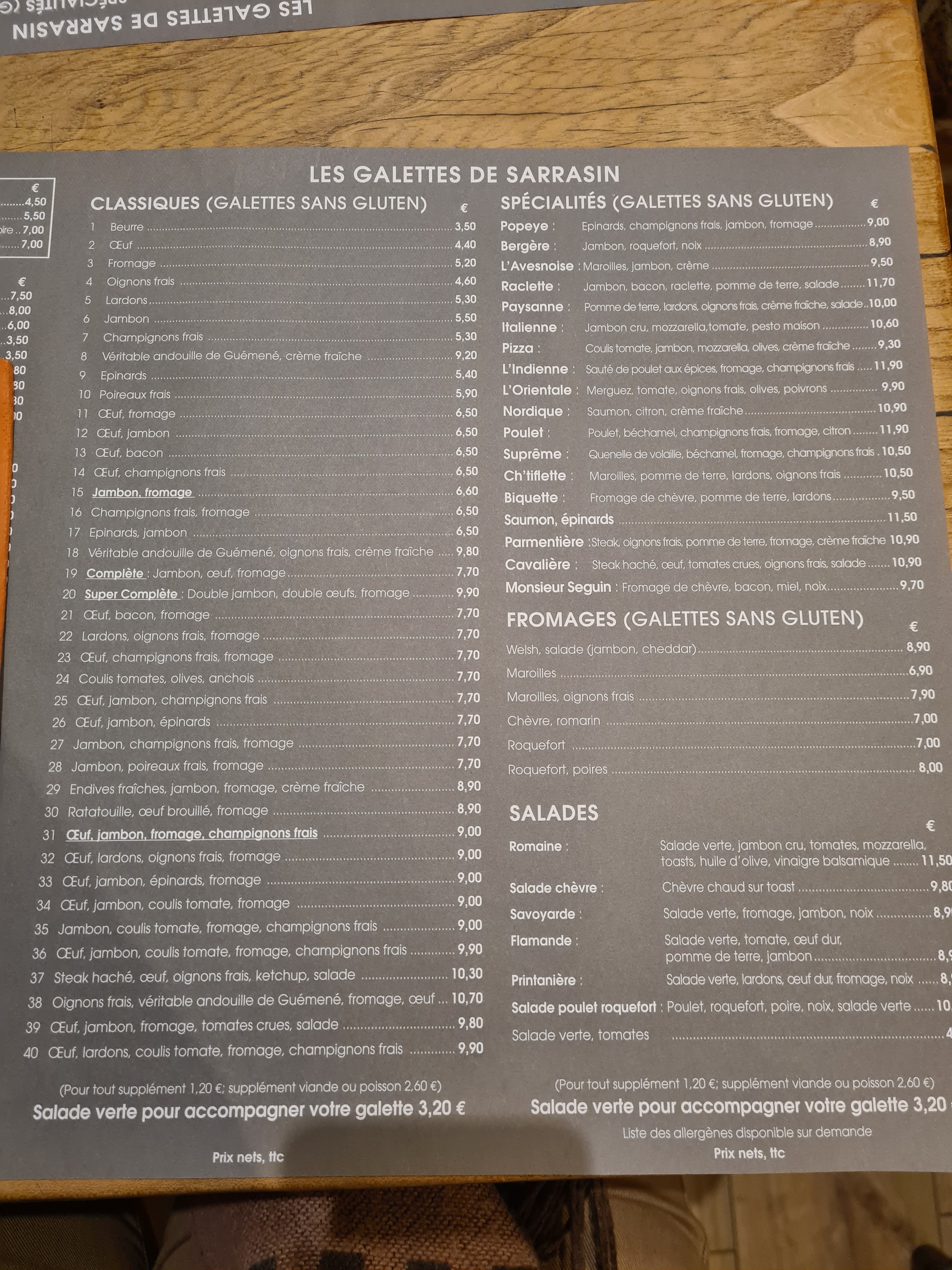 Les galettes n’en sont pas de véritable. La cuisson laisse à désirer. Pas de beurre salé utilisé pour la cuisson. Les cidres viennent de grandes surfaces. Pleins de galettes au choix mais aucunes n’en vaux les détours. A éviter pour les amateurs de galettes