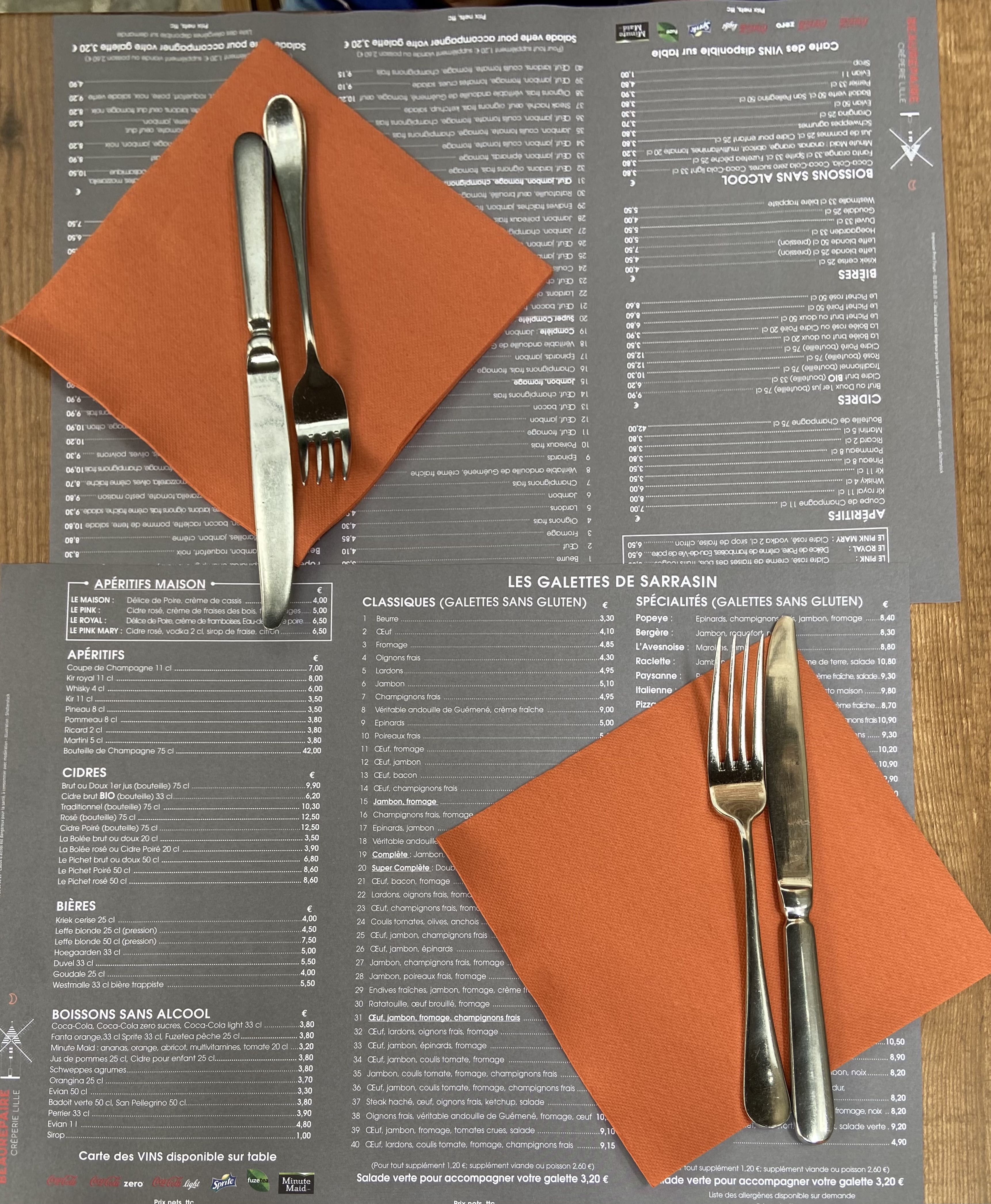 Réservation par tel Arrivée 5mn avant, attente 25mn et toujours pas de verre, couverts menus. Alors que d autres arrivent et sont servis À FUIR On est partis et avons trouvé une autre crêperie à moins de 3mn. Sans regret