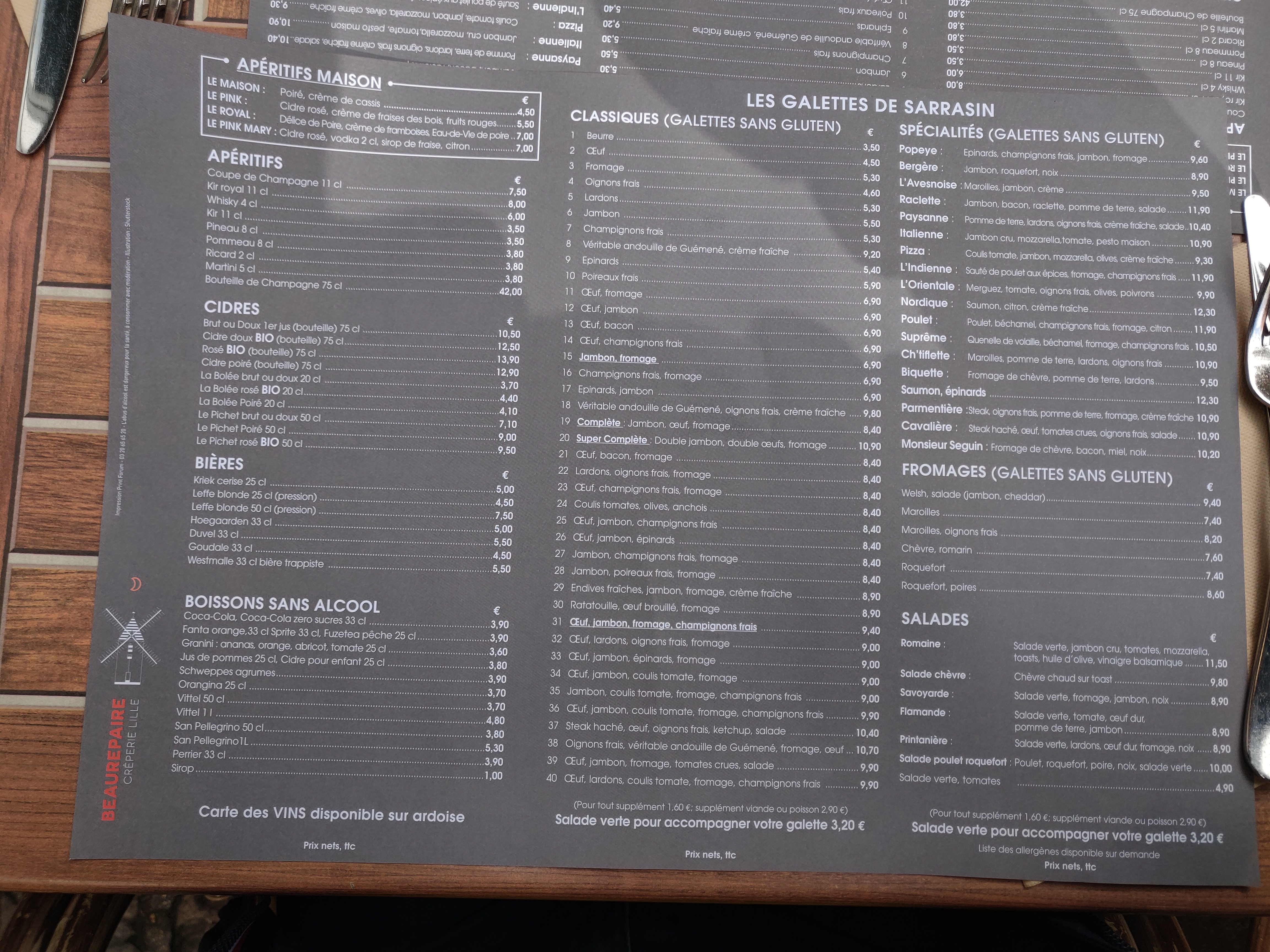 Une enseigne historique sur Lille, un cadre typique, des crêpes bon marché, un service un peu long le midi, mais un personnel agréable et accueillant. Je trouve les crêpes sucrées meilleures que les salées. Le supplément salade a 3,20€( un peu cher pr 1 personne) mais est très bien servi et peu convenir à deux personnes