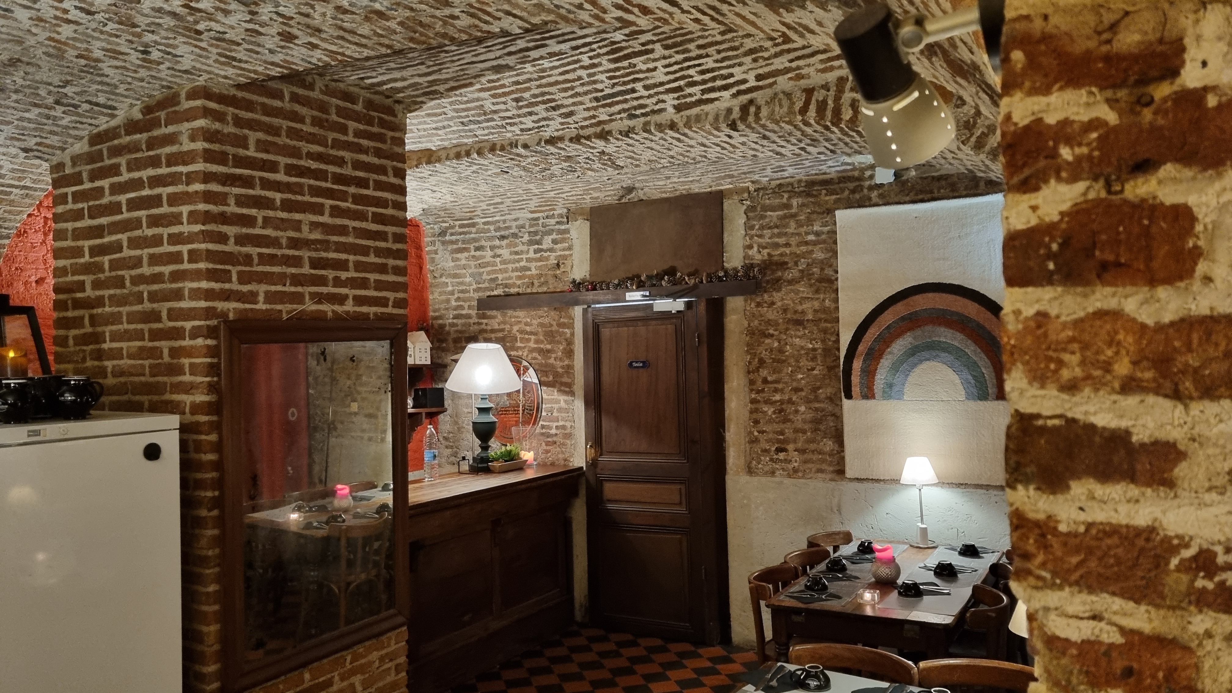 Capacité réduite au niveau de la salle qui ajoute à la convivialité. Il faut toutefois penser à réserver.Les briques et les poutres apparentes donnent du cachet. La galette est de très bonne facture et très bien garnie.