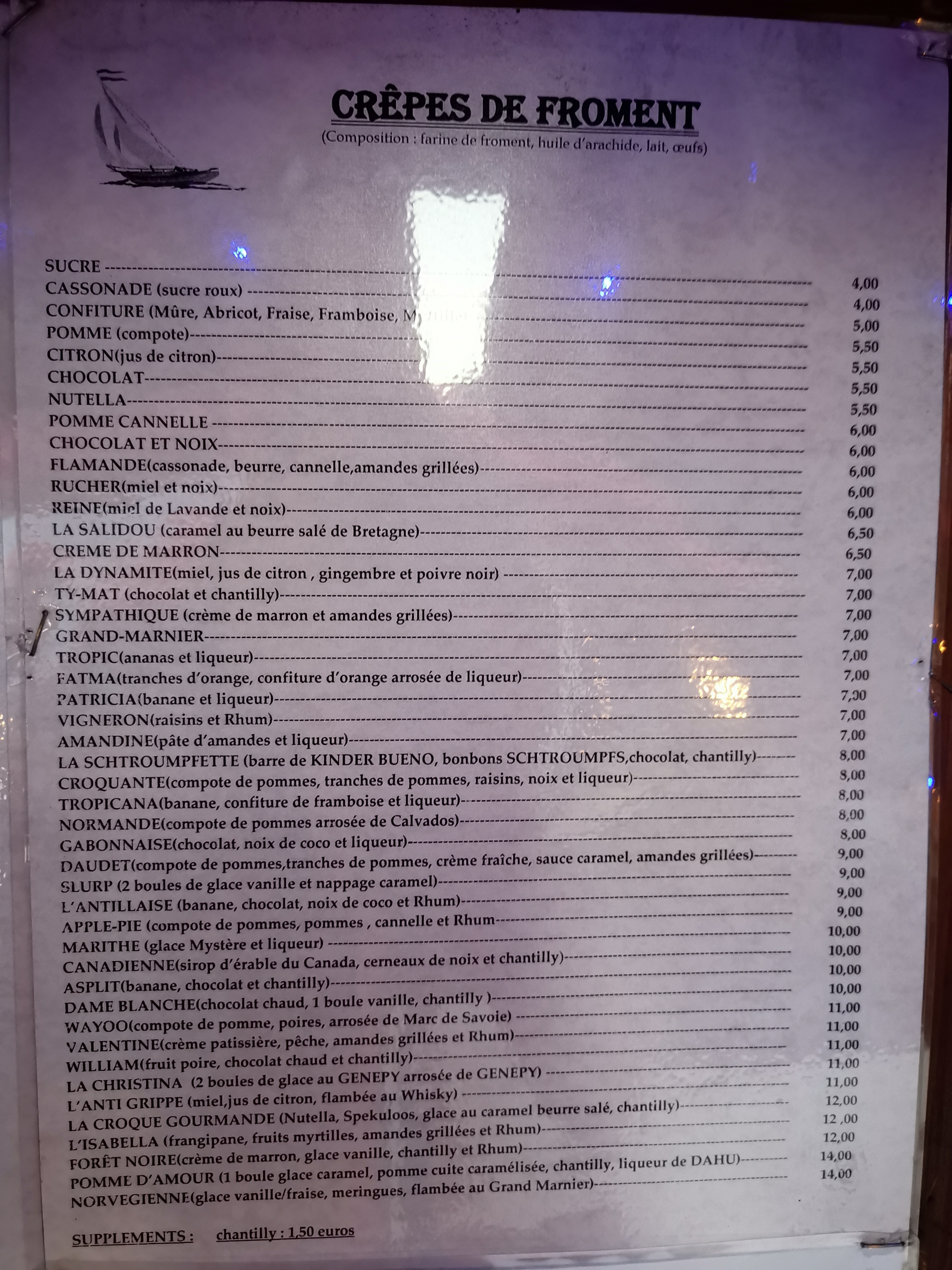 Je me suis régalé à la crêperie bretonne, d'ailleurs j'ai repris dans la foulée une deuxième crêpe par gourmandise.