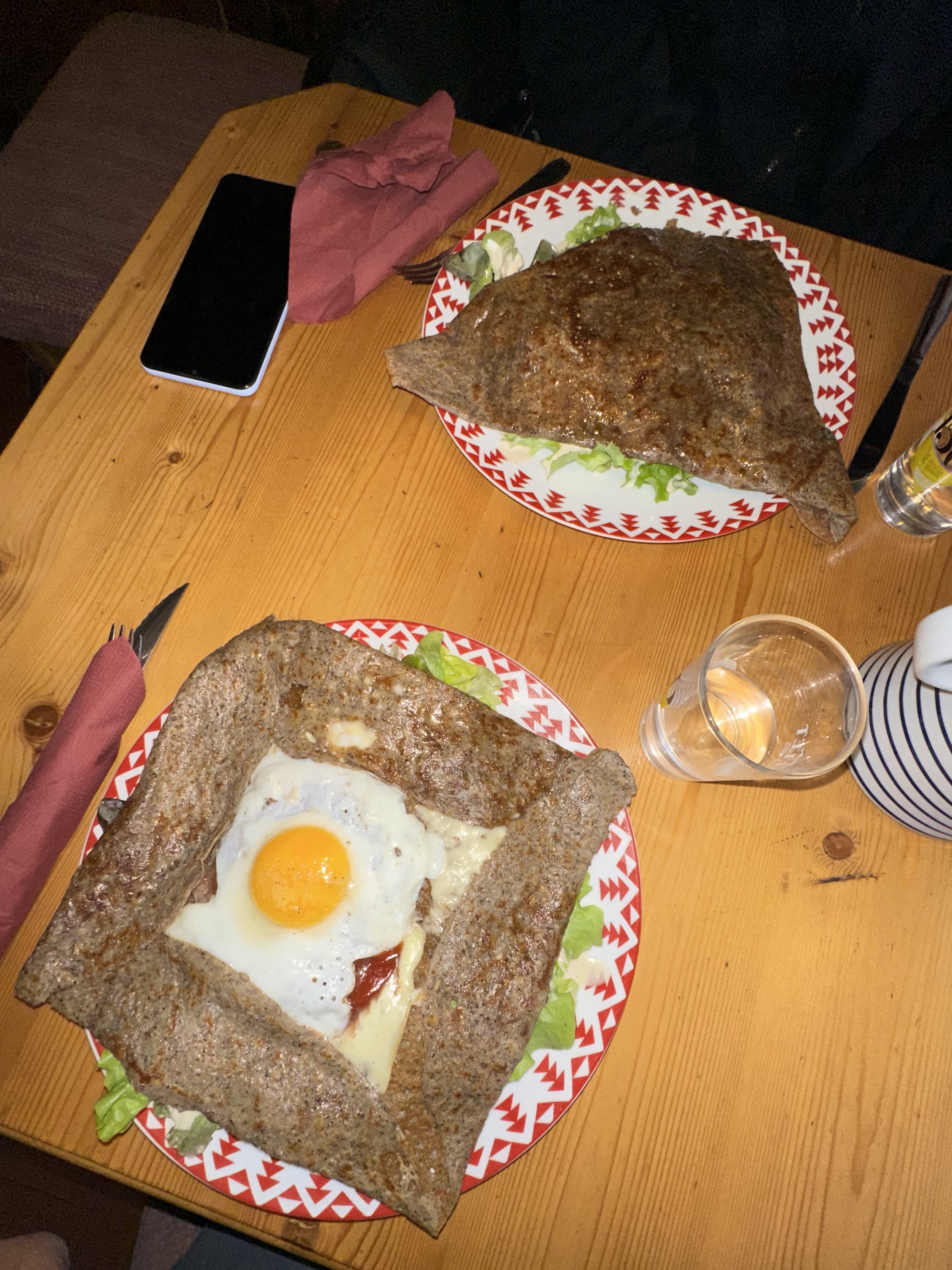 Nous avons passé un bon moment à la crêperie bretonne, les crêpes sont très bonnes, du coup on en a recommandé une deuxième.