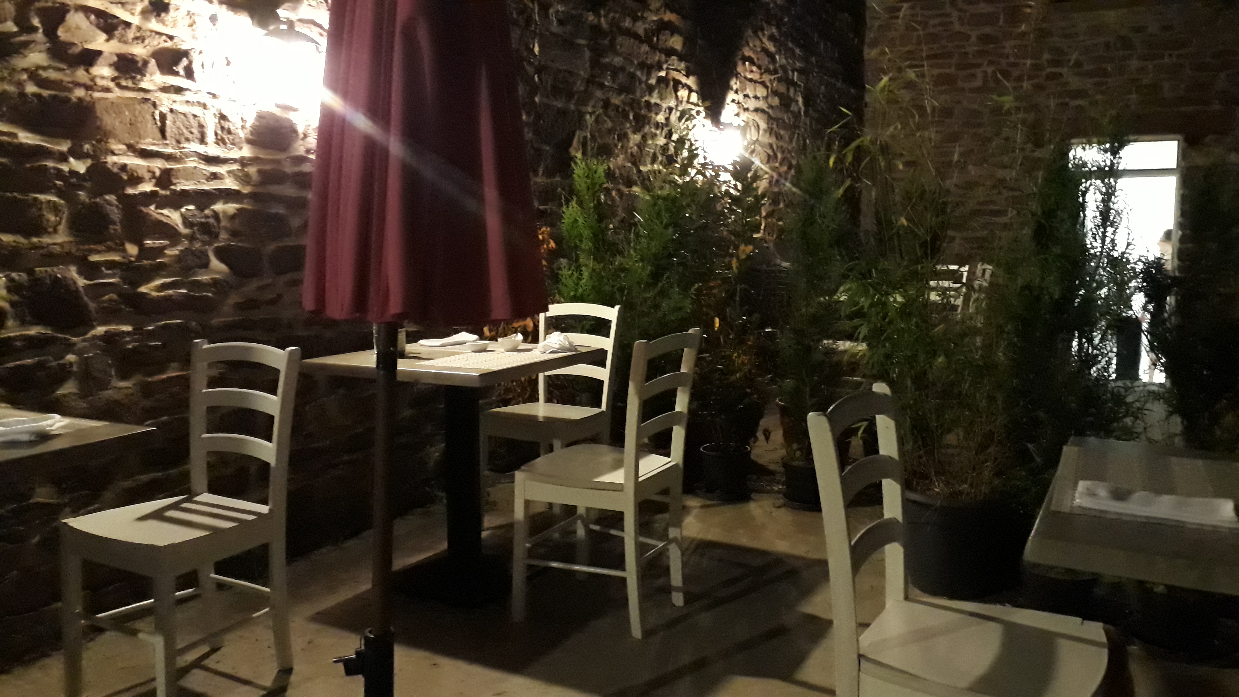 Restaurant réservé la veille pour le lendemain avec précision qu'un enfant en bas âge est à compter. 25 min d'attente, une carafe d'eau apportée en double, 3 tomates cerises et 3 tranches de saucisson et... pas de commande prise. Situés au milieu de la terrasse nous n'étions que visible mais les jeunes serveuses, sans doute débutantes, nous ont évité (???). La table devant nous a commandé et bu son apéritif, commandé ses plats; la tables derrière nous a également commandé ses plats. Mais nous toujours rien avec des passages et repassages sur la terrasse des serveuses. Quand est arrivé un couple au bout de 20 min sur la terrasse: installés de suite, on leur a servi les amuse-gueules, leur carafe, distribué la carte et pris leur commande dans la foulée. Cela a été la goutte d'eau qui a fait débordé le vase. Rajouter à cela l'enfant qui commençait à réclamer à manger! Nous avons laissé 5 min de plus mais les serveuses tournaient autour de la terrasse sans jamais venir à notre table: nous avons choisi de partir. Ma femme a signifié à l'une des serveuses que nous partions car c'était réellement trop long: elle a juste proposé de nous servir de suite puis nous a dit au-revoir!!!^^ J'ai pour ma part sollicité l'un des cuisinier pour lui demander de voir le/la responsable : il a semblé embêté puis m'a dit elle arrive. Nous dirigeant vers la sortie elle n'a eu d'autre mots que de me dire qu'elle doutait que j'ai attendu aussi longtemps (je lui ai donc montré l'heure à laquelle nous étions arrivée et l'heure actuelle), qu'elle était rapide pour faire une galette pour le petit de suite et enfin qu'il ne fallait pas le prendre comme cela... La phrase qui a fini d'achever la soirée. Bilan: Service : 0/20 Accueil mitigé Prise en compte du client: néant. Nous ne sommes pas des touristes mais bien des habitants du coin qui cherchions une adresse pour y dîner sereinement et y revenir. Nous n'avons pas manger, nous ne reviendront pas et nous ne ferons pas une bonne publicité autour de nous.