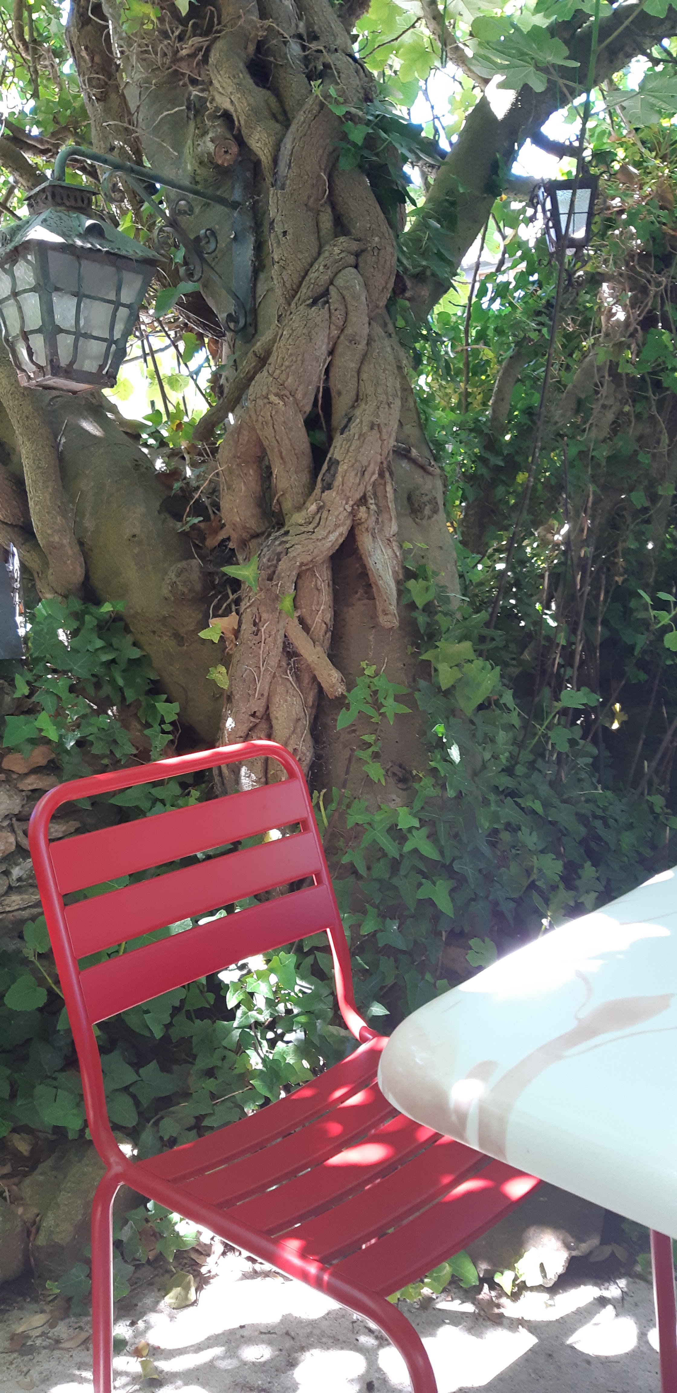 Super terrasse ombragée pour déguster la galette et la crêpe