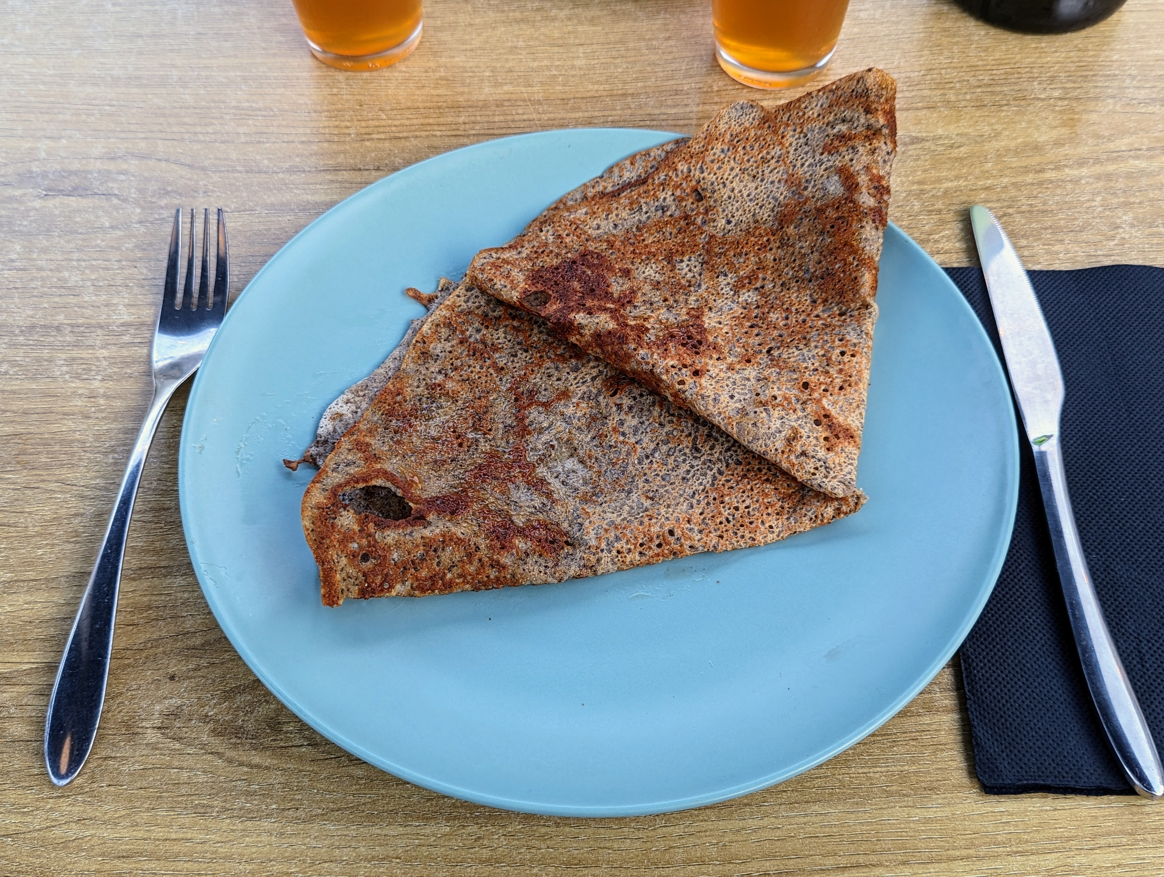 Nous étions venus une première fois en milieu d'après-midi pour prendre une crêpe sucrée mais apparemment ils n'en servent pas, un comble pour une crêperie en Bretagne. Nous sommes donc revenus un midi. La serveuse était très gentille, le service rapide et les galettes sont bien croustillantes !