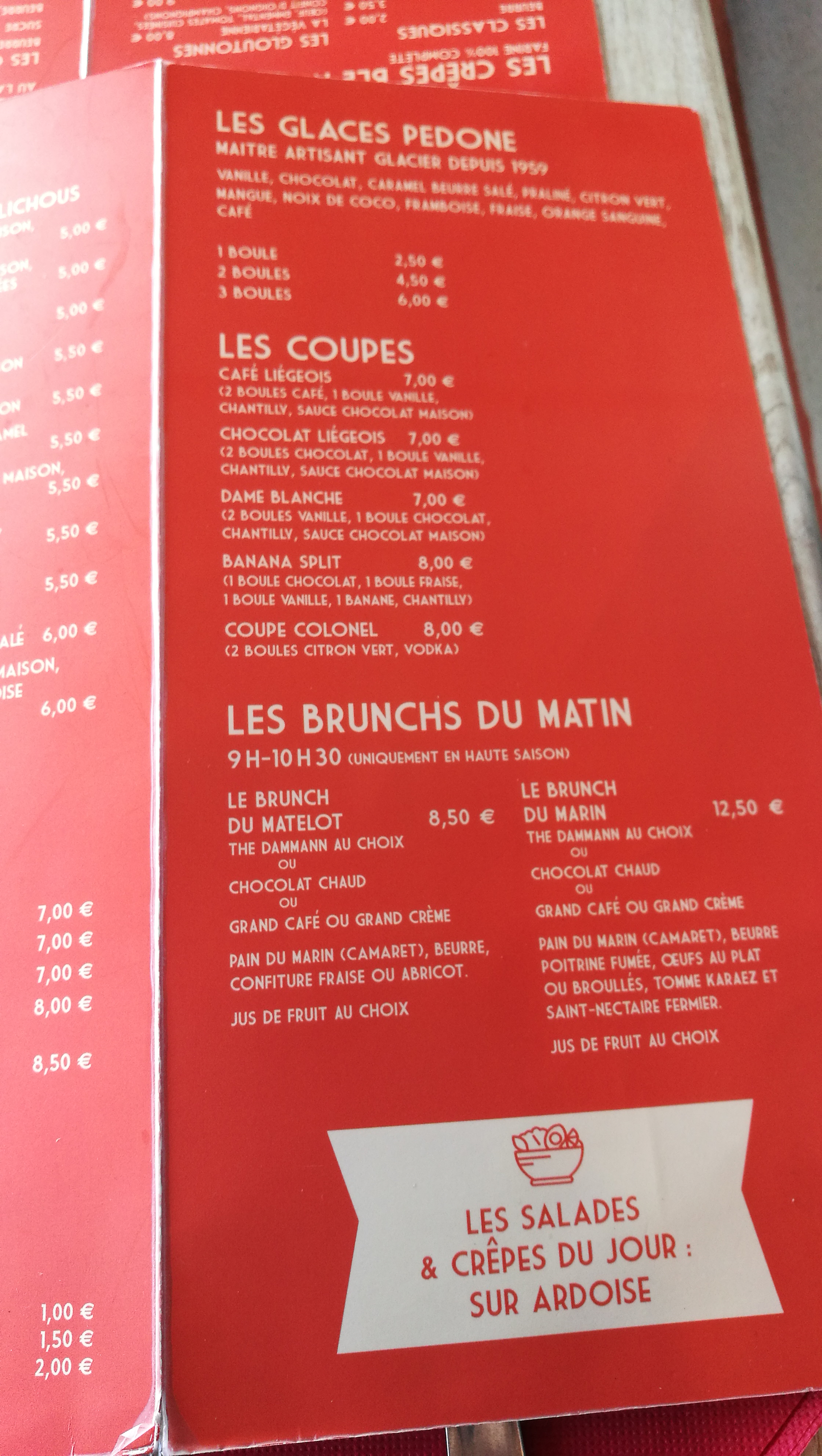 Les galettes salés ainsi que les crêpes sucrés sont incroyables, un large choix sur la carte. Service rapide. Je recommande vivement ! De plus la vue sur le port n’est pas négligeable !
