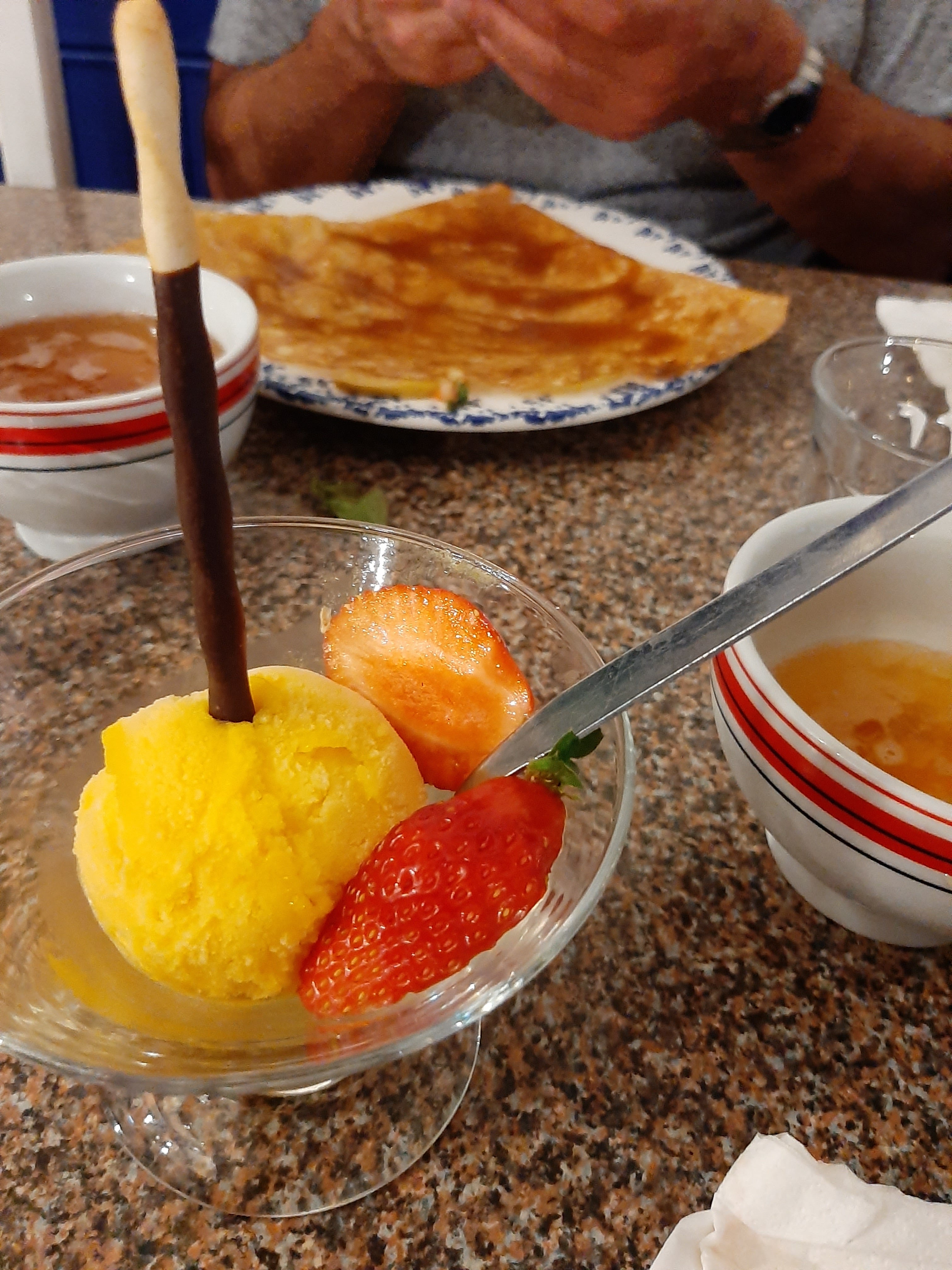 Nous avons très bien mangé. Les crêpes étaient succulentes, bien garnies et variées.