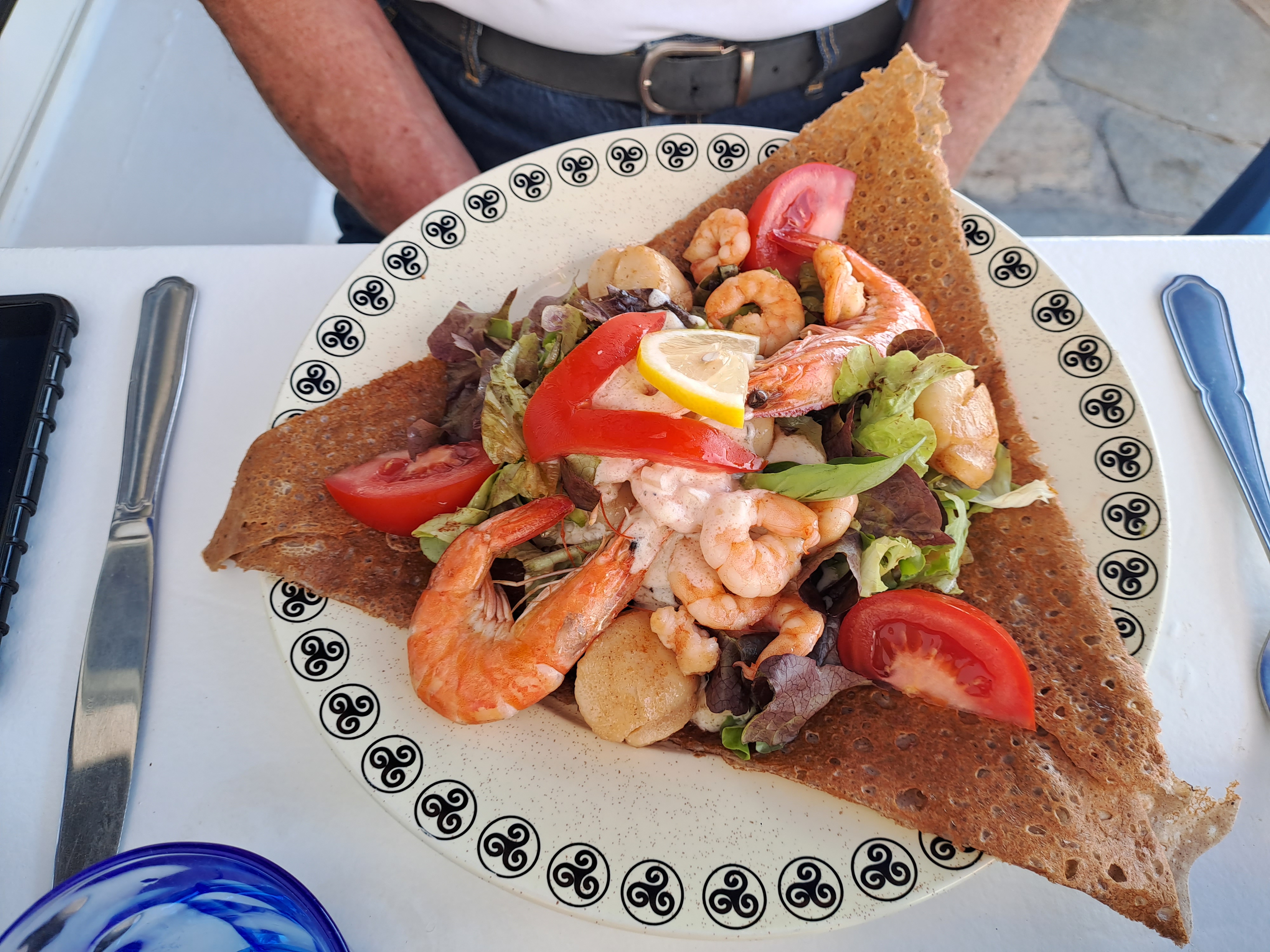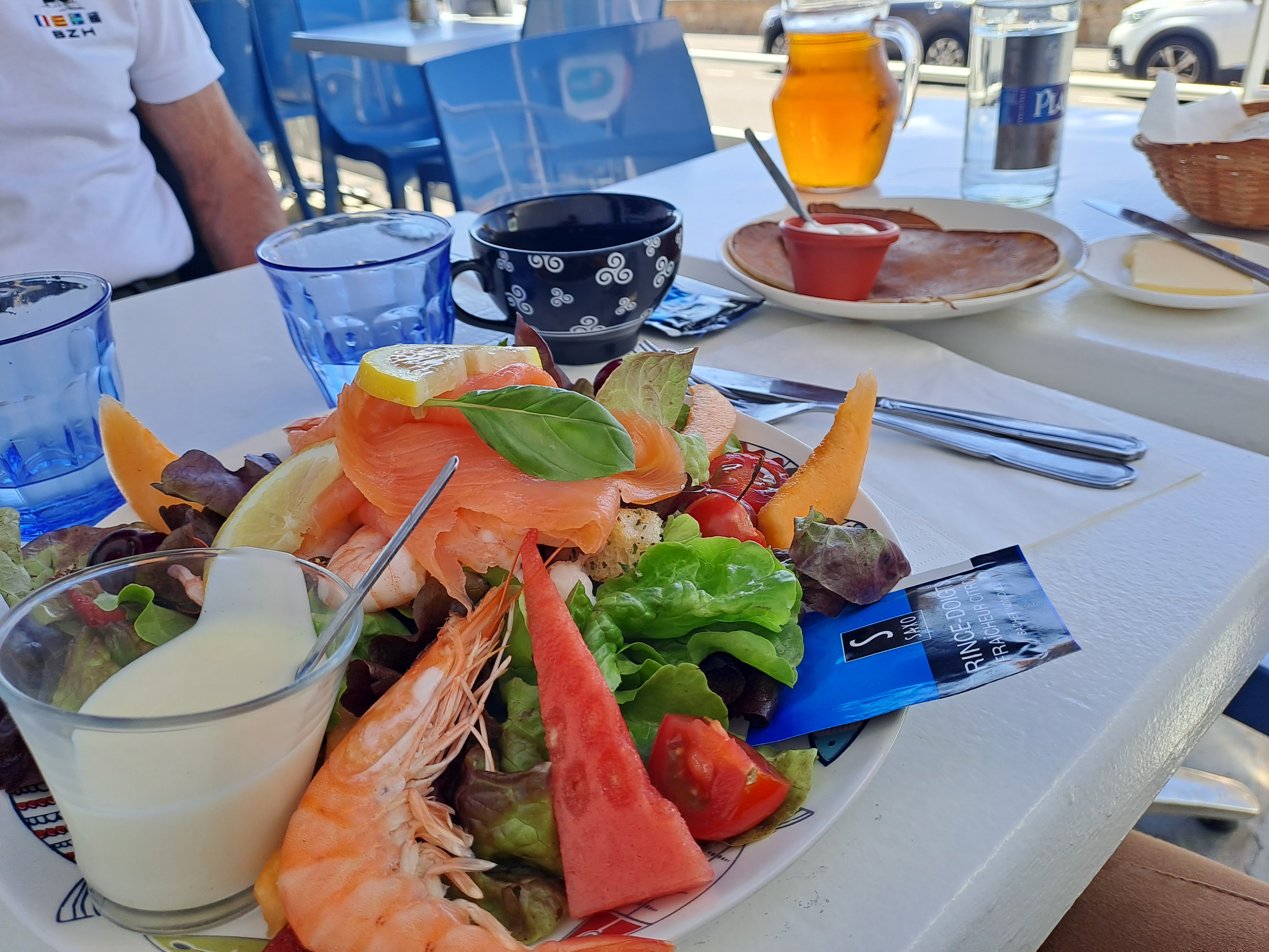 Crêpes excellente et copieuse. Service rapide. Personnel très agréable et très belle vue sur l'océan. Très bon plan. Je recommande.