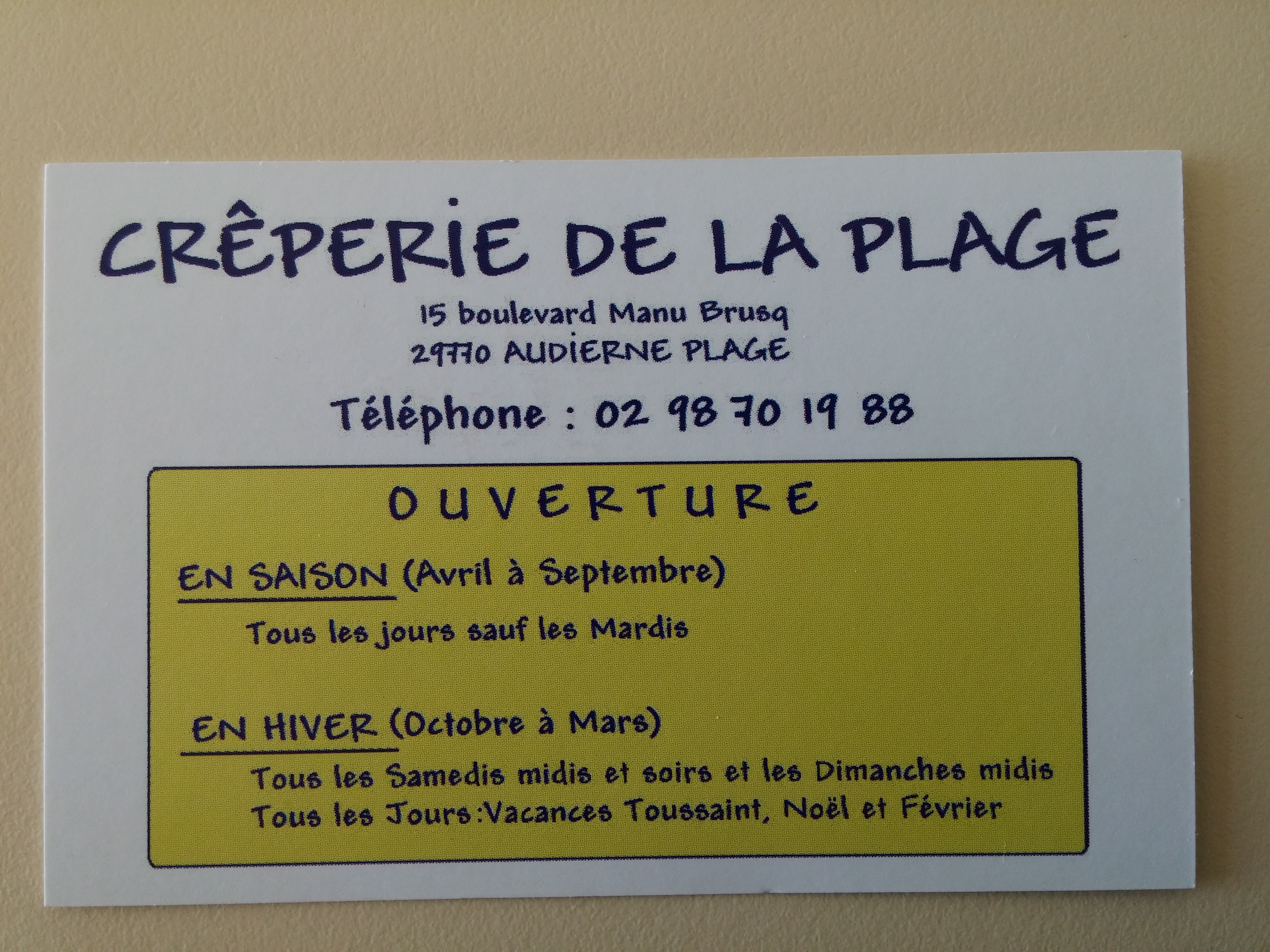 Venant à Audierne depuis 33ans, la pause à la crêperie de la plage est un incontournable de nos vacances depuis son ouverture, il y a 28 ans (ça ne nous rajeunit pas 🙂). Les assiettes sont généreuses, la vue est fantastique et le patron est très sympathique. Merci encore pour tous ces souvenirs