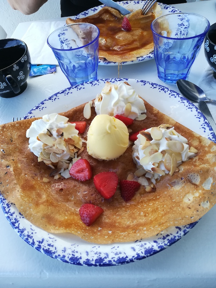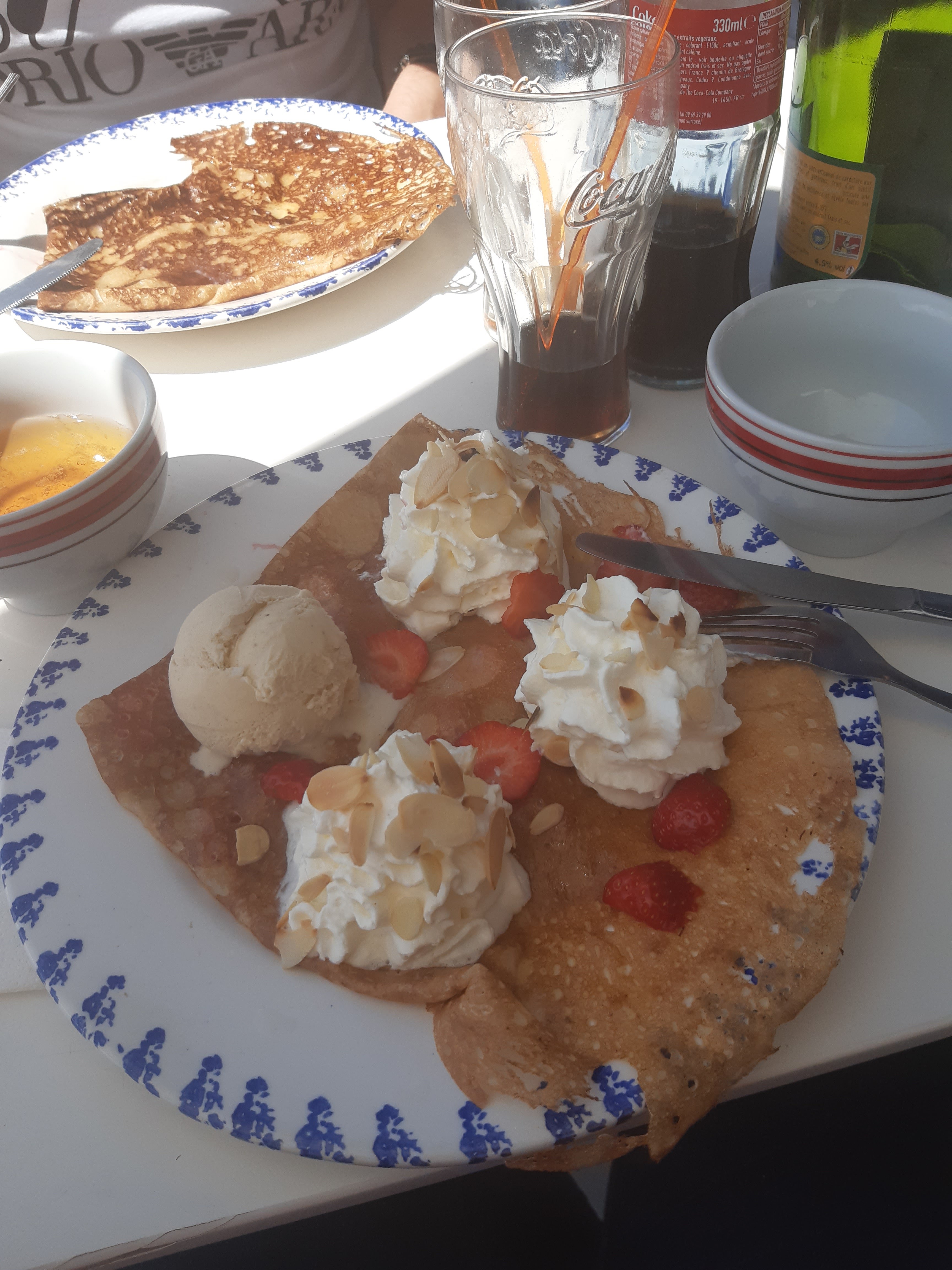 Excellentes crêpes de blé noir et crêpes dessert et une vue magnifique sur la plage. Ma maman et moi avons passé un très bon moment pour son anniversaire. Je ne sais pas pourquoi on n'est pas venu depuis presque 30 ans, mais en tout cas on reviendra - là on n'attendra plus 30 ans! :)
