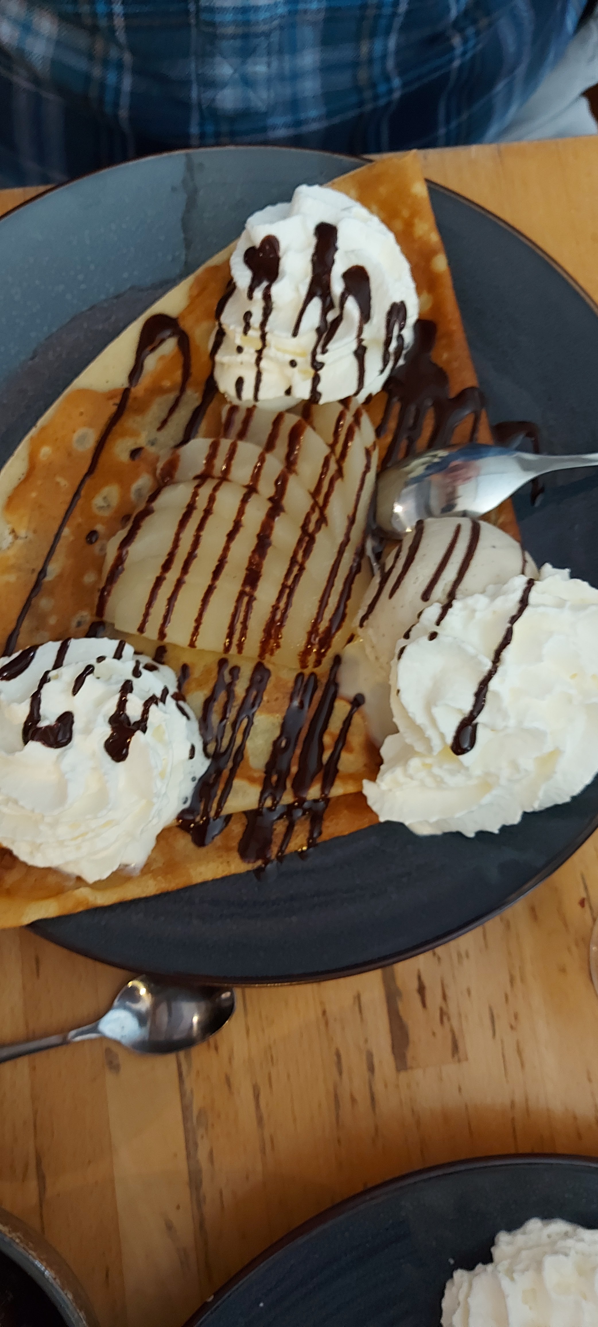 Crêpes excellentes et beaucoup de choix proposés . Service rapide et personnel aimable je recommande +++ En plus ils ont accepté notre petit Toutou 🥰