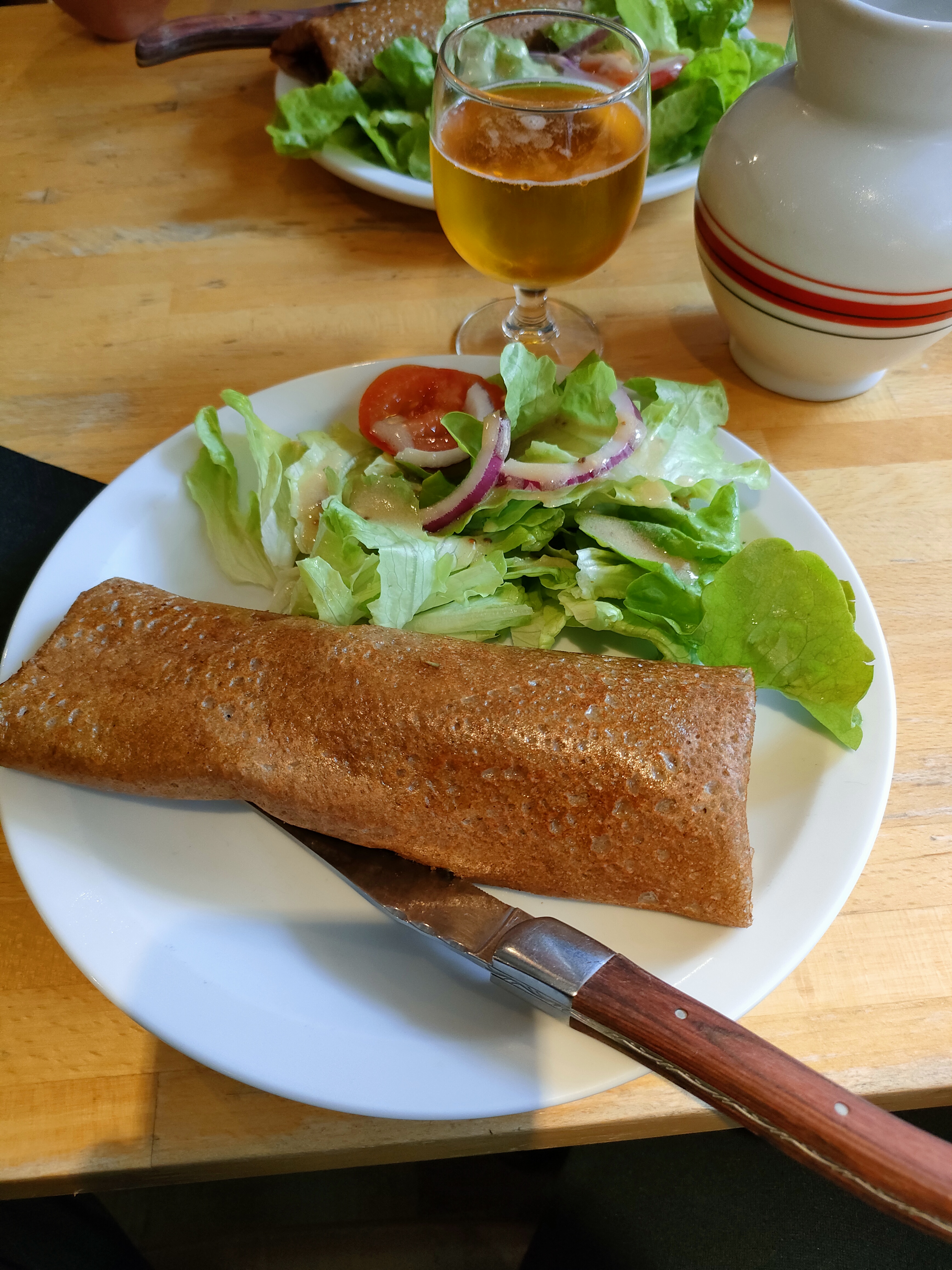 Déjeuner un samedi midi dans cette crêperie qui accepte les déjeuners tardifs (nous sommes arrivés à 14h). Nous avons pris des classiques comme la galette saucisse et une galette andouille. C'était correct sans plus. A noter que le service était professionnel.