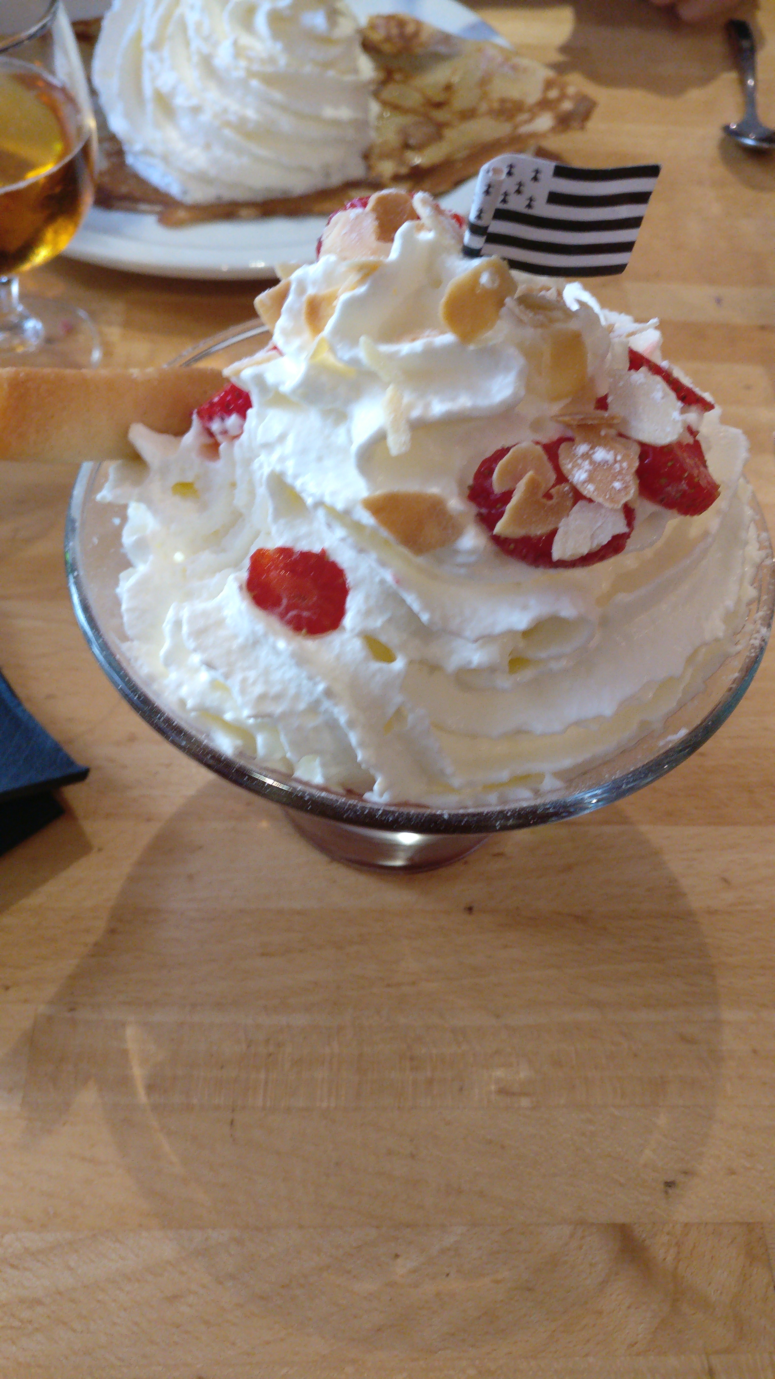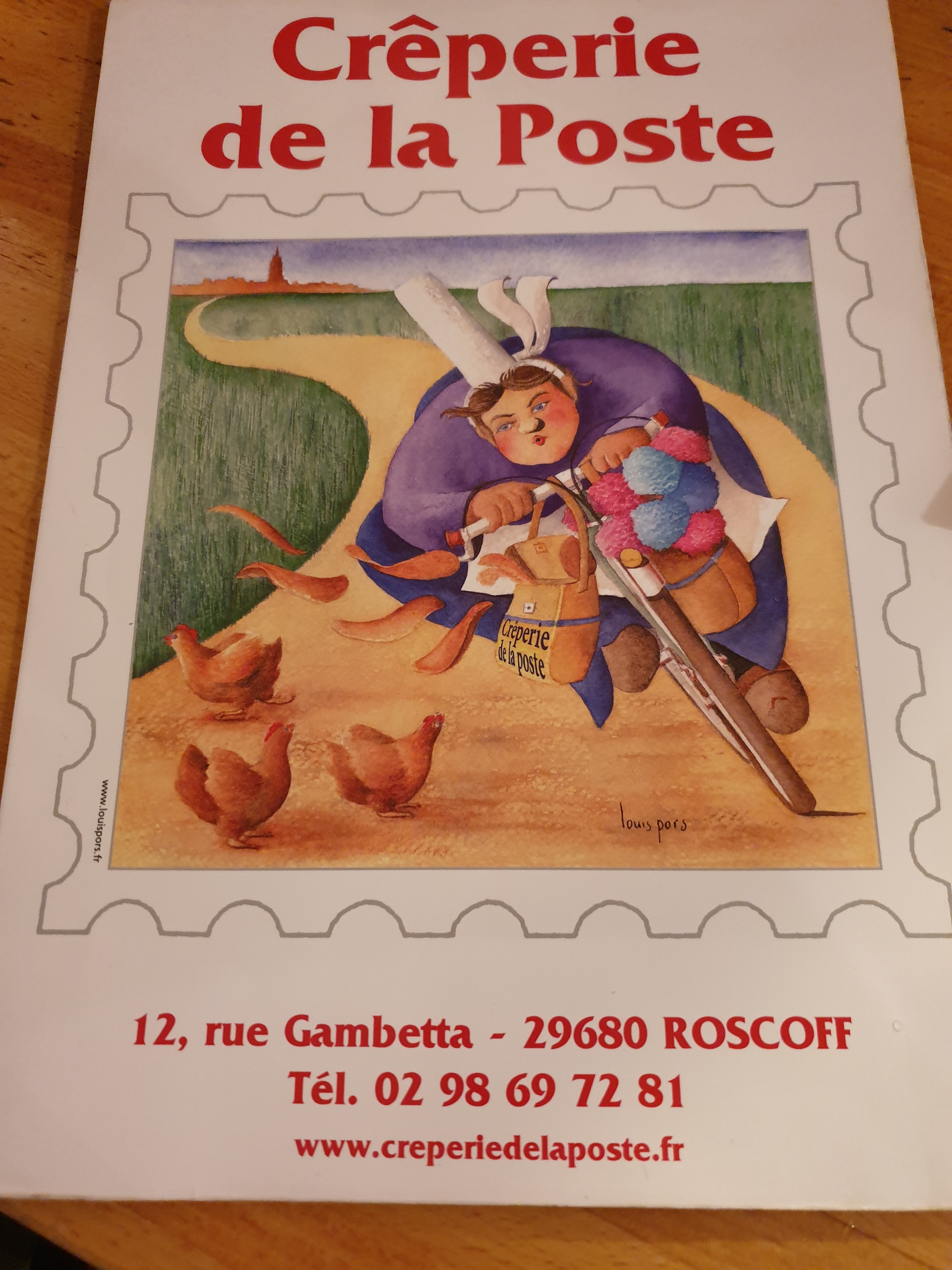 Chaque visite à Roscoff se finissant à la Crêperie de la Poste, cette année n'a pas fait exception. Malheureusement, cette année à été très décevante : rien à dire sur les galettes, elles étaient très bonnes ; par contre, les crêpes beurre sucre : réchauffées, donc dures et... sans beurre ! Et l'assurance du serveur et des cuisines ne changeront rien à ce fait, le serveur ayant même reconnu qu'elles étaient différente des autres crêpes beurre sucre qu'il servait... Nous ne reviendrons pas, dommage.