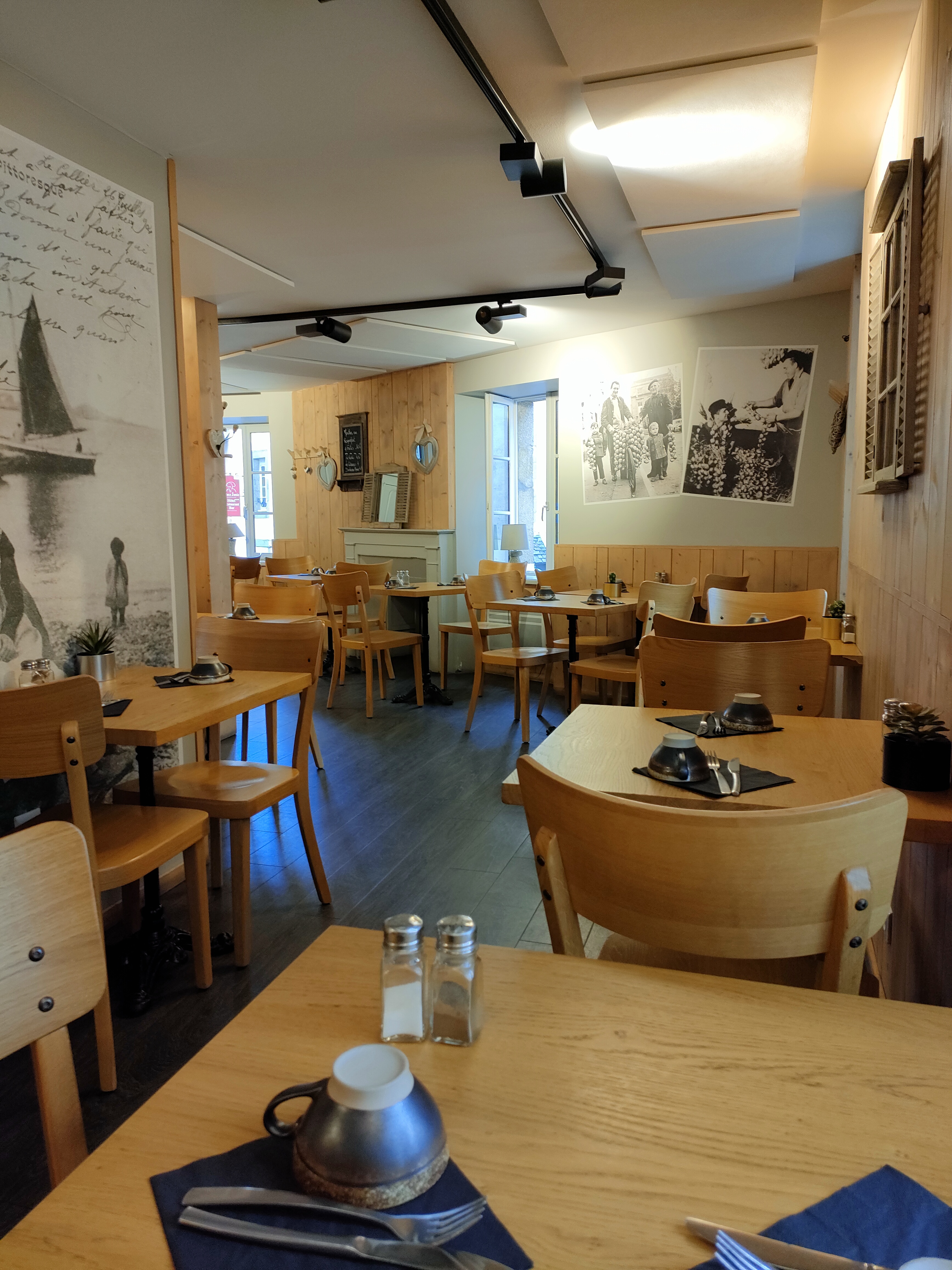 Bonne crêperie, dans un bâtiment en pierre et poutres, cosi / chaleureux. Je recommande la galette artichauts, la crêpe frangipane, délicieuse ! Petite déception pour les frites (semblent surgelées), et la galette forestière (la crème n'a pas beaucoup le goût de crème ; on dirait une préparation toute faite). Le cidre a la bolée est très bien. Bref, c'est bon, mais il faut bien demander au serveur des précisions pour ce qui est frais et maison, ou ce qui est déjà préparé. Allez, encore un petit effort pour avoir 5/5 ! ;)