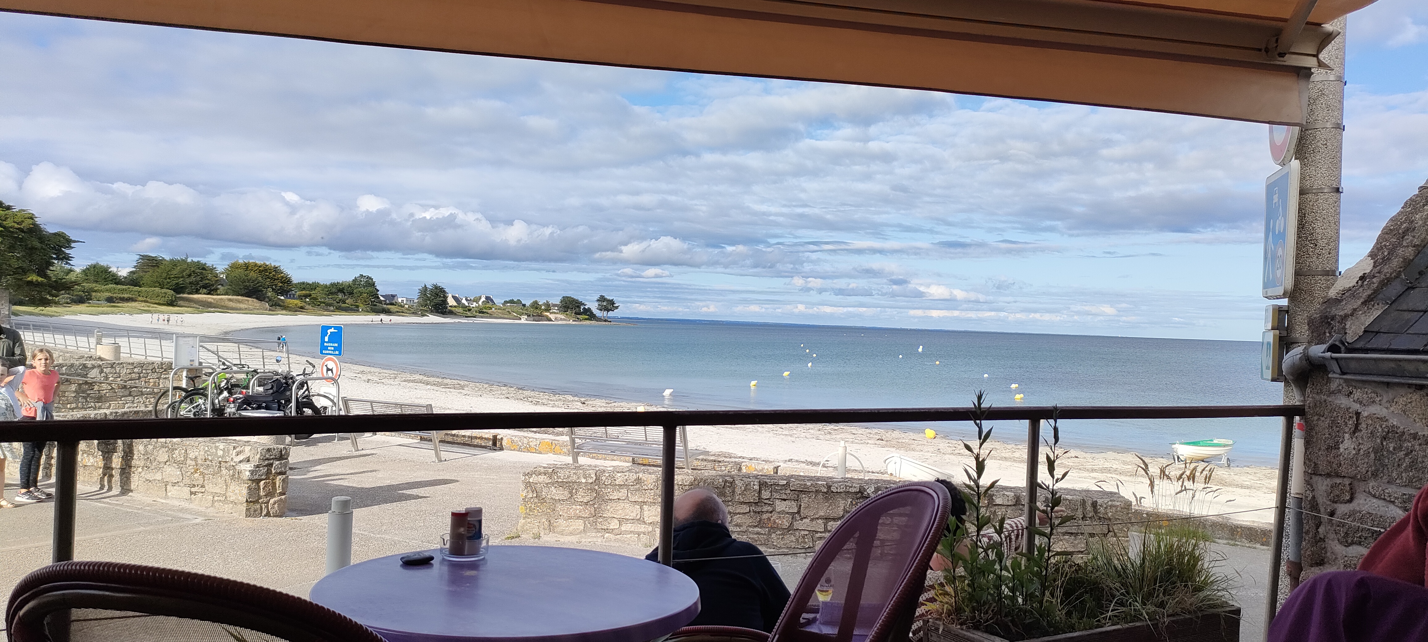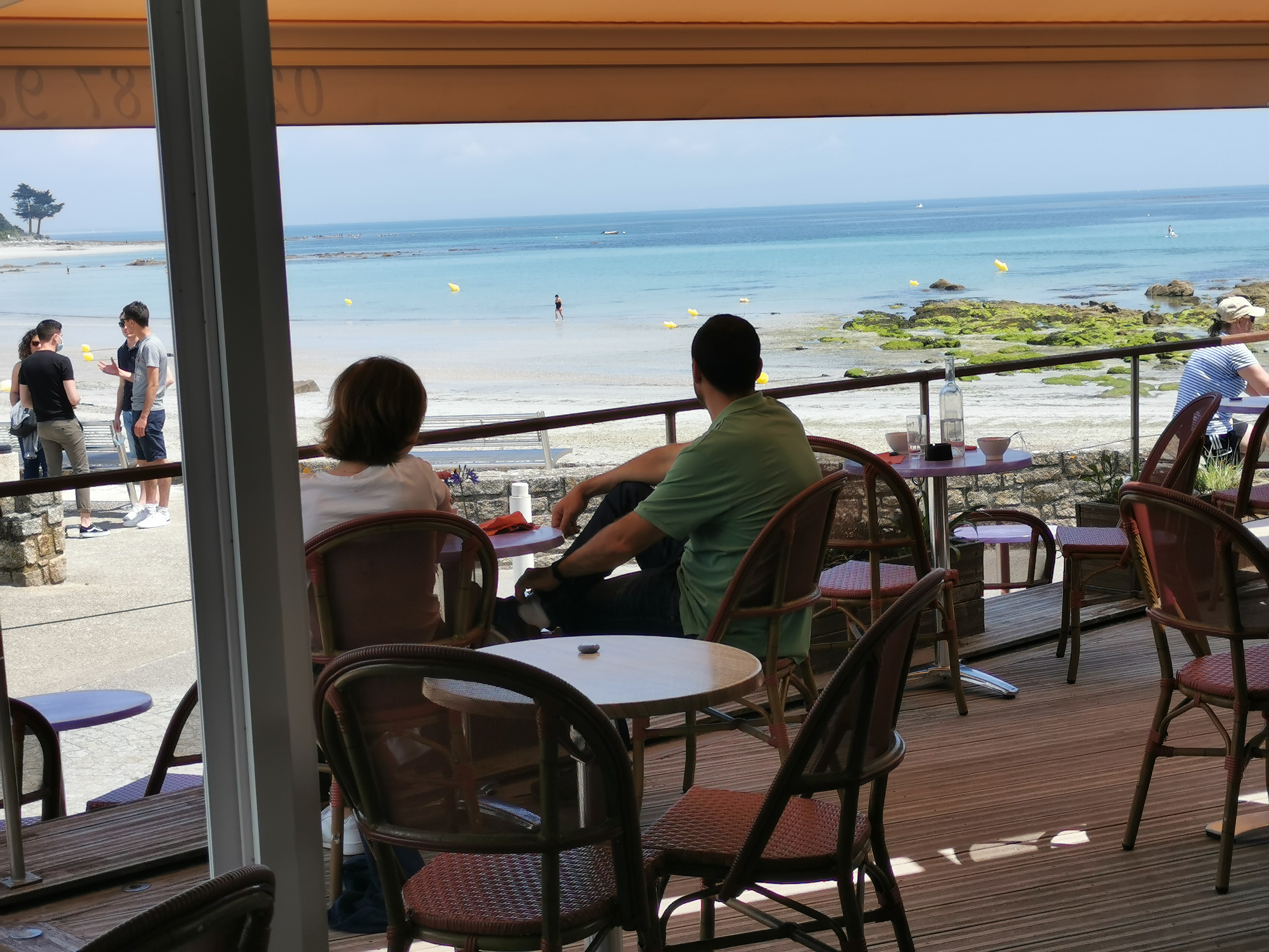 Bonne ambiance. Terrasse avec vue sur la plage. Personnel souriant malgré le masque. Bonnes crêpes salées et sucrées, pour une note qui va bien, pas salée du tout.