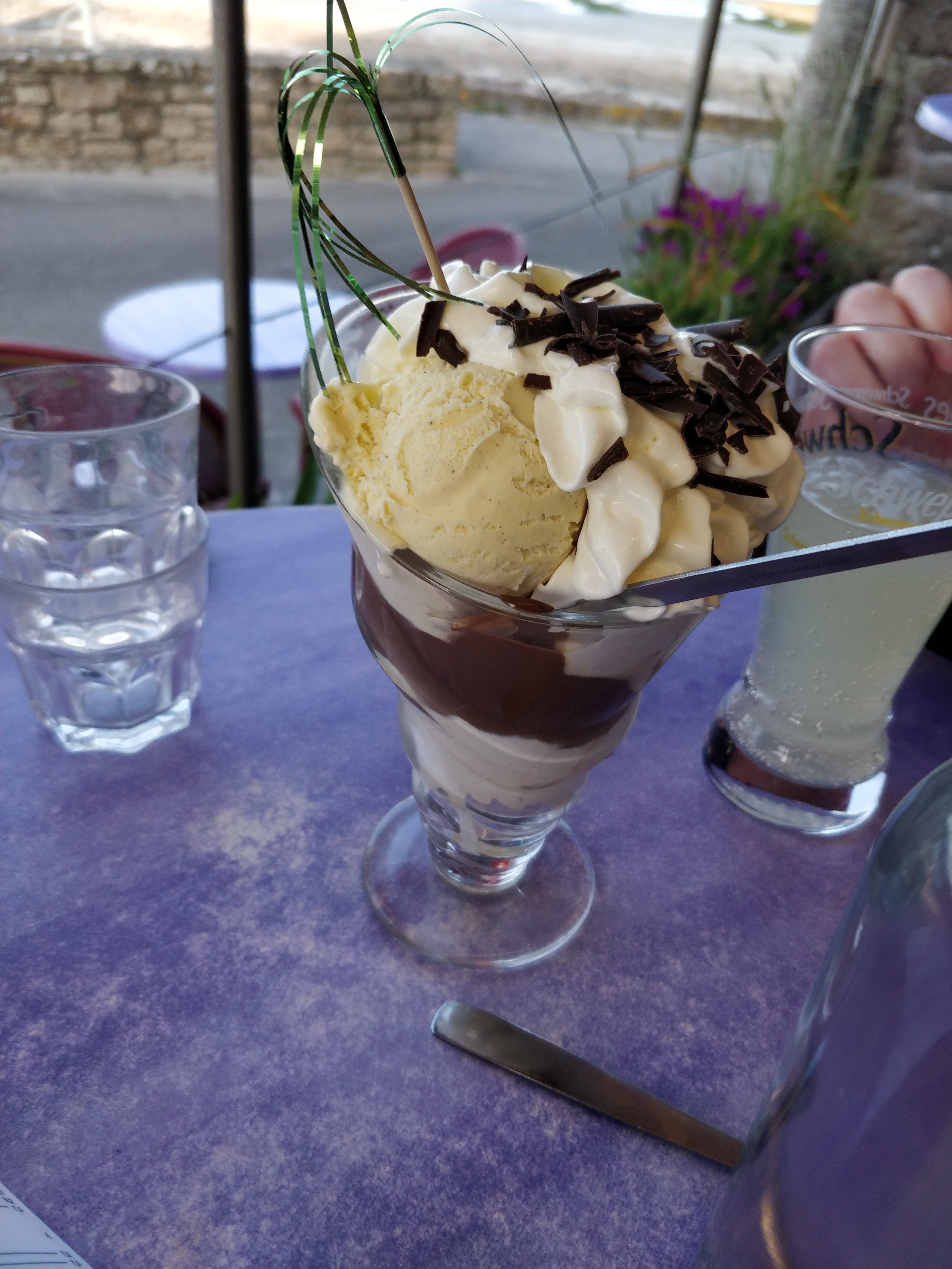 Nous avons fait une halte pour une glace. Les glaces sont de qualité. Celle composée de litchi framboise et rose est vraiment parfumée, un vrai régal. De même pour la glace café et rhum raisin. Servie dans des cônes très grands et hyper croustillants. Suite à votre réponse : il est vrai que 2 autres établissements proposaient des glaces artisanales dans un rayon de dix mètres, surement que mon GPS n' a pas correctement identifié le lieu et comme je n'ai pas gardé le ticket. Je testerais donc vos produits lors de mon prochain passage. A bientôt.