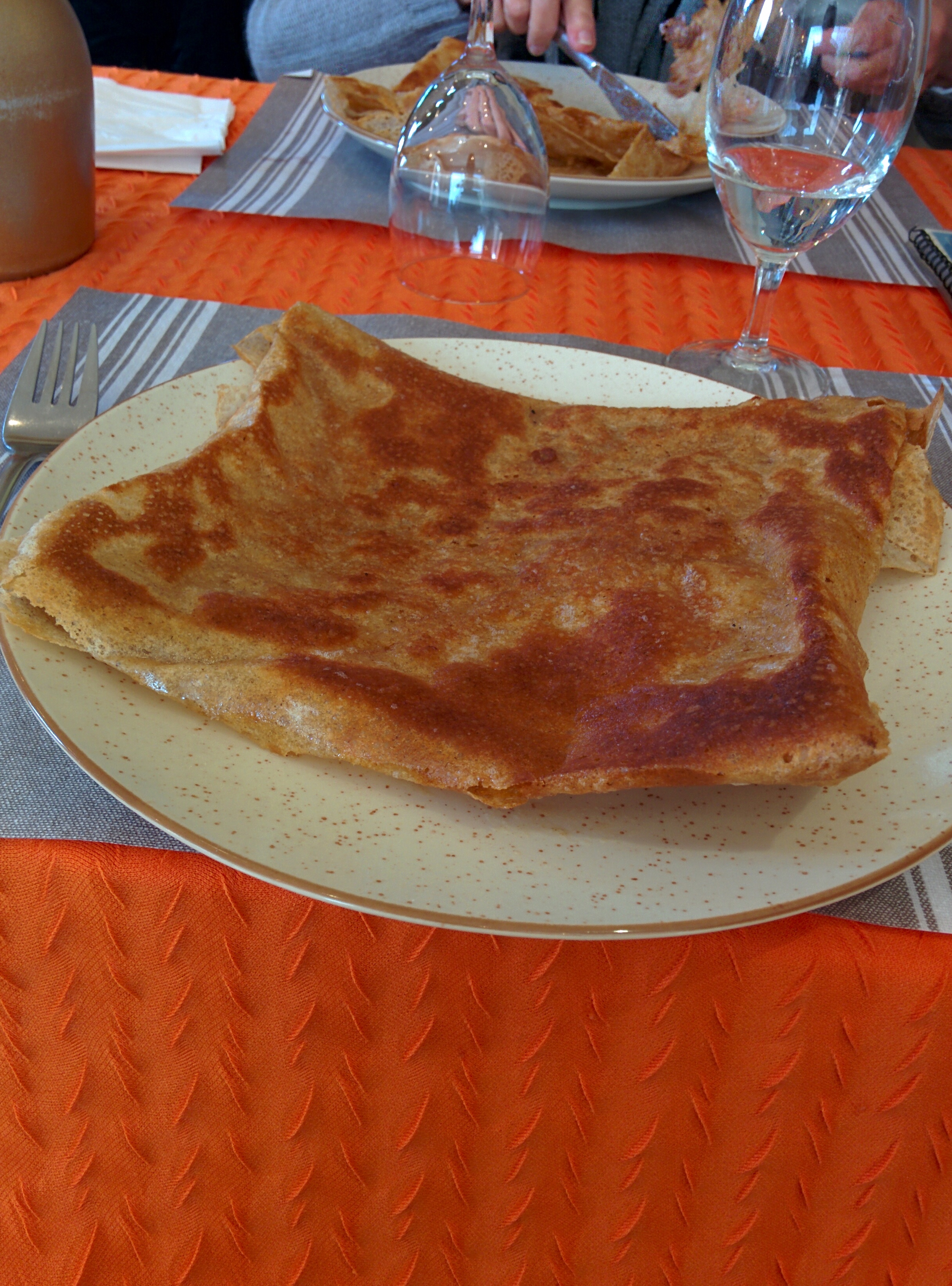 Crêpes bien garnies. La pâte est très bonne. Il ne manque que les murs en granit et les poutres apparentes :-)