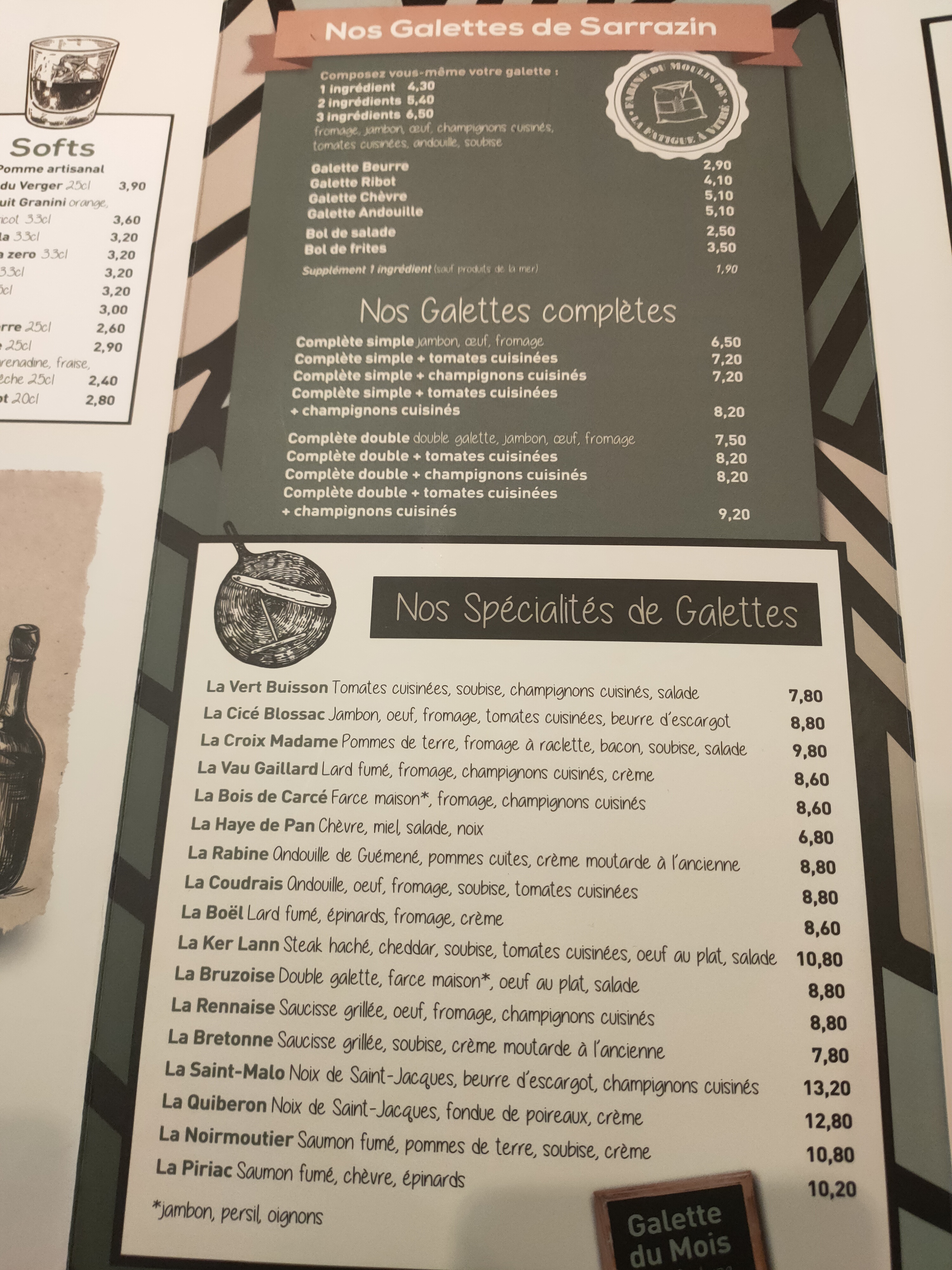 Les galettes et les crêpes sont très bonnes et bien garnies. En revanche carton rouge pour le respect des règles sanitaires : tables trop proches, serveur qui porte le masque sous le nez, cartes qui passent de mains en mains sans aucune désinfection, tables nettoyées avec une simple éponge humide après le départ des clients... Dommage mais pour l'instant je n'y retournerai pas.