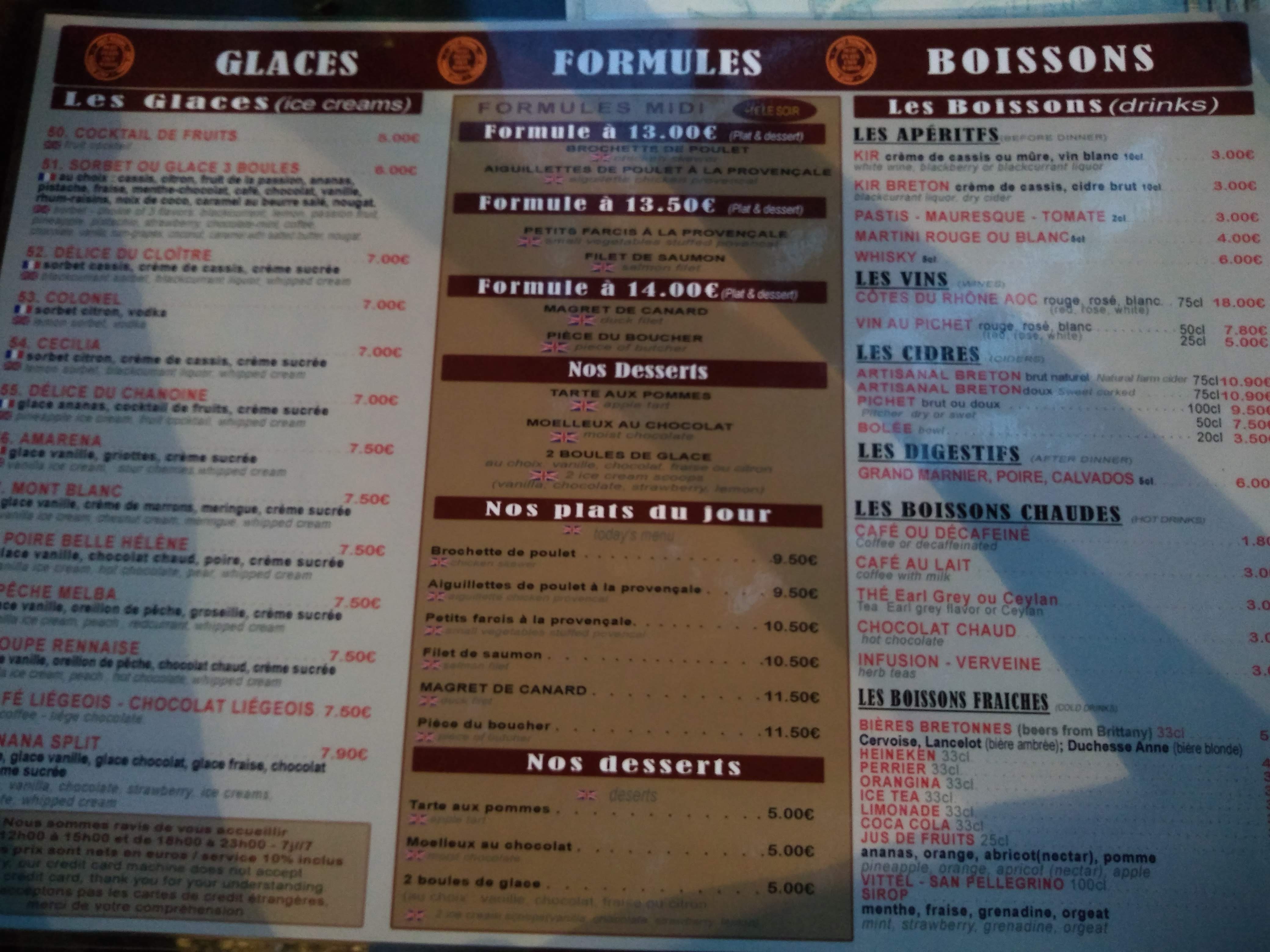 Pathétique, j ai connu l anciens cloître qui étais quasi gastro mais la pour avoir la gastro il y a pas mieux, champignon en boîte, jambon très bas de gamme de même pour le fromage et j en passe, toutes la soirée on entend le micro onde sonner, évidement on est partit manger le dessert au patacrepe, certe une chaîne mais très bon.