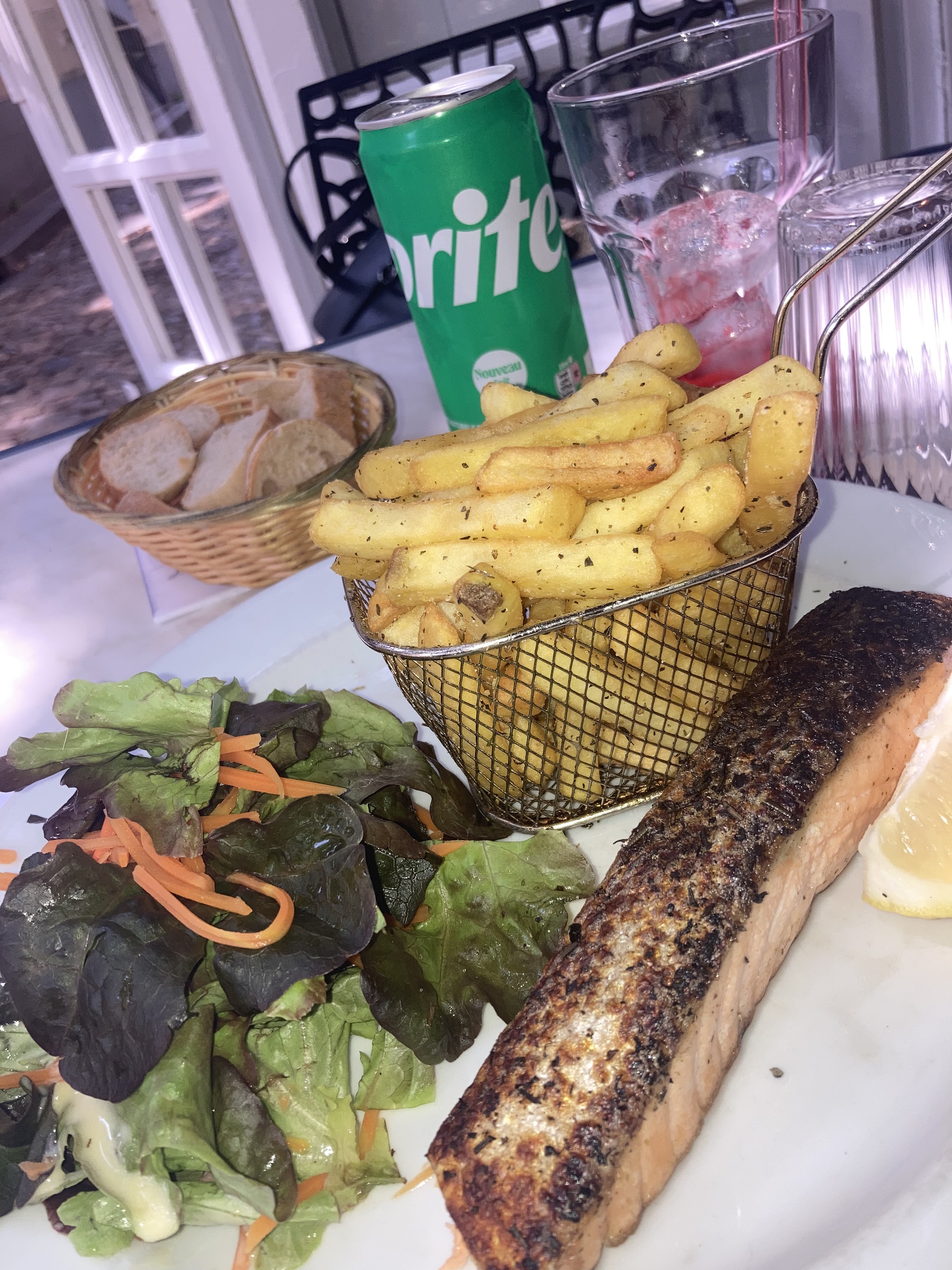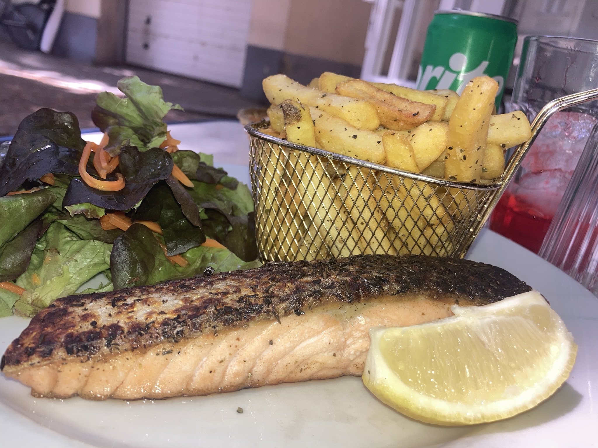 Terrasse attirante avec son ombre. Malgré ça, plat simplifié d’une feuille de salade, de 3 tomates cerises non coupé ainsi que de 3 tranches de melon tout ça pour payer cher pour au final demander de la vinaigrette. Déçu pour la suite des plats égaiements. Petite quantité de saumon avec de l’avocat non assaisonné.