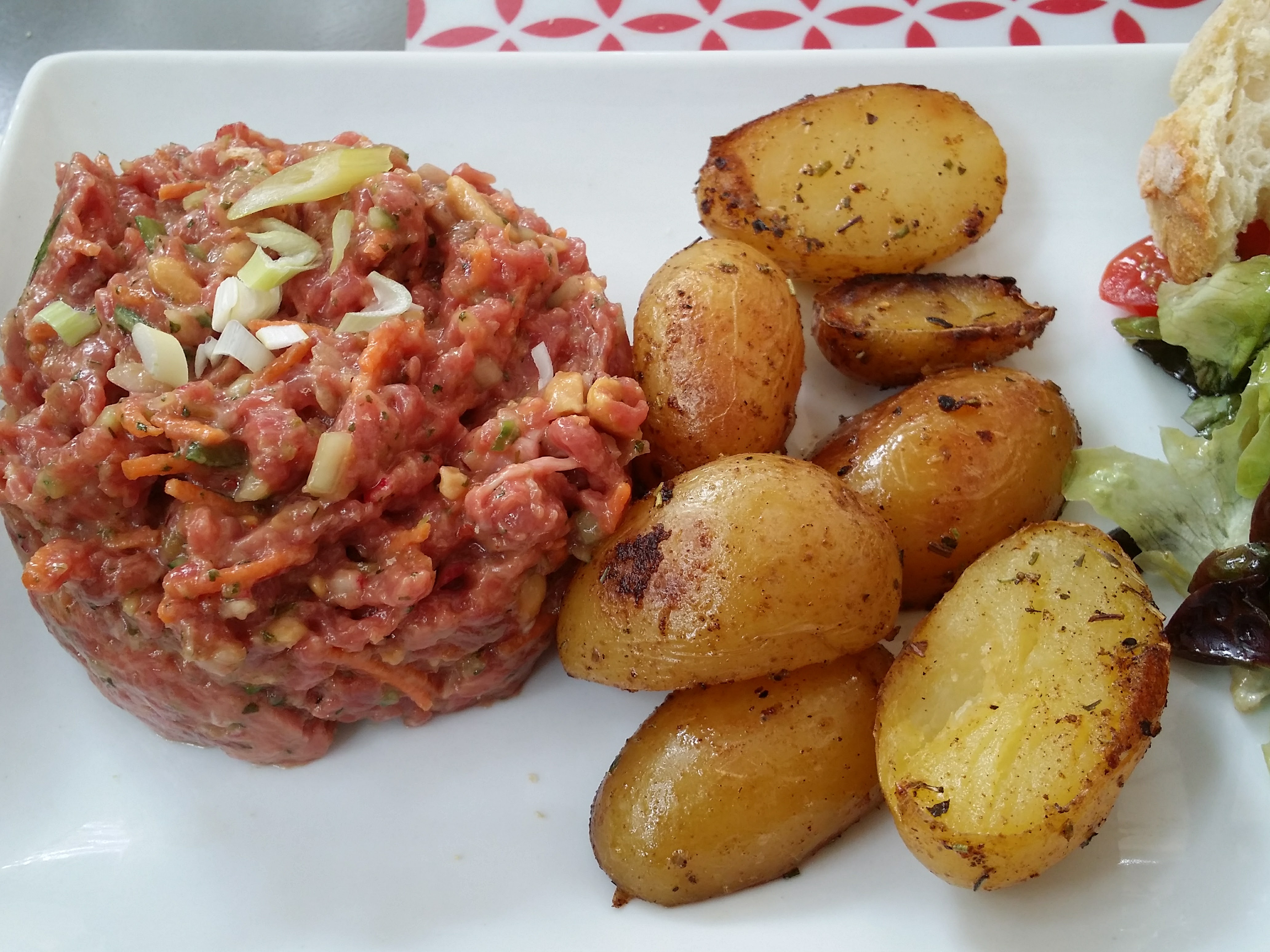 Tartare de saumon qui consiste pour moitié d'avocat et en plus est petit. Frites style mc do a peine cuite. Salade pleine de sable. Dessert tarte au pommes industrielle sans gout idem sauce au chocolat À eviter. Service rapide.